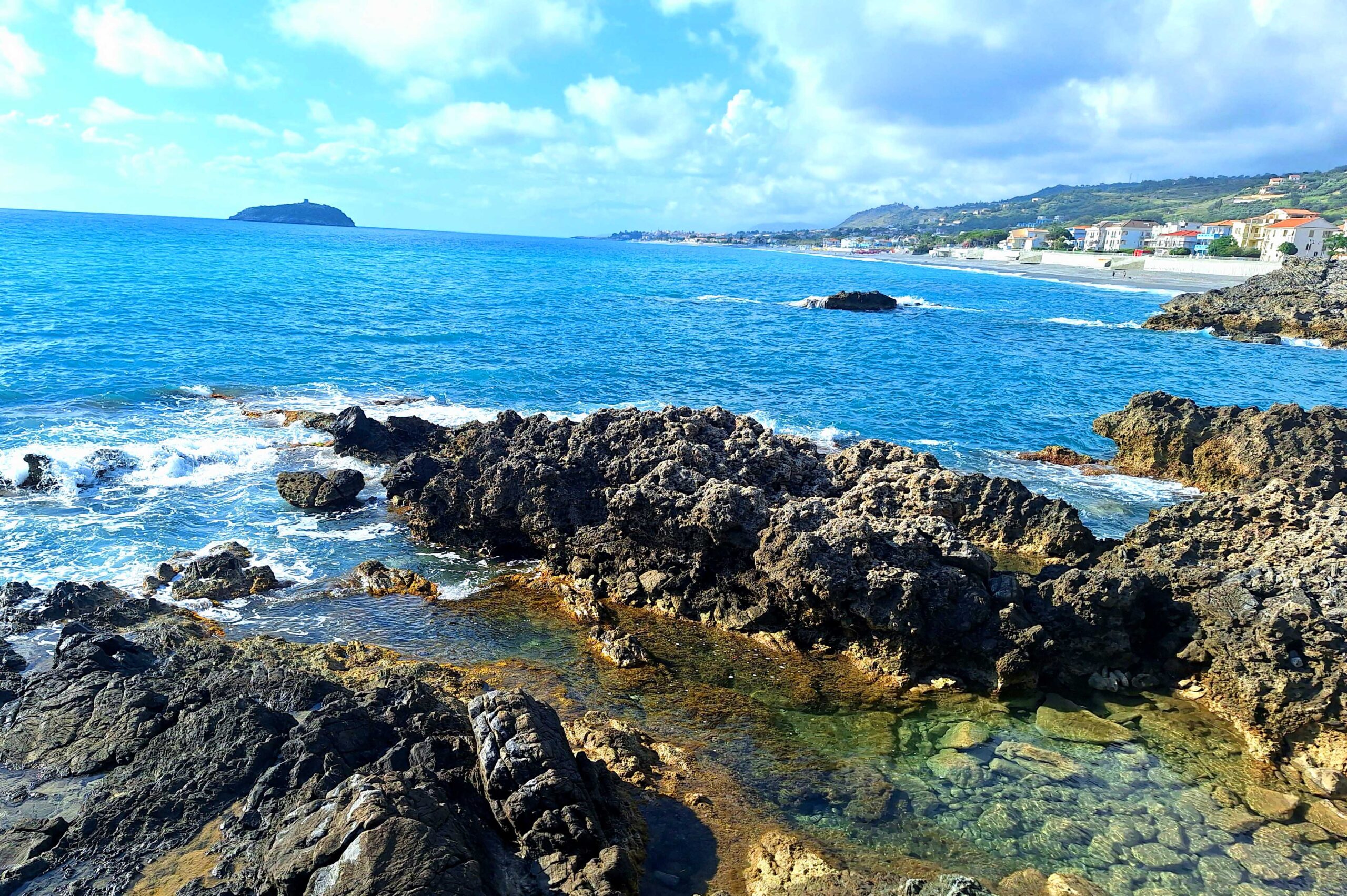 Die SS 18 fĂŒhrt am Meer entlang. Wunderschön!! Manche Dörfer kleben an den BerghĂ€ngen, manche liegen unmittelbar am Strand oder stapeln sich eng an- und ĂŒbereinander. Denn im Hinterland geht es schnell bis auf 1000 Meter Höhe.đïž