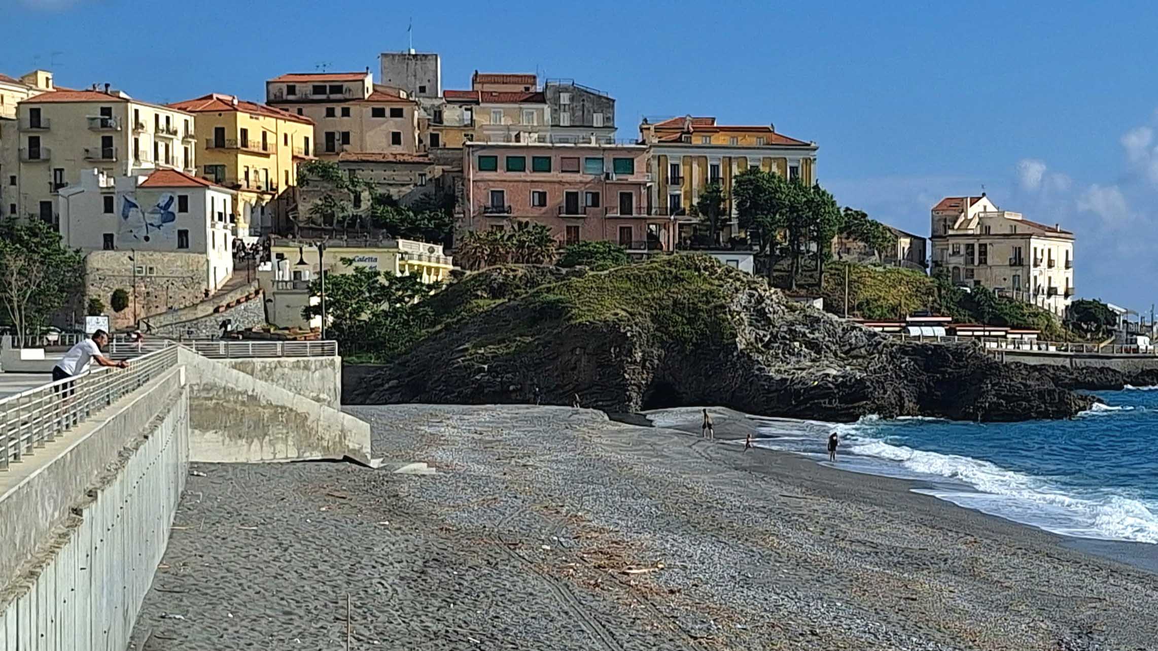 Dann beginnt der schöne und breite Lungomare von Diamante. Ăber eine BrĂŒcke geht es hinauf zur Altstadt. Es ist ruhig, denn in der Vorsaison ist kaum etwas los. Viele GeschĂ€fte haben geschlossen und nur einige Restaurants und Bars haben geöffnet. Ich möchte mir nicht vorstellen, đ wenn es im Hochsommer vor Touris strotzt, und genieĂe deshalb in Ruhe geniale Ausblicke auf Meer und KĂŒste.đ