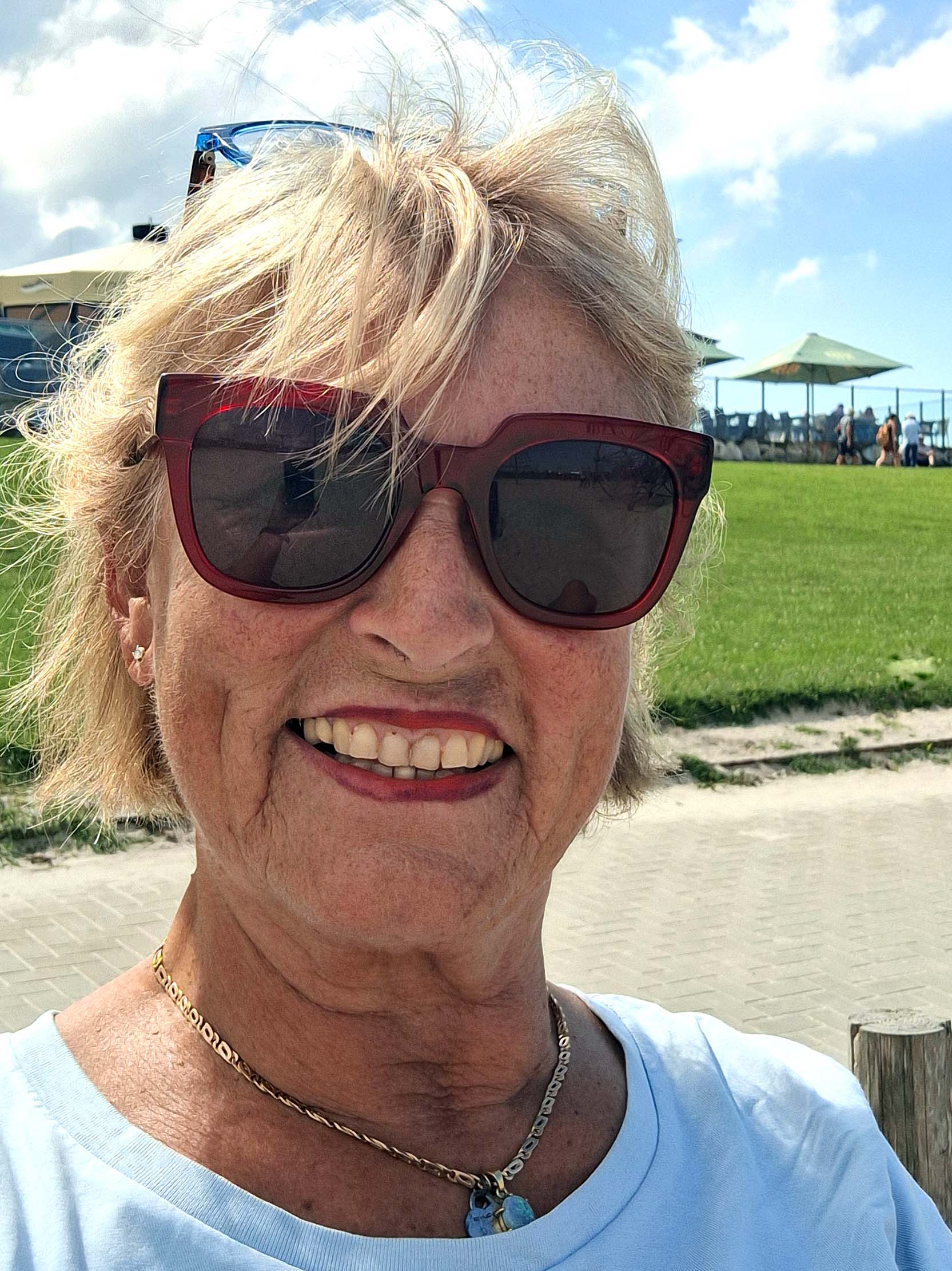 Nach dem Frühstück starten wir zum Strand ⛱️ von Carolinensiel, den wir in einer halben Stunde zu Fuß erreichen. Es geht immer an der Kurpromenade entlang bis zum Yachthafen. Der Strand liegt im Ortsteil Harlesiel.