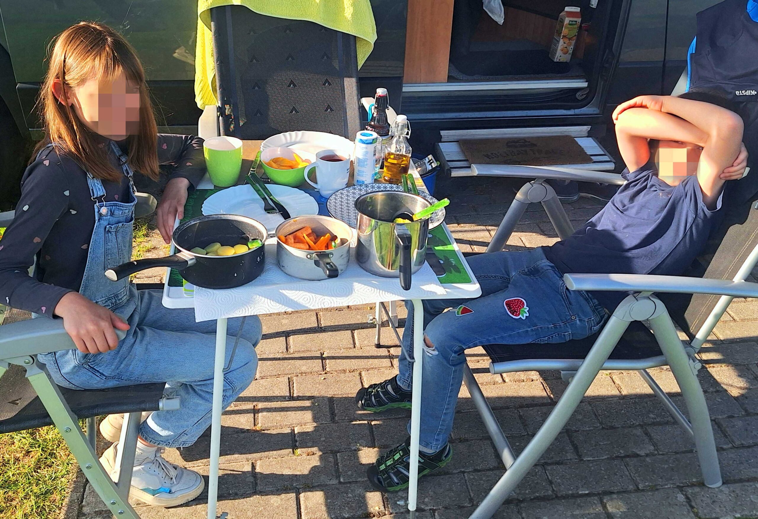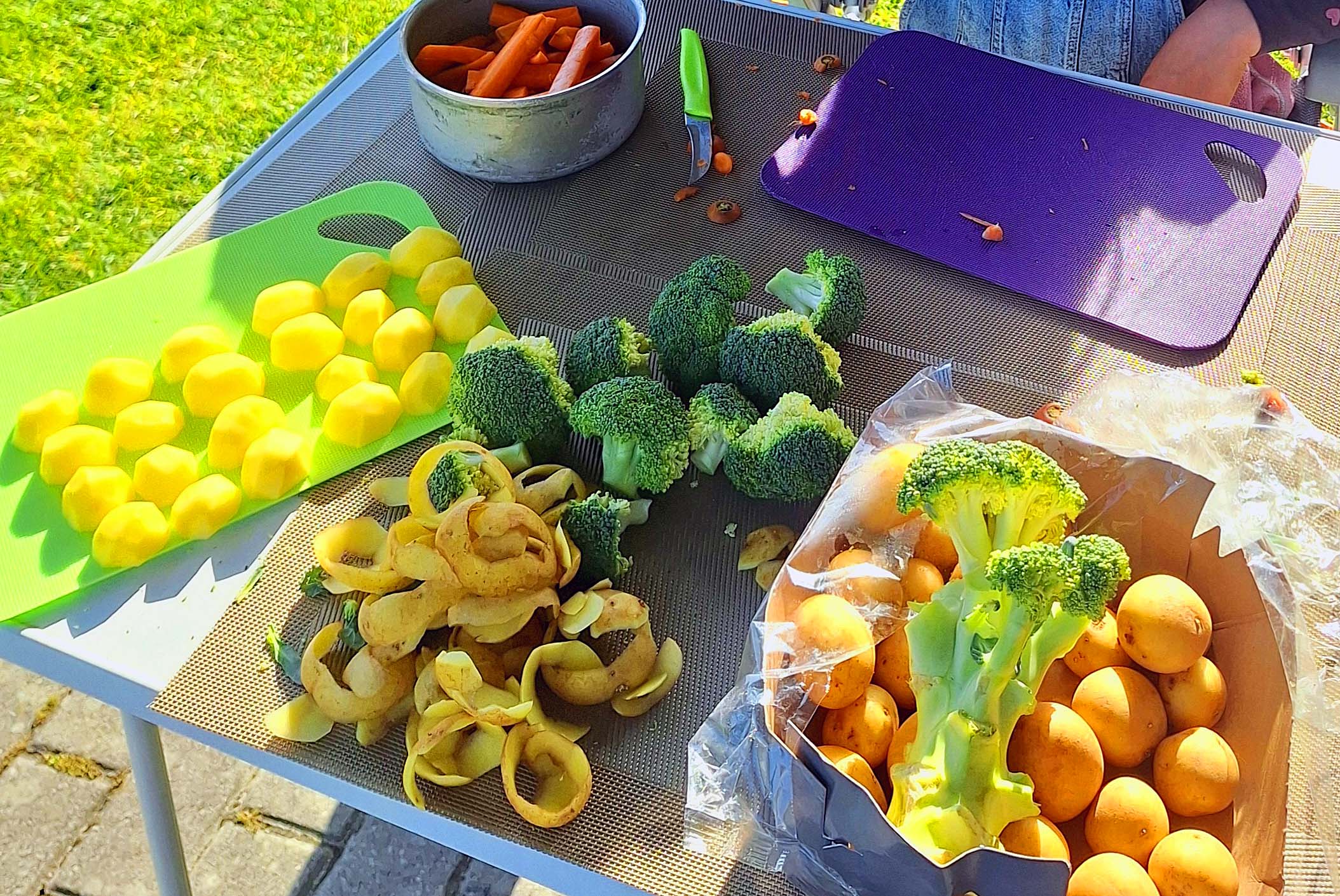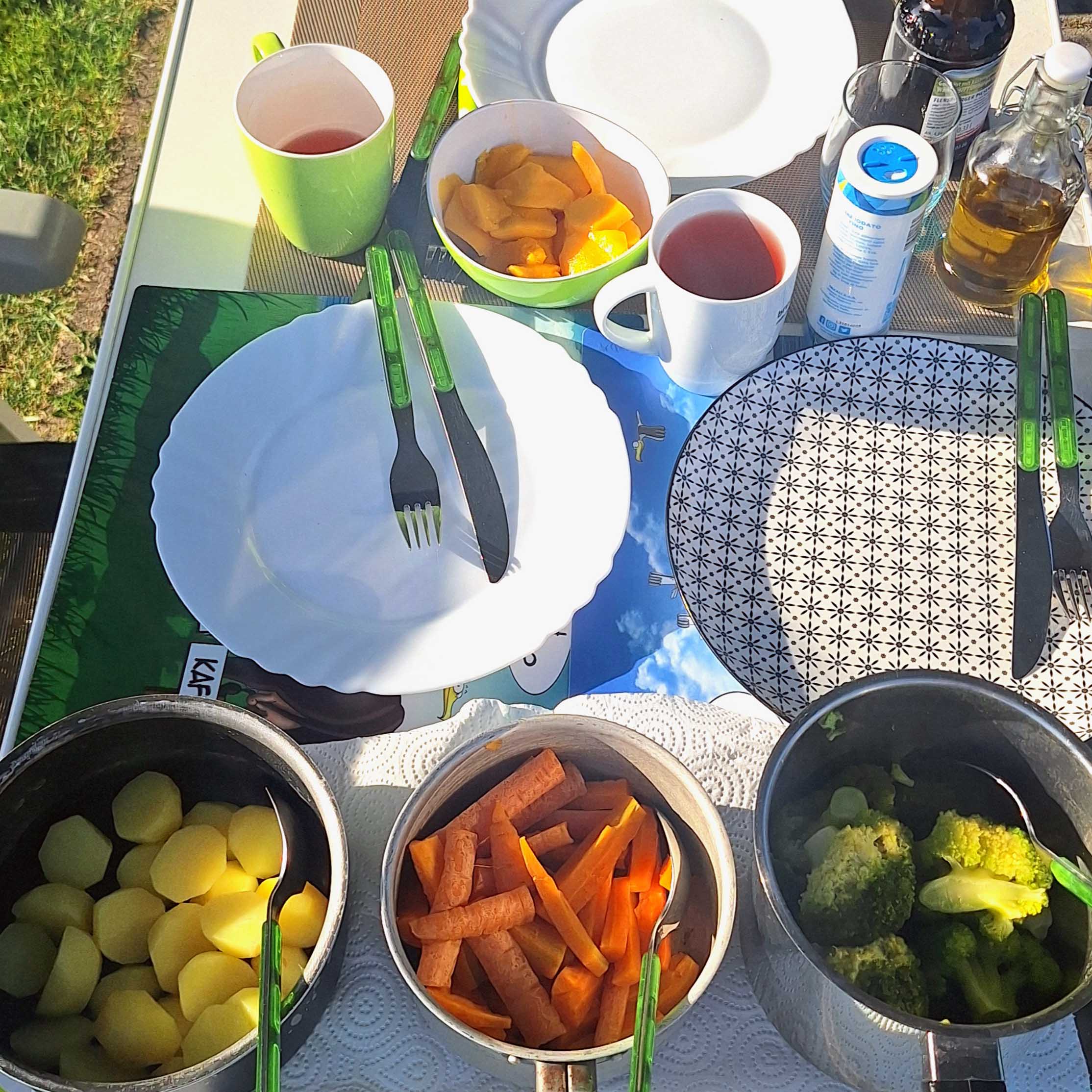 Dann kochen 👩‍🍳wir. Es geht ans Gemüse- und Kartoffelschnippeln, 🔪 was die Beiden sehr gut machen. Sie haben Spaß daran, auch wenn‘s hin und wieder Meinungsverschiedenheiten gibt. Meine Enkelin kocht und der Kleine deckt 🍽️ den Tisch. Alles wird im Bild 📷 festgehalten. Zum Nachtisch gibt es eine Mango.🥭