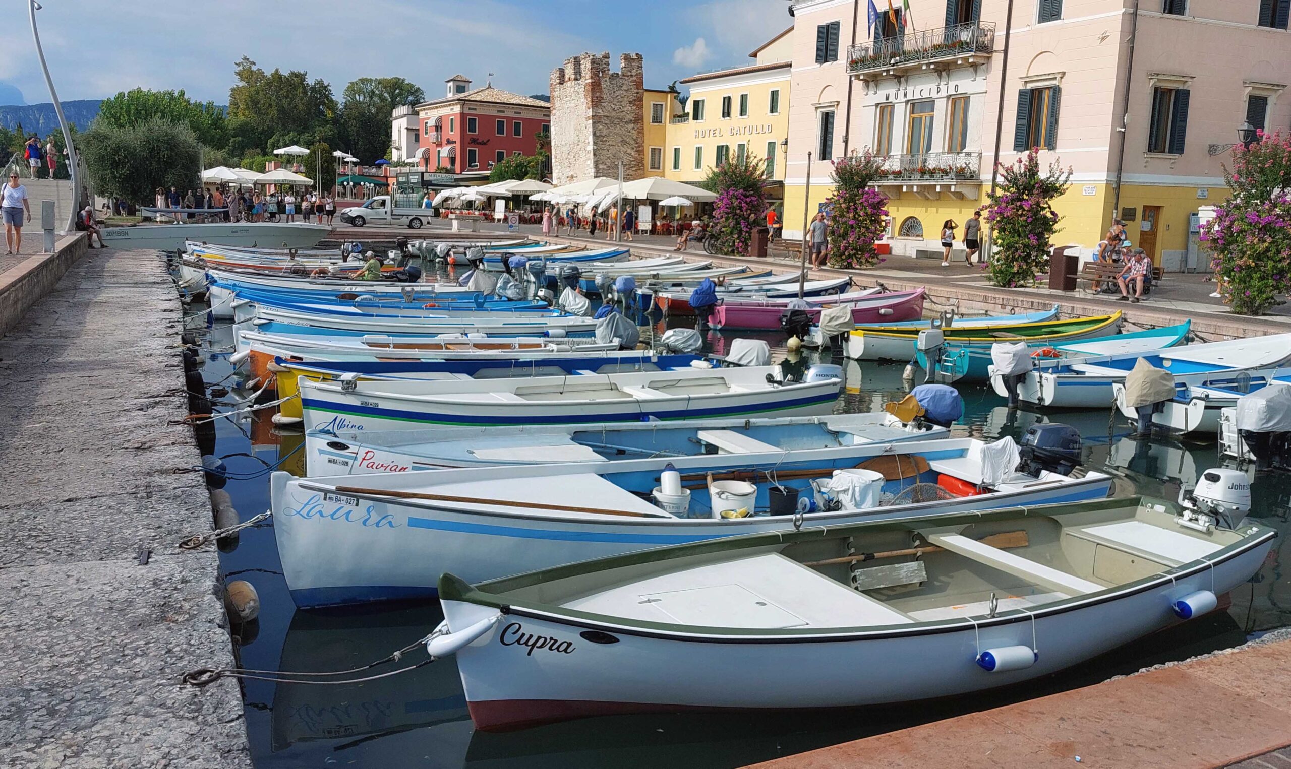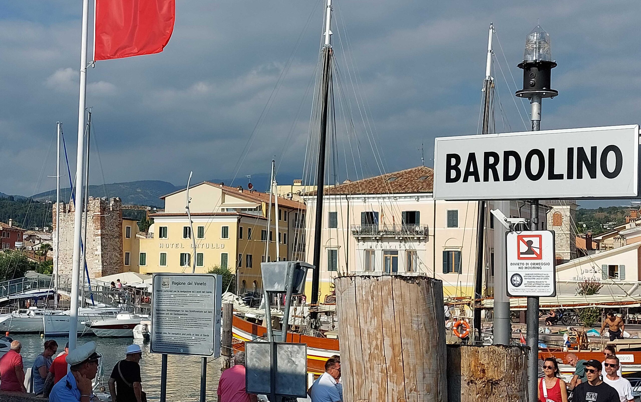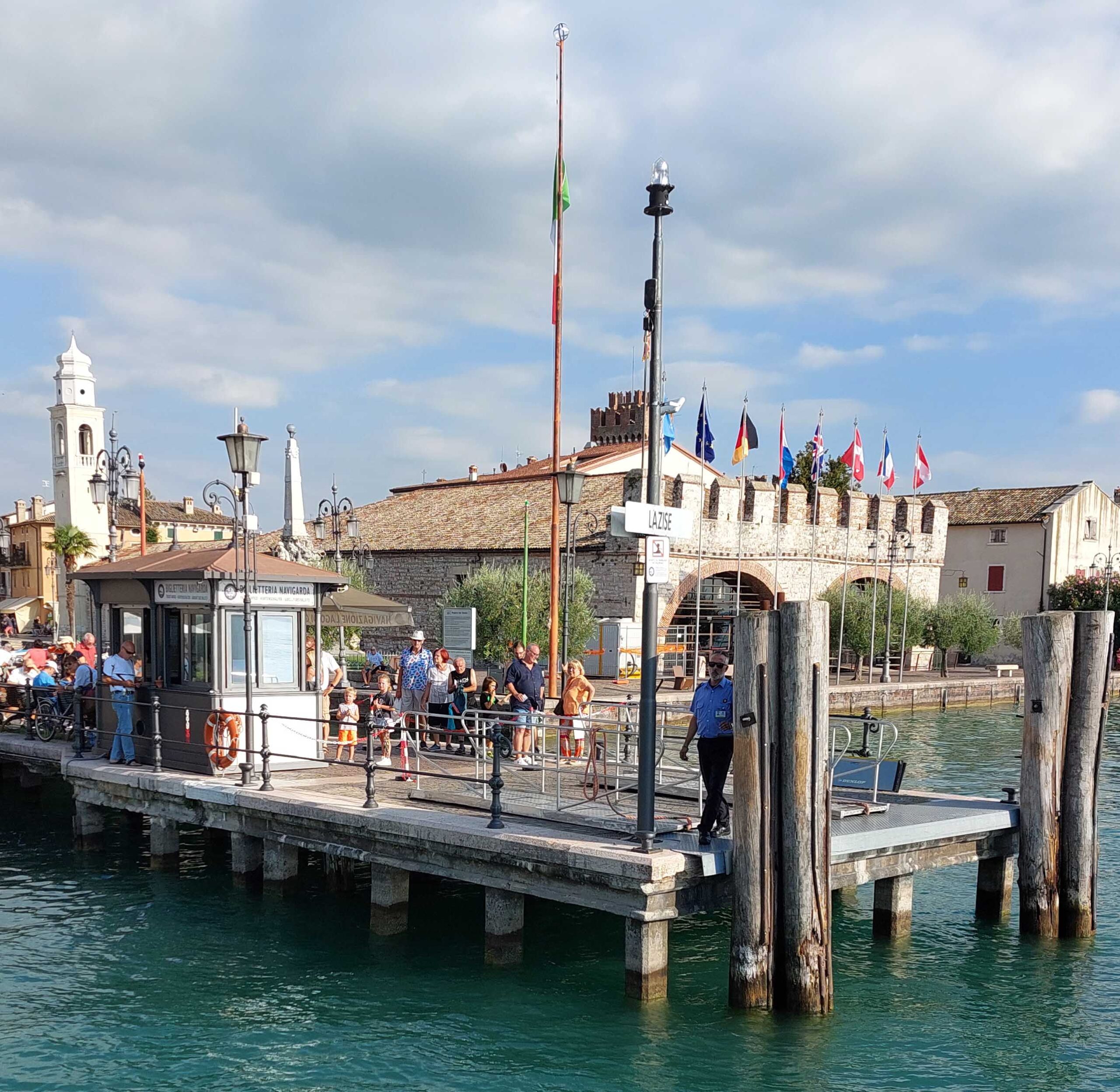 Ich bleibe lieber bei meinem „Aperol“, 🍹von dem ich in einer Strandbar 🏖️ jeden Schluck langsam im Liegestuhl mit Blick auf den See genieße. Weil es sooo schön ist, verbummle ich die Zeit. Radle deshalb mit erhöhtem Tempo nach Bardolino, einem Weinort an der Olivenriviera. Zwei Millionen Touris p.a. befördern das Örtchen auf Platz 24 unter den Reisezielen Italiens. Hier steht mir leider nur ein halbes Stündchen für einen Rundgang zur Verfügung, denn mein Schiff nach Peschiera legt pünktlich um 17 Uhr an.