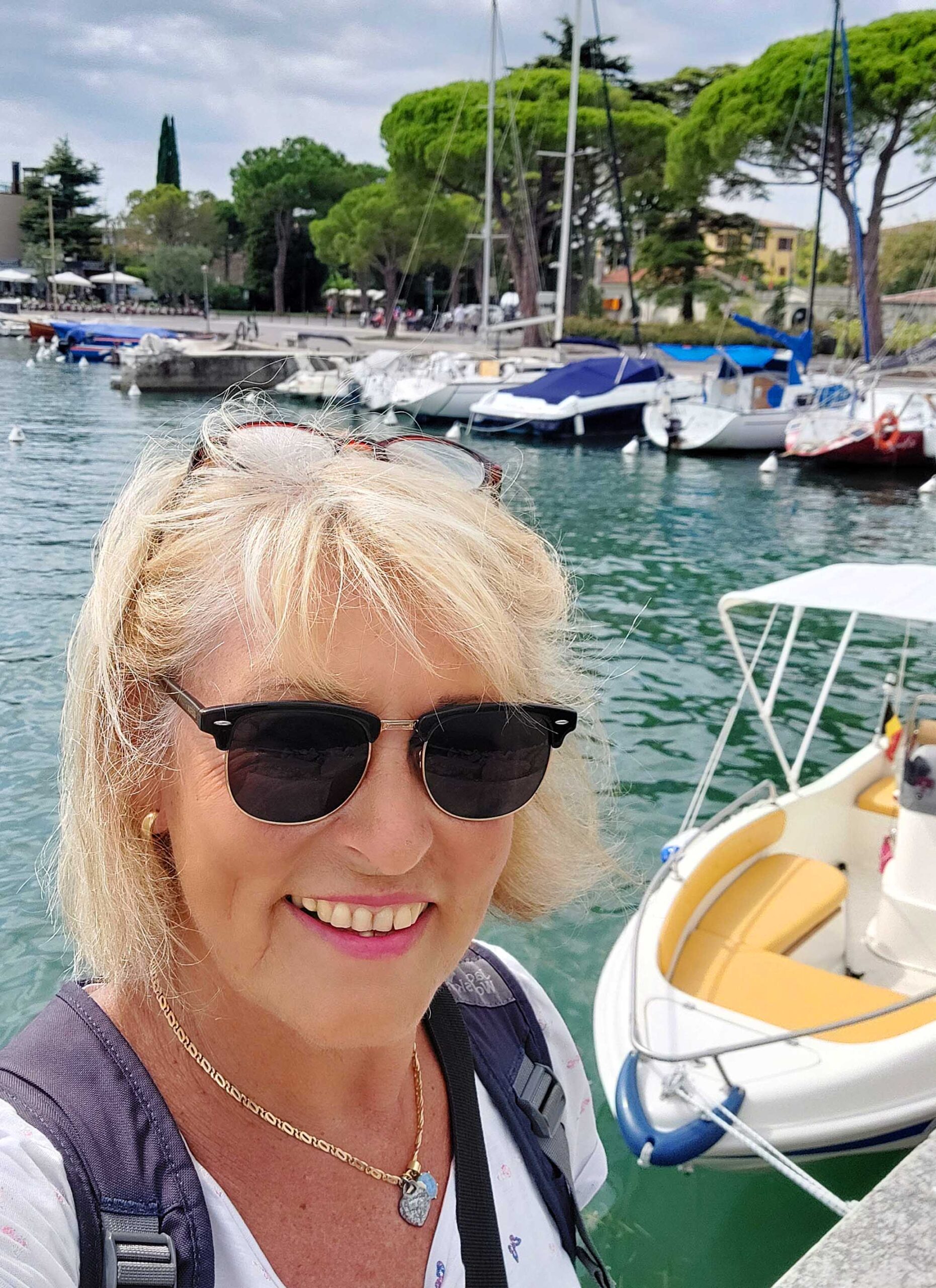 Das Wetter wird besser und ich beschließe, mit dem Rad 🚴 und dem Schiff 🚢 einen Ausflug nach Lazise und Bardolino zu machen. Es ist wunderbar warm und angenehm auf dem Bike. Der Velo-Weg hat sich in den letzten Jahren verändert. Es sind zahlreiche Badestrände dazugekommen und deshalb ist er auf die Straße verlegt worden. Ich setze meinen Kopf durch und bugsiere mein Rad verbotenerweise durch den tiefen Sand. Puh, das ist anstrengend 😓und ich bereue fast meinen Entschluss. Aber – die Mühe hat sich gelohnt. Ich fahre kurze Zeit später durch einen strahlend grünen Schilfgürtel mit wunderschönem Blick auf den See.