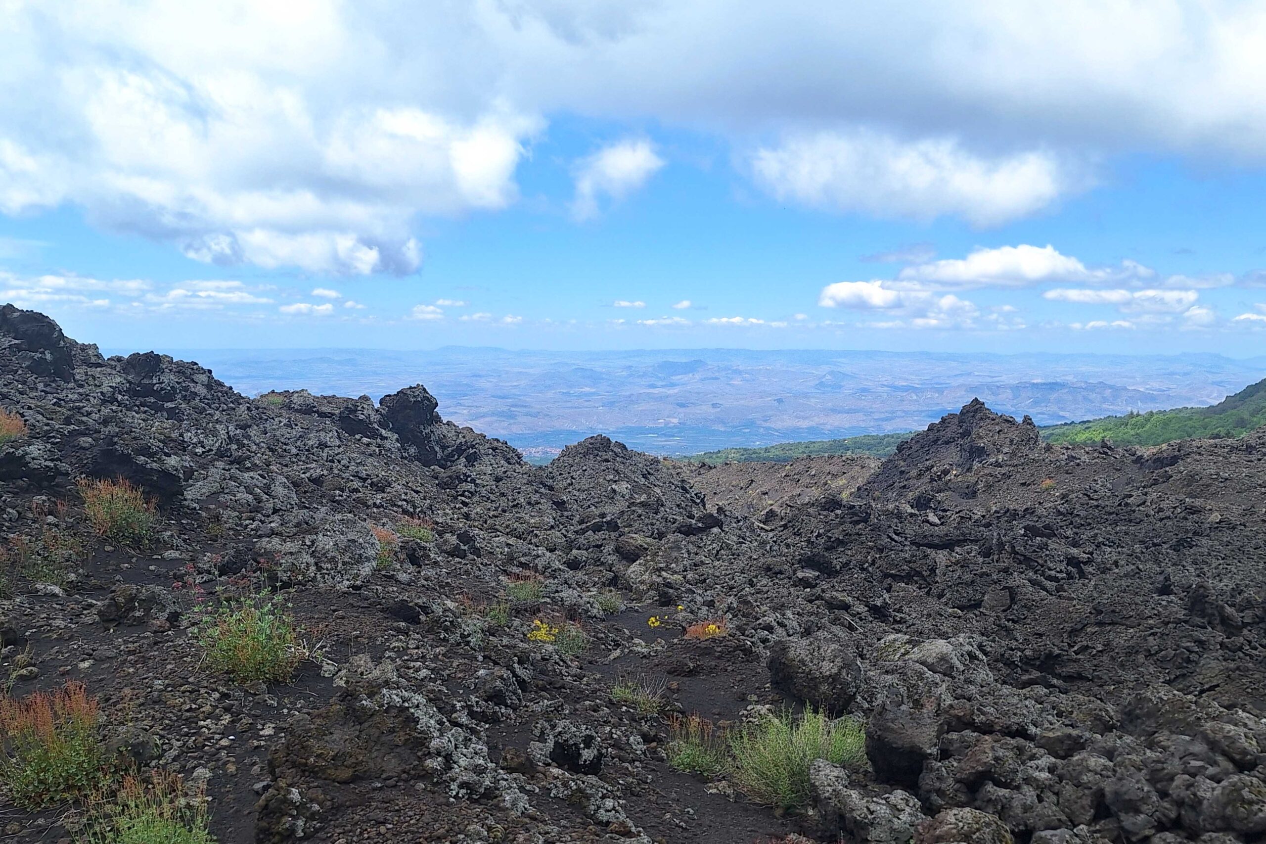 Um mit der Seilbahn auf 3.323 m zu fahren, ist das Wetter zu schlecht .Anstelle dessen laufe ich zu den „Monti Silvestri“ südlich der Funivia dell’Etna. Die Schlackenkegel entstanden bei einem Vulkanausbruch 🌋 vor 133 Jahren. Ich stöbere zwischen den beeindruckenden Kegeln herum und begeistere mich für diese ungewöhnliche Natur.