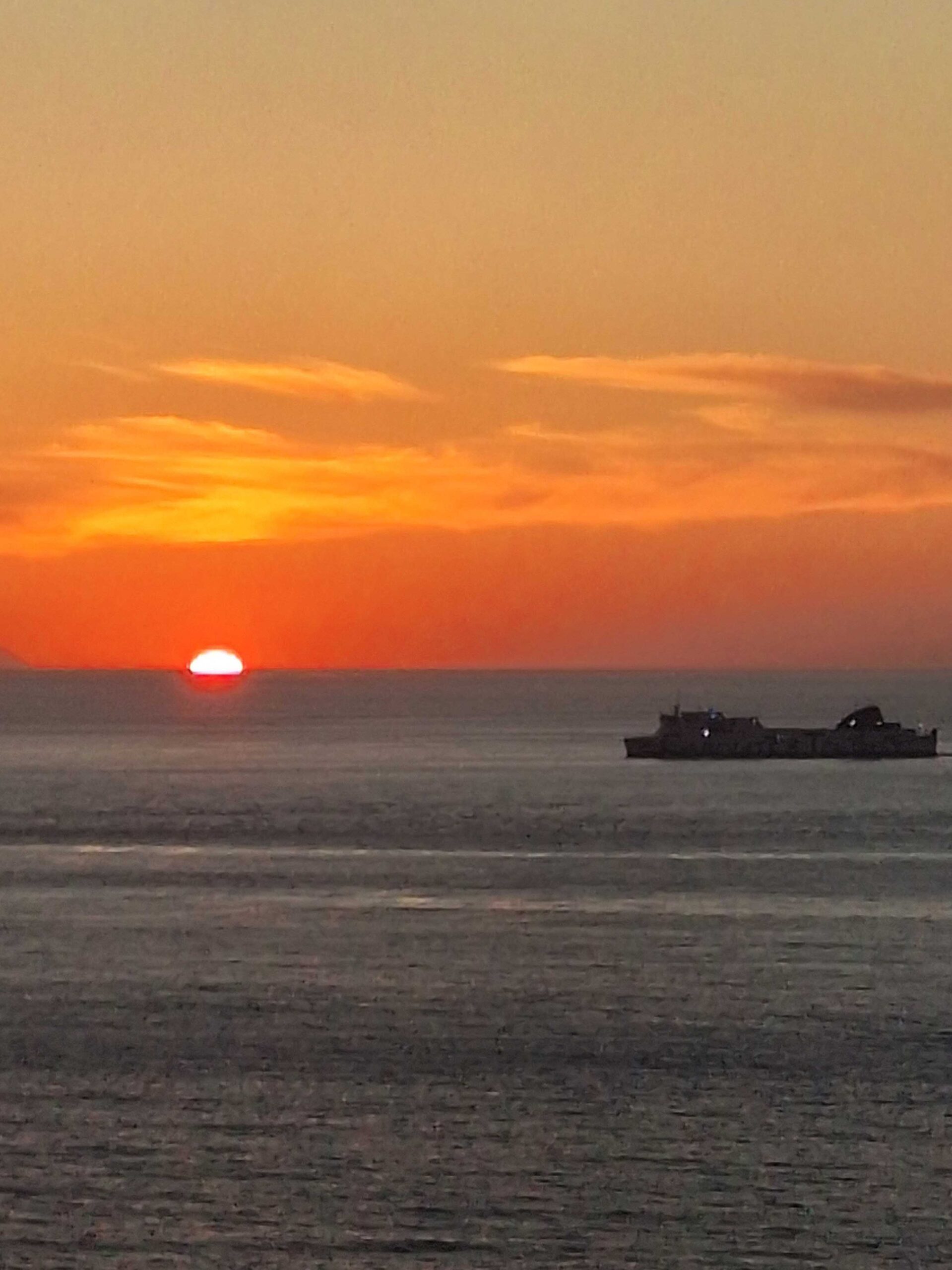 Wir quatschen zusammen und ich richte Fiete nach der Reparatur wieder ein. Ein tolles Gefühl! Das abendliche Highlight ist ein grandioser Sonnenuntergang. 🌅 Ob ich heute Nacht die melodiösen Stimmen der Sirenen höre, die laut Homer die Seeleute hier verzauberten?? 🤔 Es bleibt spannend in diesem Urlaub.