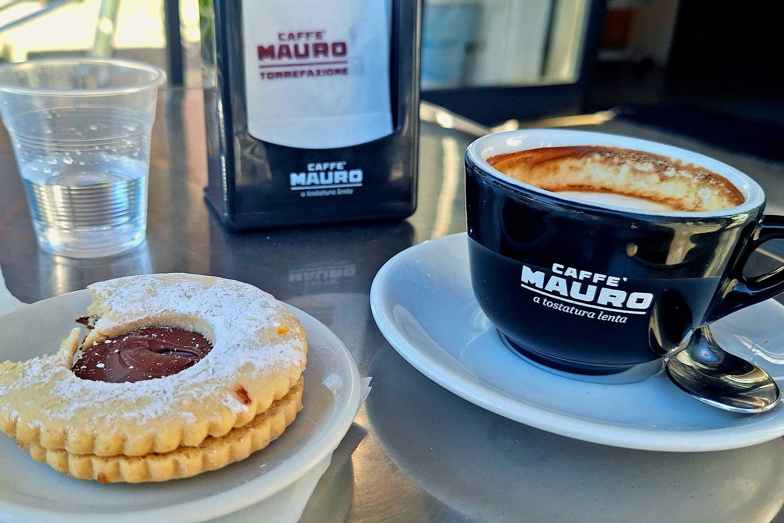 Fiete steht sicher im Schatten und ich genieße derweil einen Café lungo ☕und ein Dolci. Der italienische Besitzer des Cafés spricht sehr gut Deutsch, 👍 er arbeitete zehn Jahre in Wiesbaden. Weil er Sonne und Meer vermisst hat, ist er zurückgekehrt.