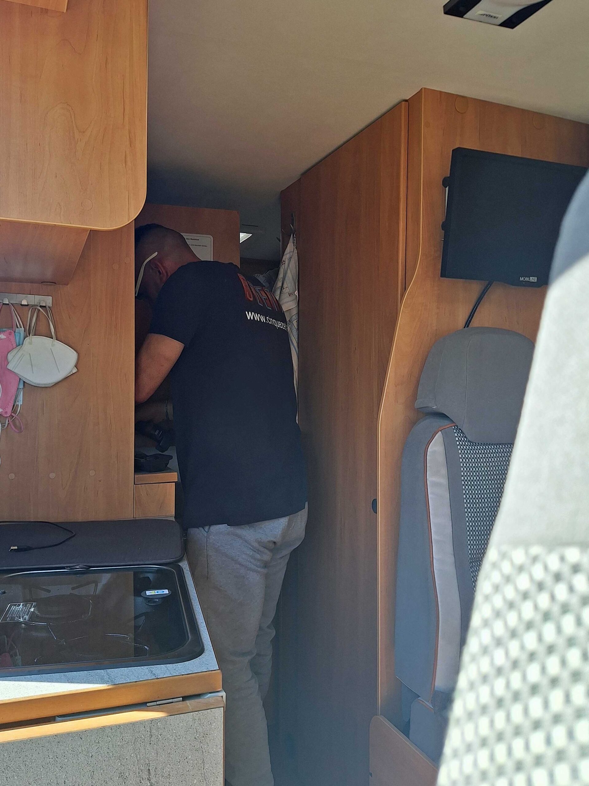 Der Mann weiß eine Womo-Werkstatt in Reggio Calabria. Wie cool ist das denn!! 💃 Da fahre ich morgen nach der Fährfahrt aufs italienische Festland direkt vorbei.