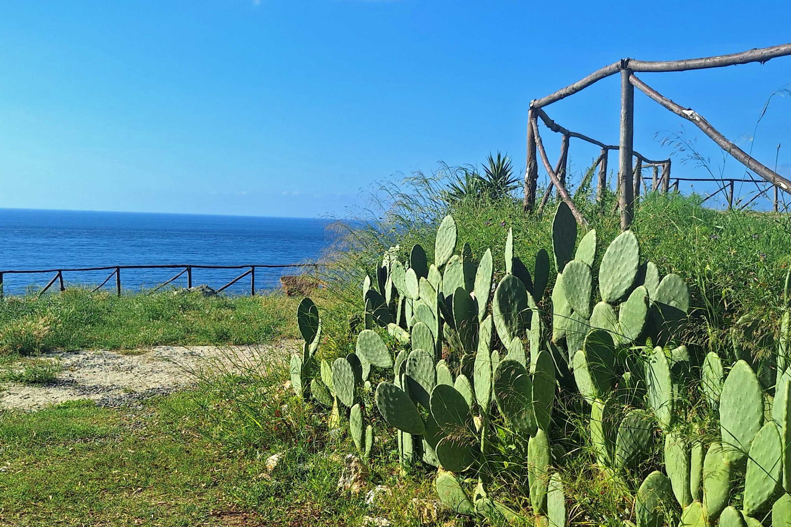 Jetzt fahre ich nach Scilla, der Perle der Costa Viola. Ich übernachte auf dem sehr einfachen Stellplatz Area Sosta Camper Paci. Die Lage ist fantastisch – mit Blick auf Scilla und die imposante Klippe. Die Kosten von 20 € sind voll okay, trotz veralteter Duschen und einer unhygienischen Toilette. Abends sind wir sieben Camper und ich treffe das Paar von der Fähre wieder! Was ein Zufall! 😊