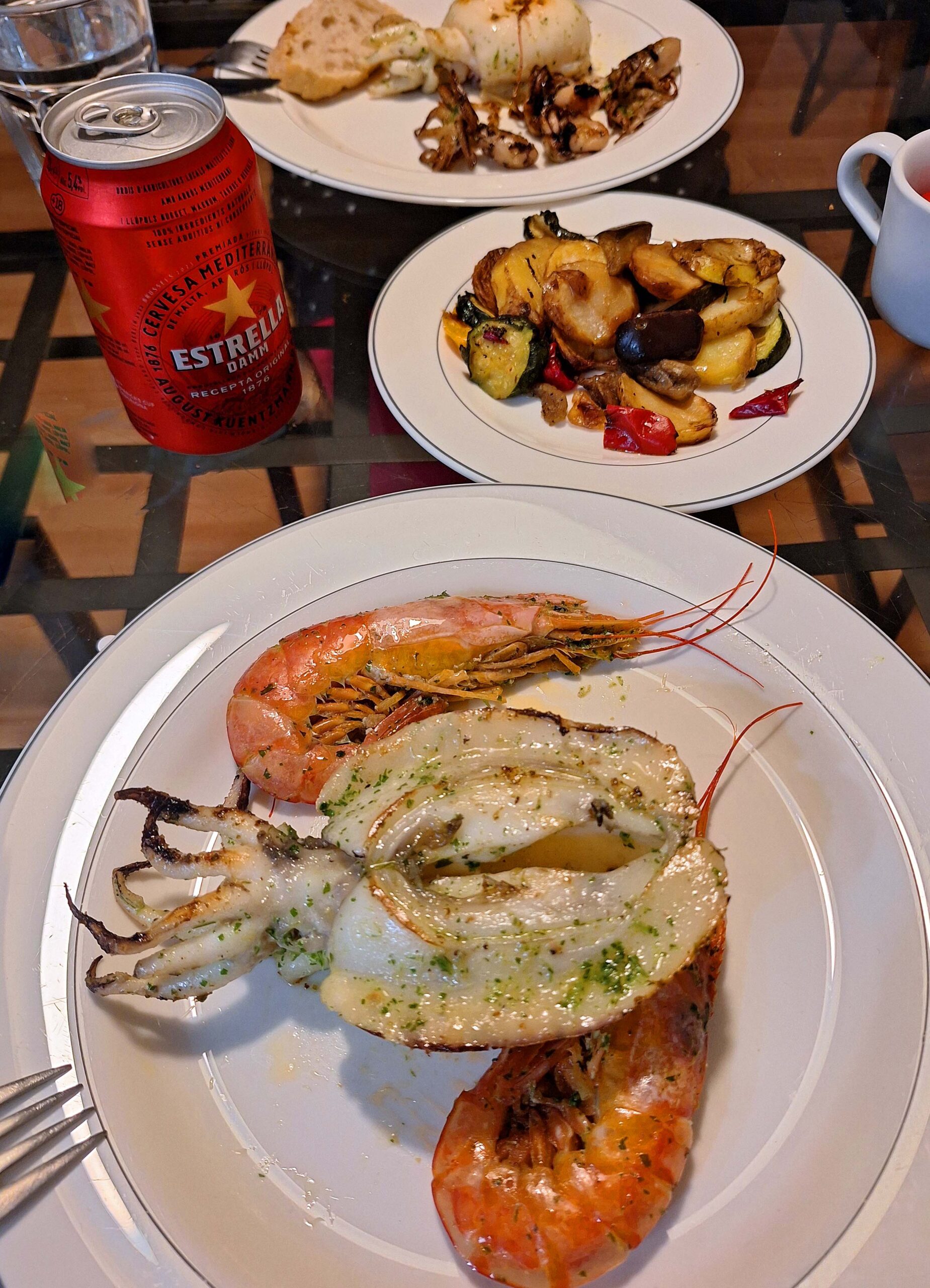 Bei der Bestellung erfahren wir, dass wir „3 Teller statt nur 2“ bestellen müssen, da wir an einem Dreiertisch sitzen. Das fand ich jetzt nicht gerade fair, aber unser Riesenhunger akzeptiert den kleinen Schwindel. Und es ist soooo lecker, Muscheln, 🐚Tintenfisch 🐙und Lachsmousse mit Salat und Avocado 🥑. Dazu Bierchen und Wasser. Das alles für 44 €. Vorzüglicher hätten wir nicht essen können! Die Bewertungen für das „Casa Blanca“ reichen von sehr gut bis hervorragend und ausgezeichnet. 👍👍👍Wieder mal den richtigen Riecher gehabt.