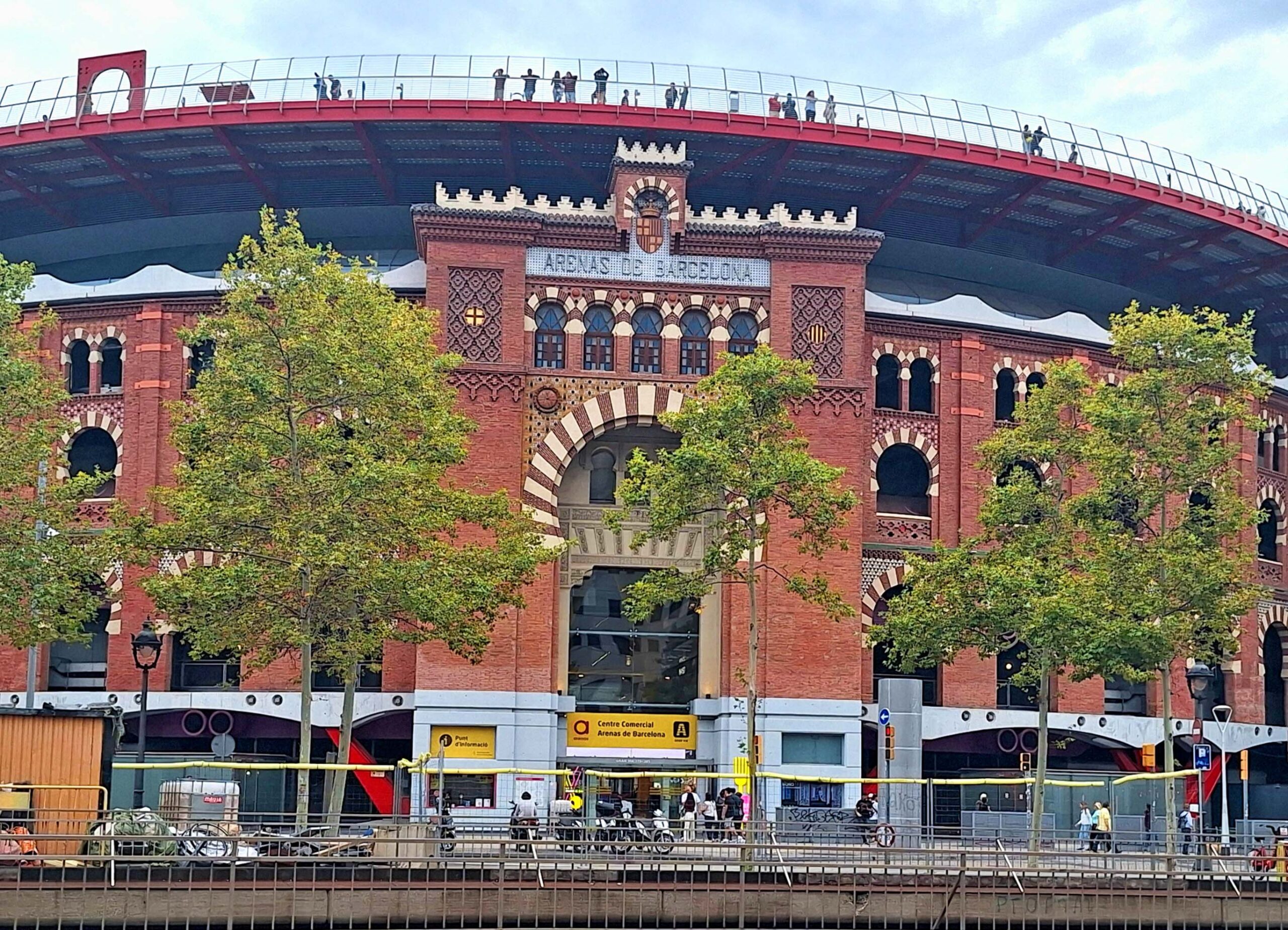 Auf dem Weg zur Arena entdeckt Birgit neben den venezianischen Campaniles – Tor zum Montjuic auf dieser Seite – einen roten Barcelona Touri-Bus 🚌 und ist total aus dem Häuschen. Ich halte die völlig losgelöste Birgit auf einem Foto 📸 fest und wenig später fahren wir mit dem Aufzug auf das Rooftop in die Cocktailbar „11Nudos“ der Arena-Shoppingmall. Hier chillen wir in riesigen Plüschsesseln und lassen uns Pina Colada und Mistral Basil Smash 🍸🍹munden. Auf dem Heimweg will Birgit unbedingt am Metrodrehkreuz Placa di Catalunya den Gepäck-Aufbewahrungsshop 🧳🧳🧳finden.