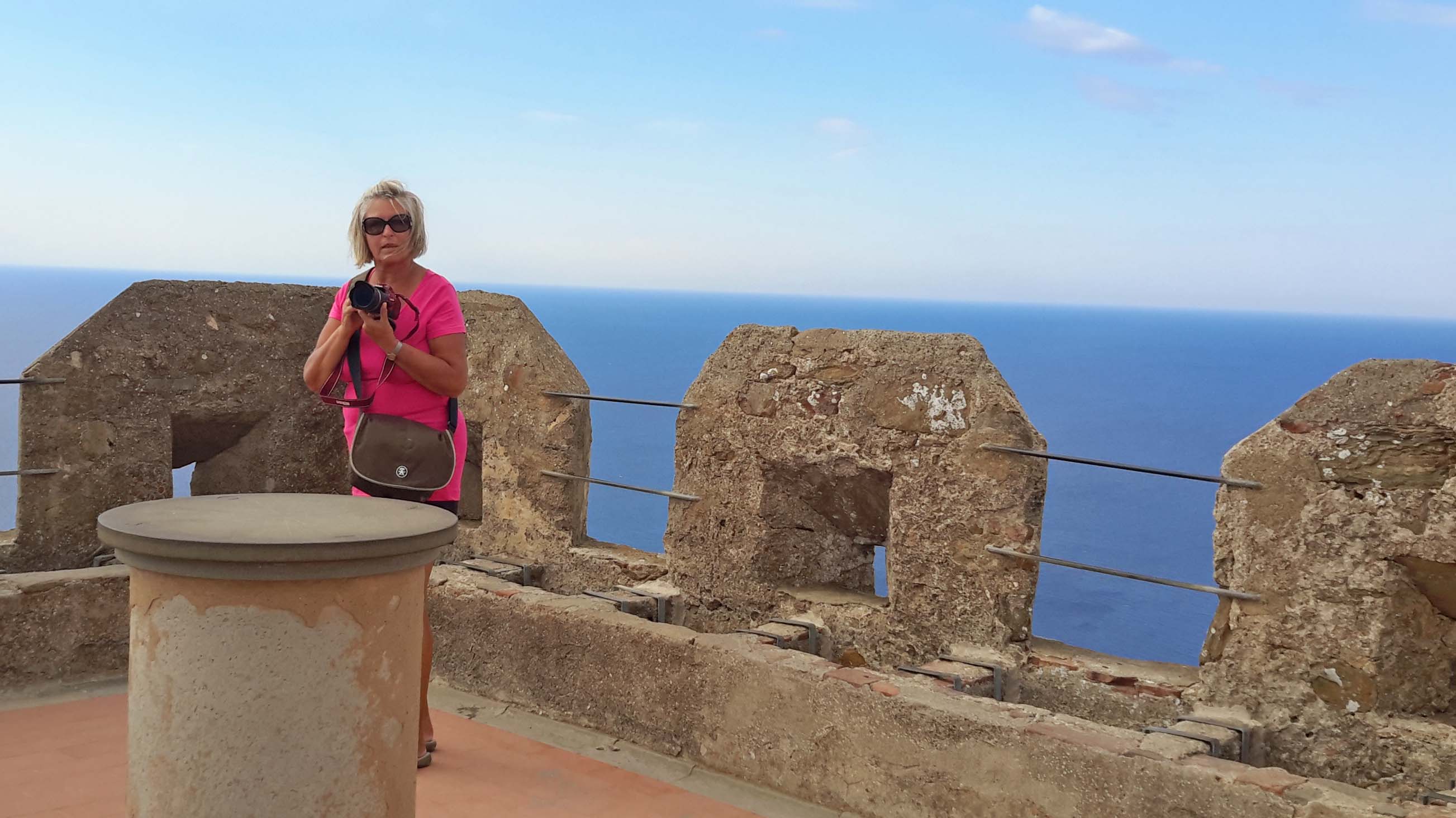 Als Nächstes hatten wir uns Castagneto Carducci ausgesucht. Dies Örtchen liegt mitten in der Macchia, 190 Meter über dem Meer. Hier genossen wir ein verdammt gutes Gelato, schlenderten ebenso durch die mittelalterlichen Gassen und waren dabei sehr aufmerksam. Wir hielten Ausschau nach Sarah Ferguson und Mick Jagger. Ja genau, nach DER Prinzessin aus England und DEM Musiker der Stones. Sarah ist mit dem Conte aus Castagneto liiert und Mick Jagger besucht ab und zu Freunde hier. Auf der Piazza Belvedere einen grandiosen Blick aufs Meer genossen. Leider bewölkte es sich mehr und mehr. Wir entschlossen uns zur Weiterfahrt, denn weder Mick noch Sarah liefen uns über den Weg. Schade eigentlich…..