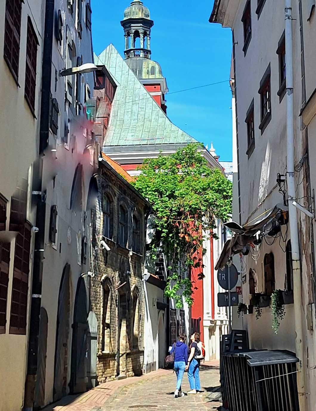 Die Uhr ⏱️bestimmt jetzt unser Tun. Es geht zurück in die Altstadt auf den Livenplatz. Hier findet unser Riga-chill-out bei herrlichster Sonne statt – natürlich (für mich) mit einem Aperölchen 🍹.