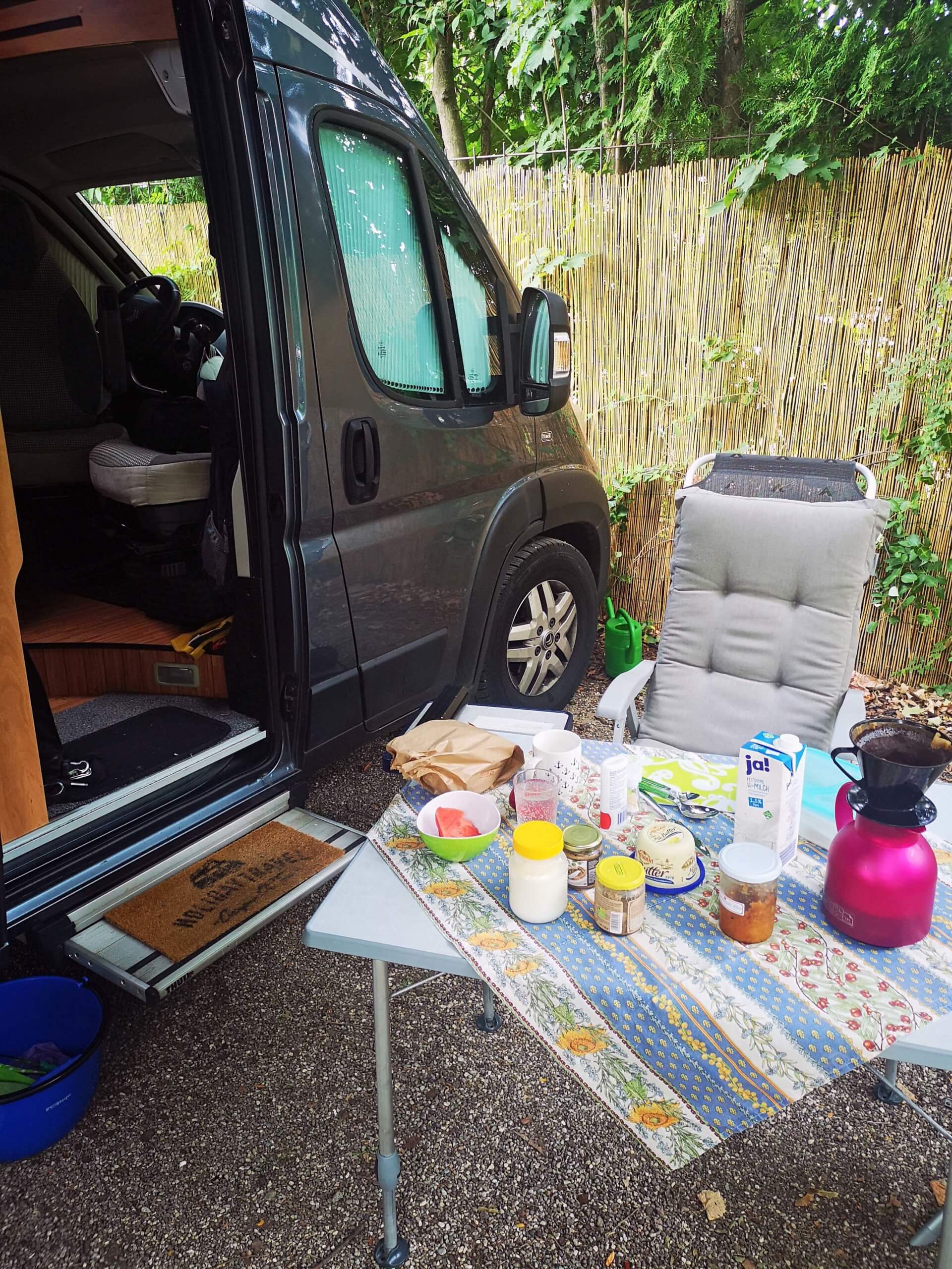 Und kurz hinter dem Campingplatz habe ich ein Déjavu! Neben mir taucht plötzlich aus dem Nichts der Mann mit dem unverkennbaren Bart auf, der in Vorarlberg mein Campingnachbar war. Hallelujah sag‘ ich, das gibt’s doch wohl nicht! Wir sind beide freudig überrascht und vereinbaren gleich ein abendliches Treffen. Es ist der Urlaub der Zufallstreffen.