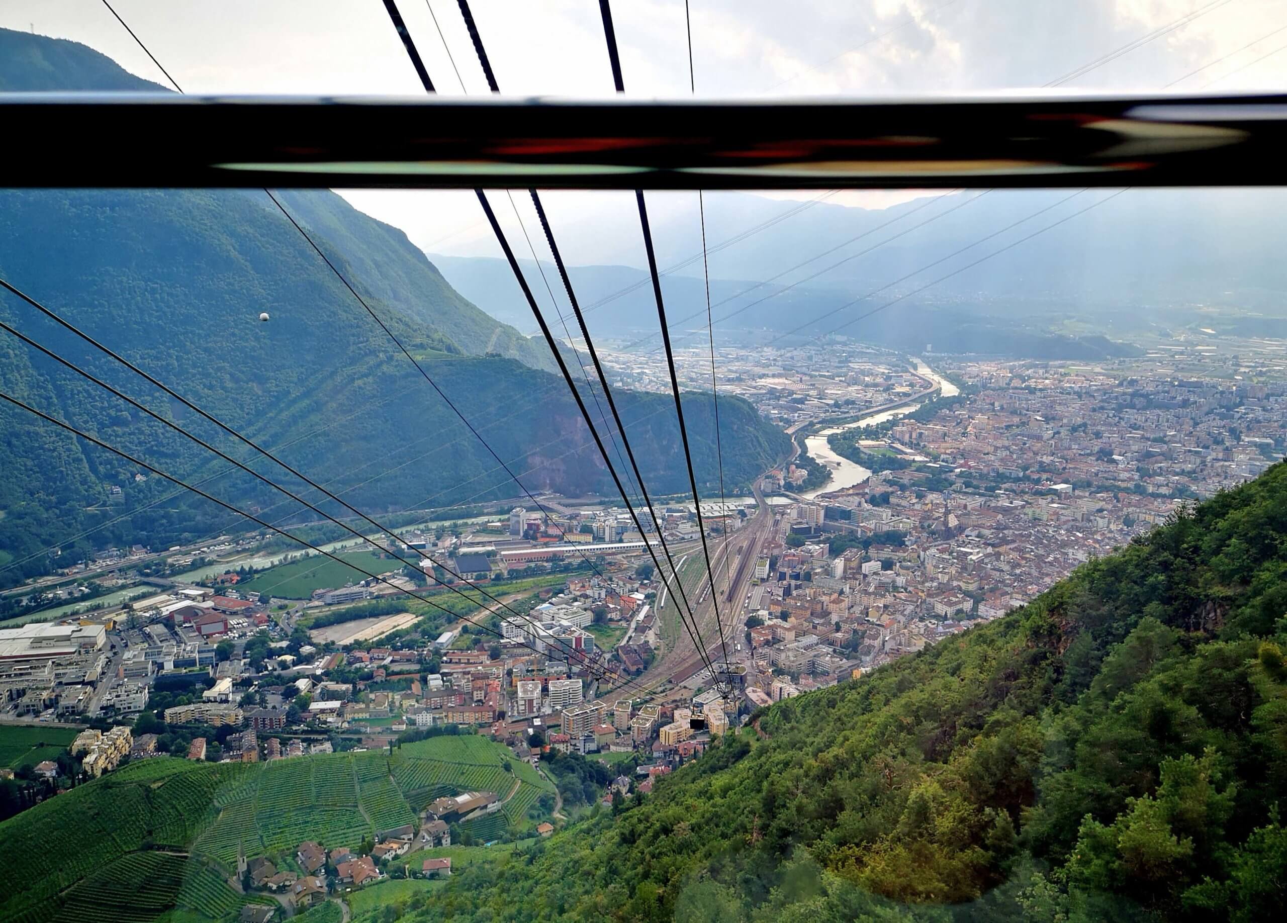 Zu Fuß, mit der Schmalspurbahn und der Rittner Seilbahn gelange ich wieder ins Tal und mache mit dem Rad noch einen kleinen Umweg zum Schloss Runkelstein, einer mittelalterlichen Burg auf einem Porphyrfelsen hoch über den Dächern von Bozen und der Talfer. Die möchte ich in den kommenden Tagen unbedingt besichtigen.