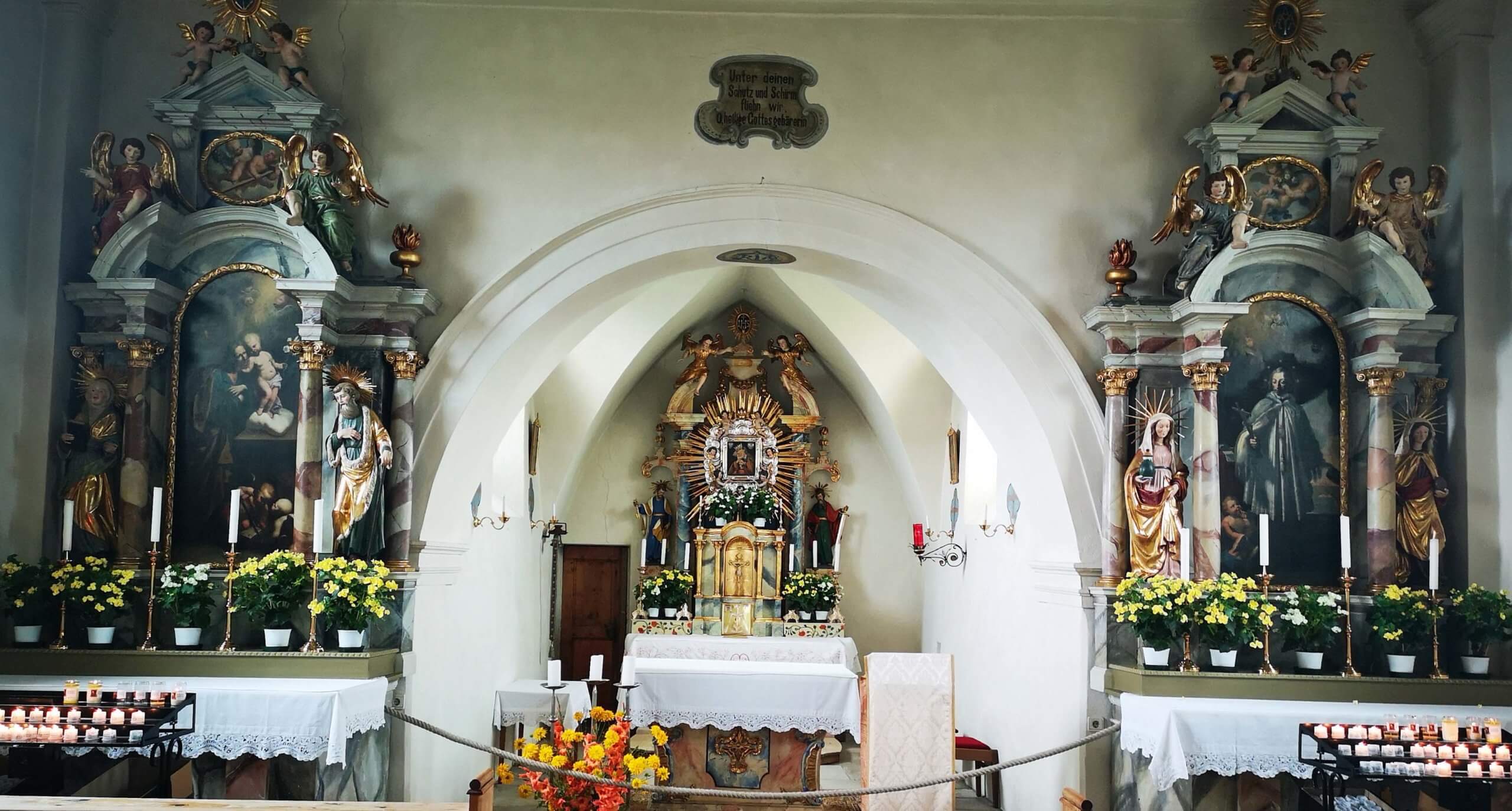 Und diese färben sich mittlerweile dunkelgrau. Nichts desto trotz laufe ich noch nach Maria Saal mit der malerischen Wallfahrtskirche. Die Kirche selbst stammt aus dem 17. Jahrhundert, der Hochaltar aus dem 18ten. Sehenswert ist ein Wandbild, welches die Muttergottes mit Regenschirm zeigt. In früheren Zeiten war die Kirche vor allem Gebetsort der Bauern bei Trockenheit und Dürre. Daran erinnern zahlreiche Gebetstafeln.