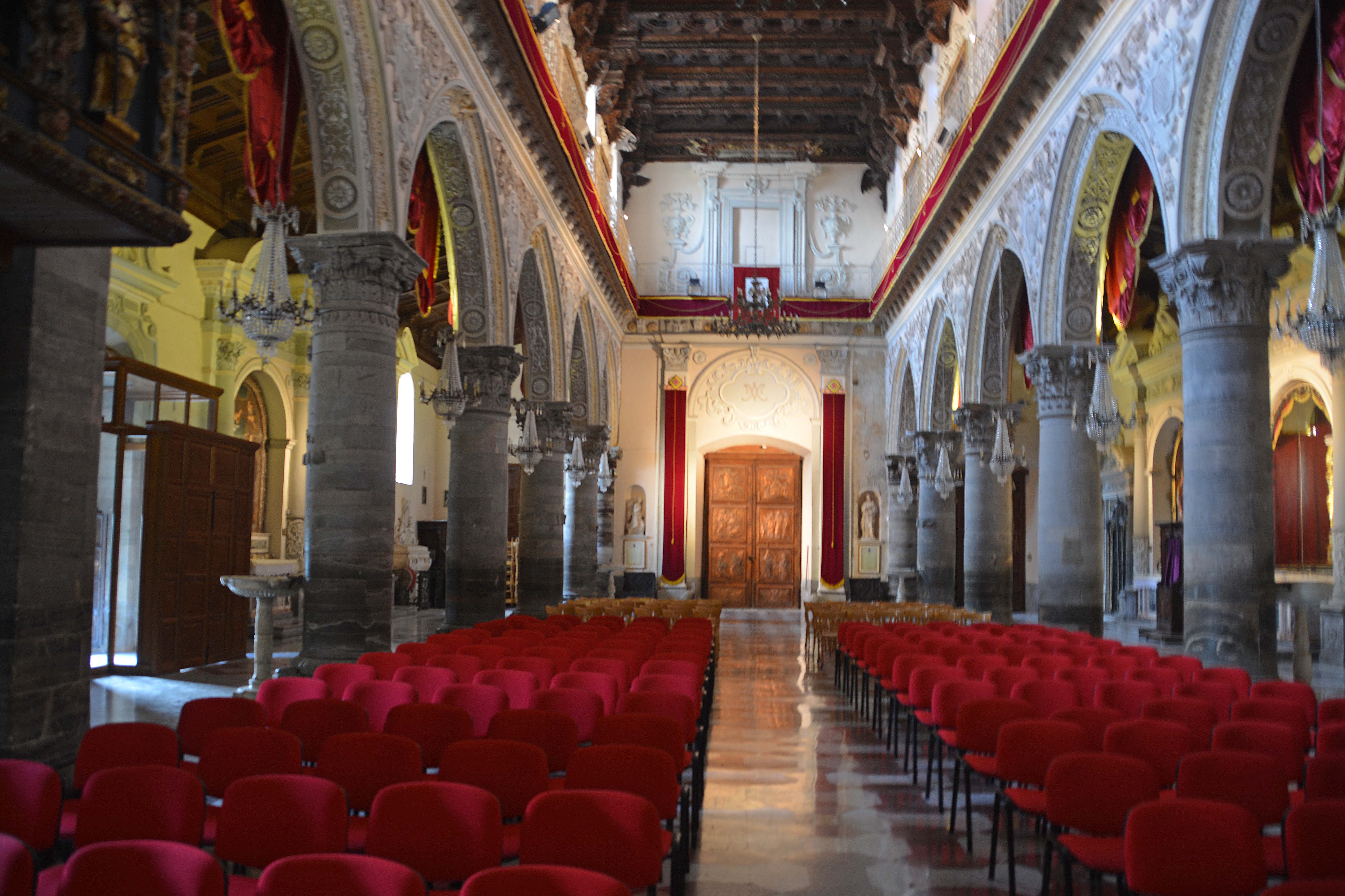 Gestärkt geht es per Fußmarsch immer bergauf zum Castello. Ich finde auf dem Weg dorthin eine geöffnete Kirche – was auf Sizilien in der Mittagszeit eine große Ausnahme ist. Hier werden wir fürstlich von einer perfekt geschminkten Dame begrüßt, die uns sofort sprudelnd auf Italienisch erklärt, wo wir uns befinden und wie wichtig doch diese Kirche ist. Dann erhalten wir tatsächlich eine deutsche Beschreibung. Es handelt sich nämlich um eine Soldatenkirche mit zahlreichen Gräbern.