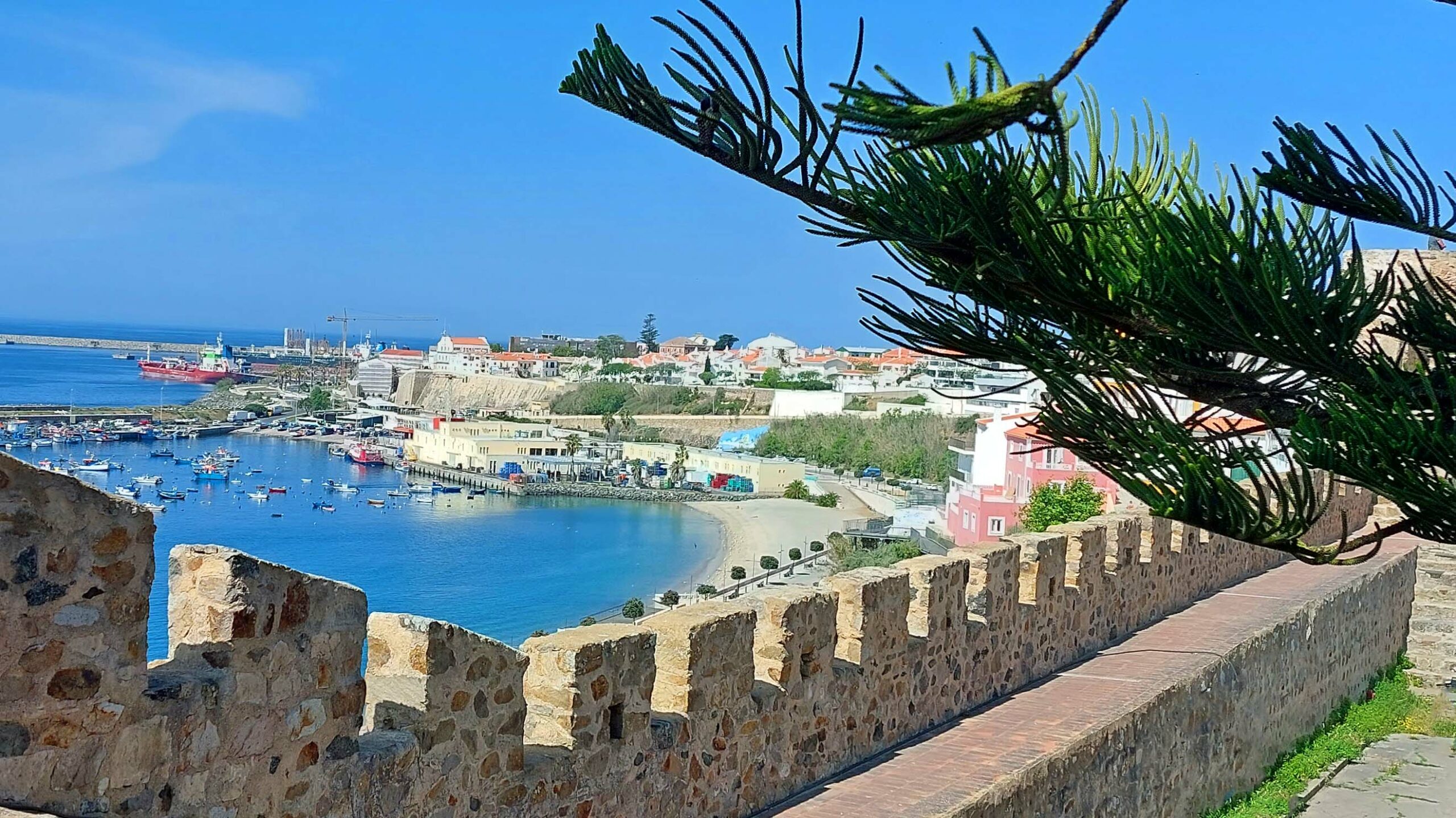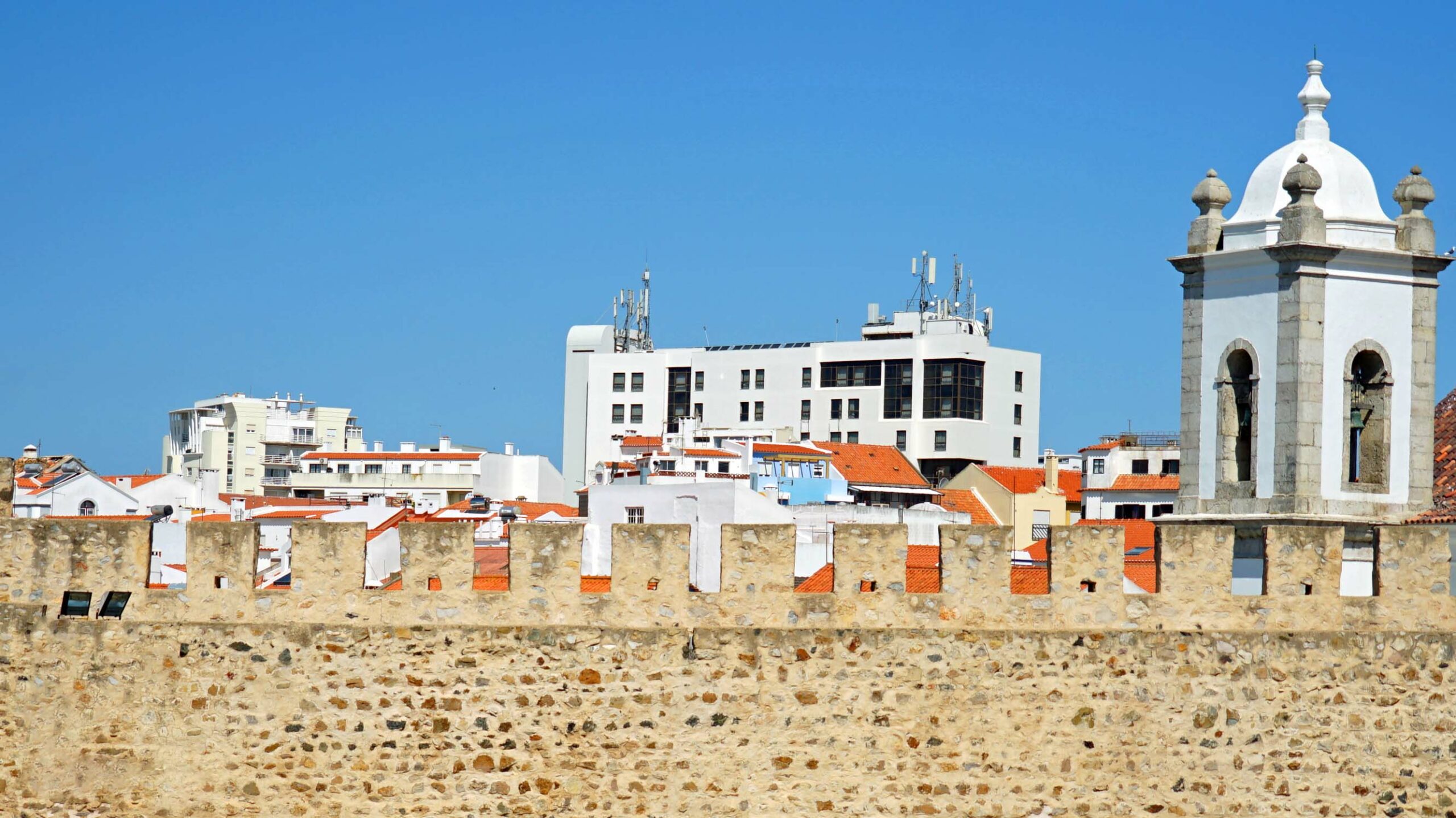 Die Blicke vom Castelo auf die Strandbucht Praia Vasco da Gama und das Meer sind umwerfend. Die kleine Pfarrkirche klemmt sich an die Zinnenmauer des Castelos, in dem der Seefahrer vermutlich das Licht der Welt erblickte. Das Farbenspektakel ist wunderschön anzusehen, rote Dächer, blaues Meer und weiß-blaue Häuschen. Ich genieße.