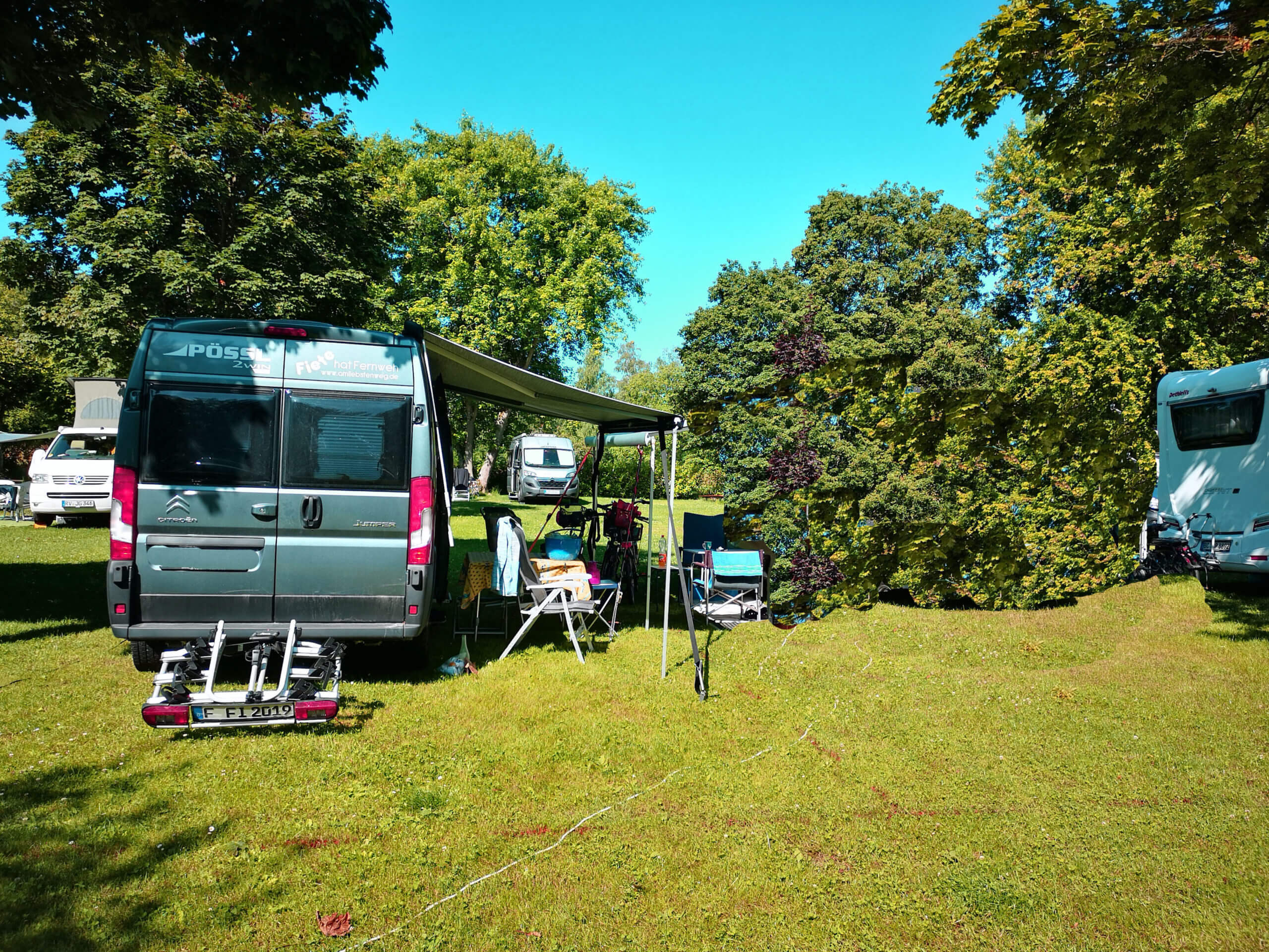In Konstanz auf dem Weg zum Campingplatz treffen wir zufällig unsere WG Gruppe ‚Thomas, Gerhard und Klaus. Kurzer Schnack, Rad von Gerhard abladen und ab zum Camping Bruderhofer. Ein sehr gemütlicher Campingplatz mit Wiesengrund, vielen Bäumen und Blick auf den Bodensee. Und seit einigen Tagen ist sogar das Duschhaus normal geöffnet.