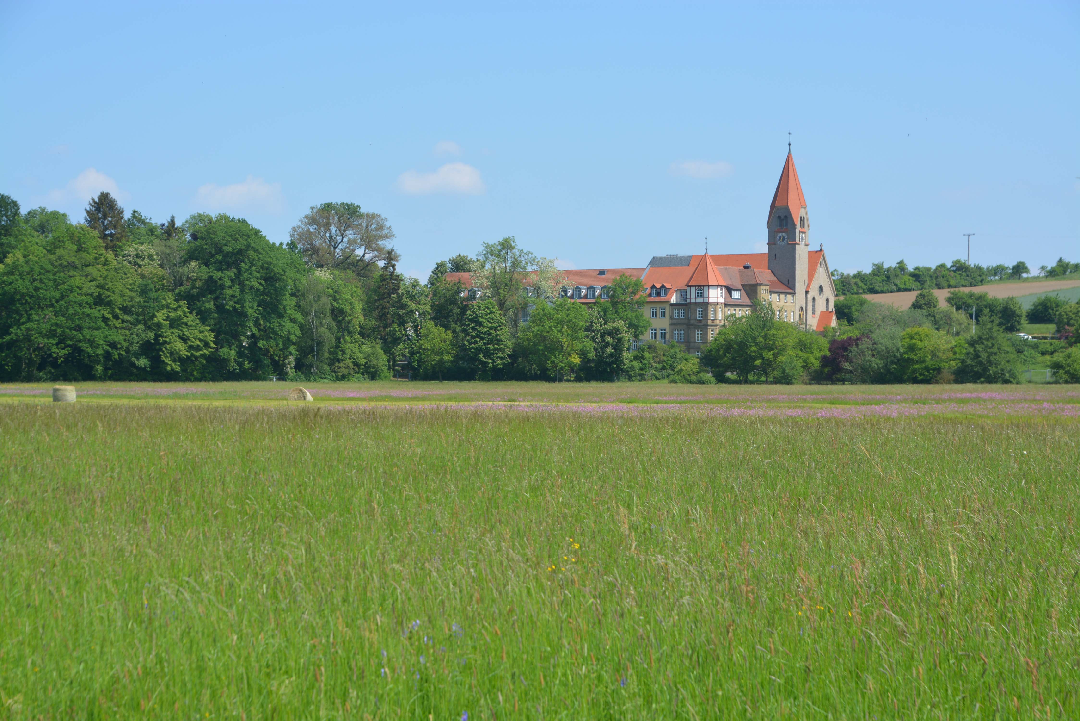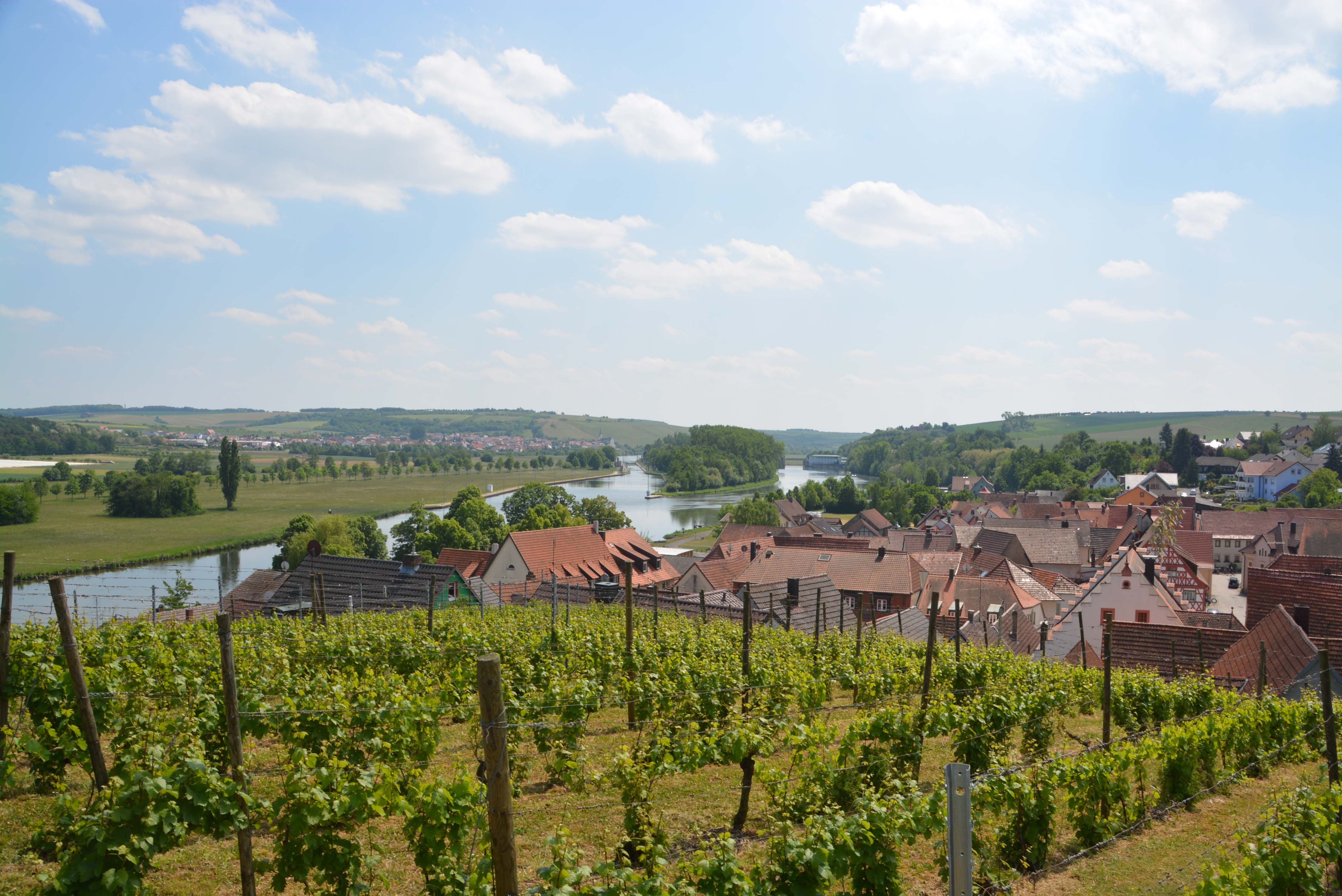Es ist traumhaftes Wetter, wolkenlos, warm, einfach grandios. Wir verlängern unser Frühstück und plötzlich fällt die Radlertruppe aus dem Hotel Behringer auf unserem Campingplatz ein. Für heute nehmen wir uns die andere Richtung des Mainradweges vor. Es geht Richtung Schweinfurt.