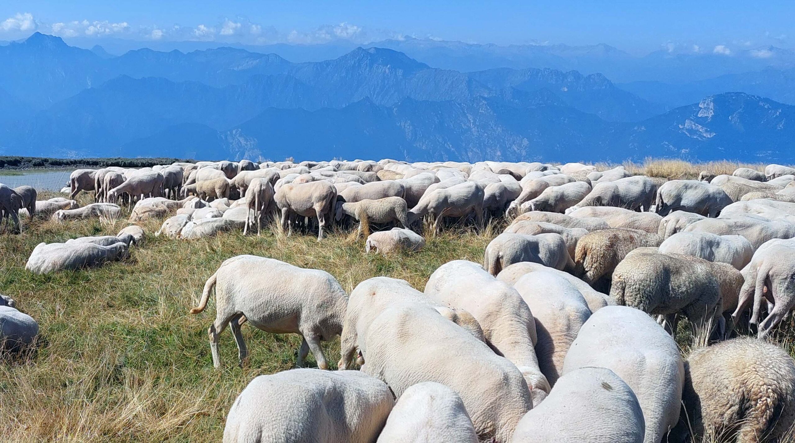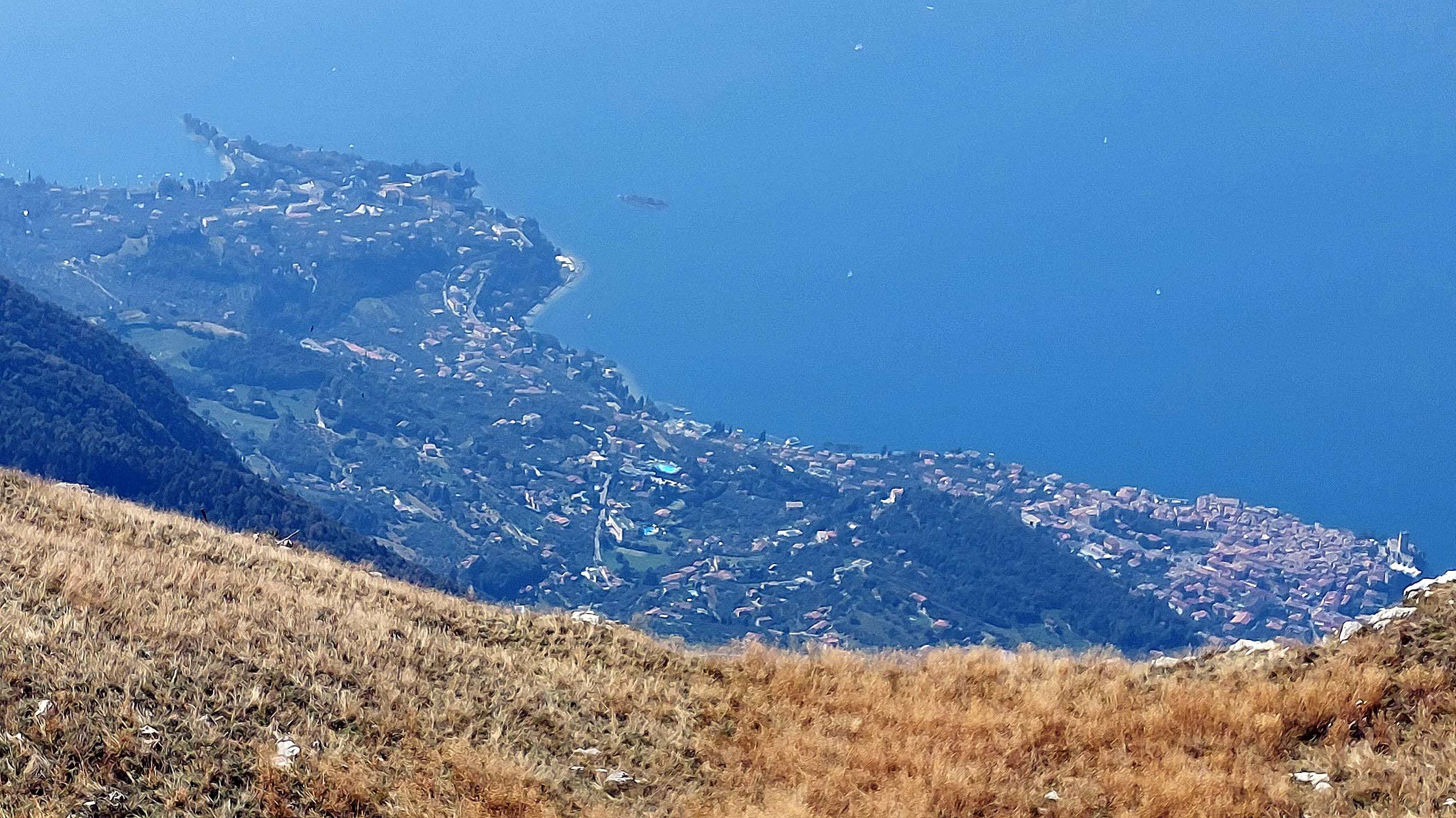 Blöderweise ist es sehr diesig 🌁 über dem See, aber ich kann die Silhouetten von Malcesine, Riva del Garda, Torbole und Limone gut erkennen. Und ehe ich mich versehe bin ich mitten in eine blöckenden Schafherde 🐑🐏🐑🐏eingepfercht.
