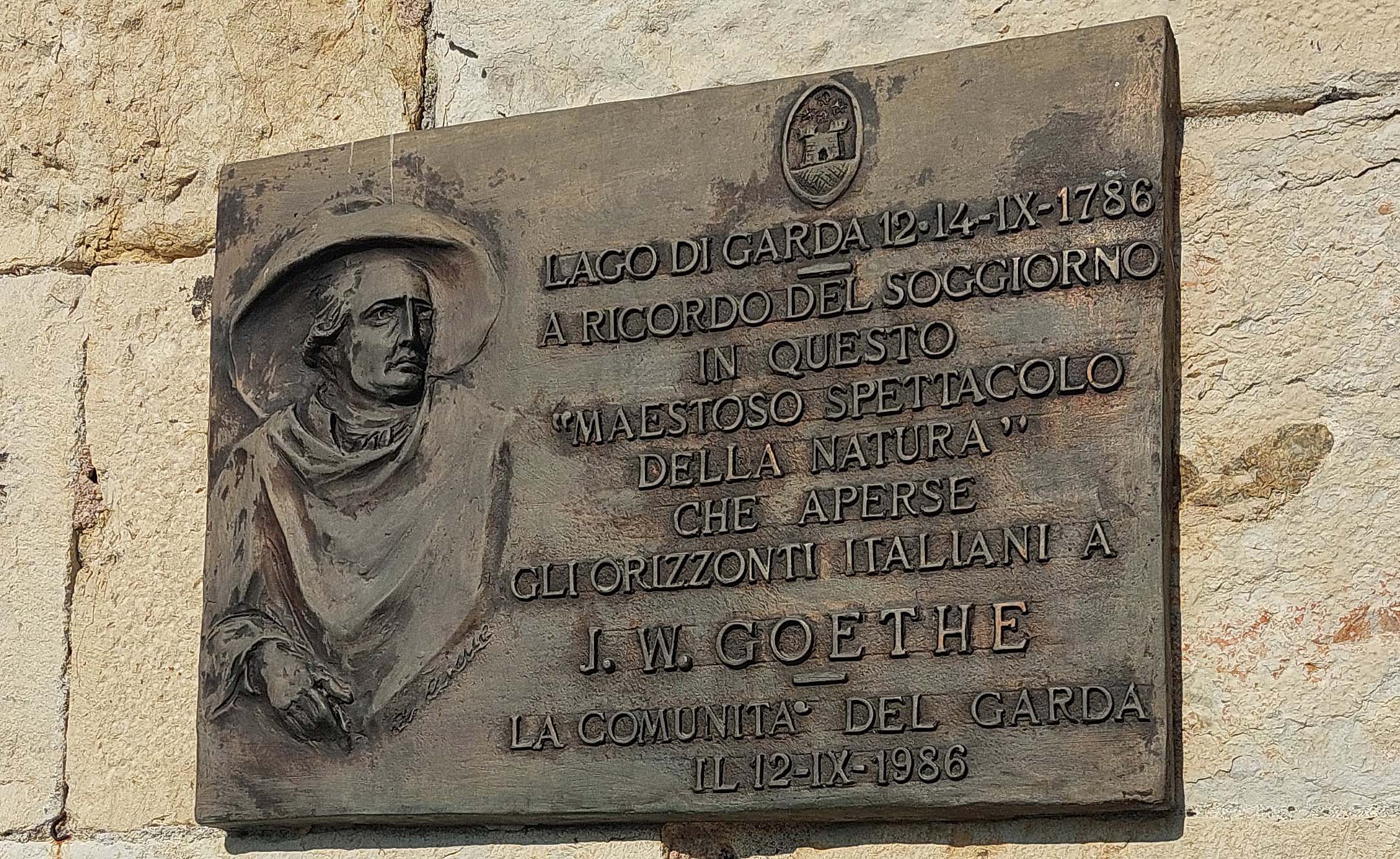 Ich klettere 120 Stufen hinauf zum Eingang, zahle fünf Euronen Eintritt und erfreue mich auch hier an der atemberaubendenNatur. Das ging Goethe offensichtlich genauso. Er strandete auf dem Weg nach Bardolino mit seinem Segelschiff in Malcesine und skizzierte – in der Wartezeit auf abflachende Winde – das Castello. Gedenktafeln erinnern an seinen Aufenthalt vor 237 Jahren.