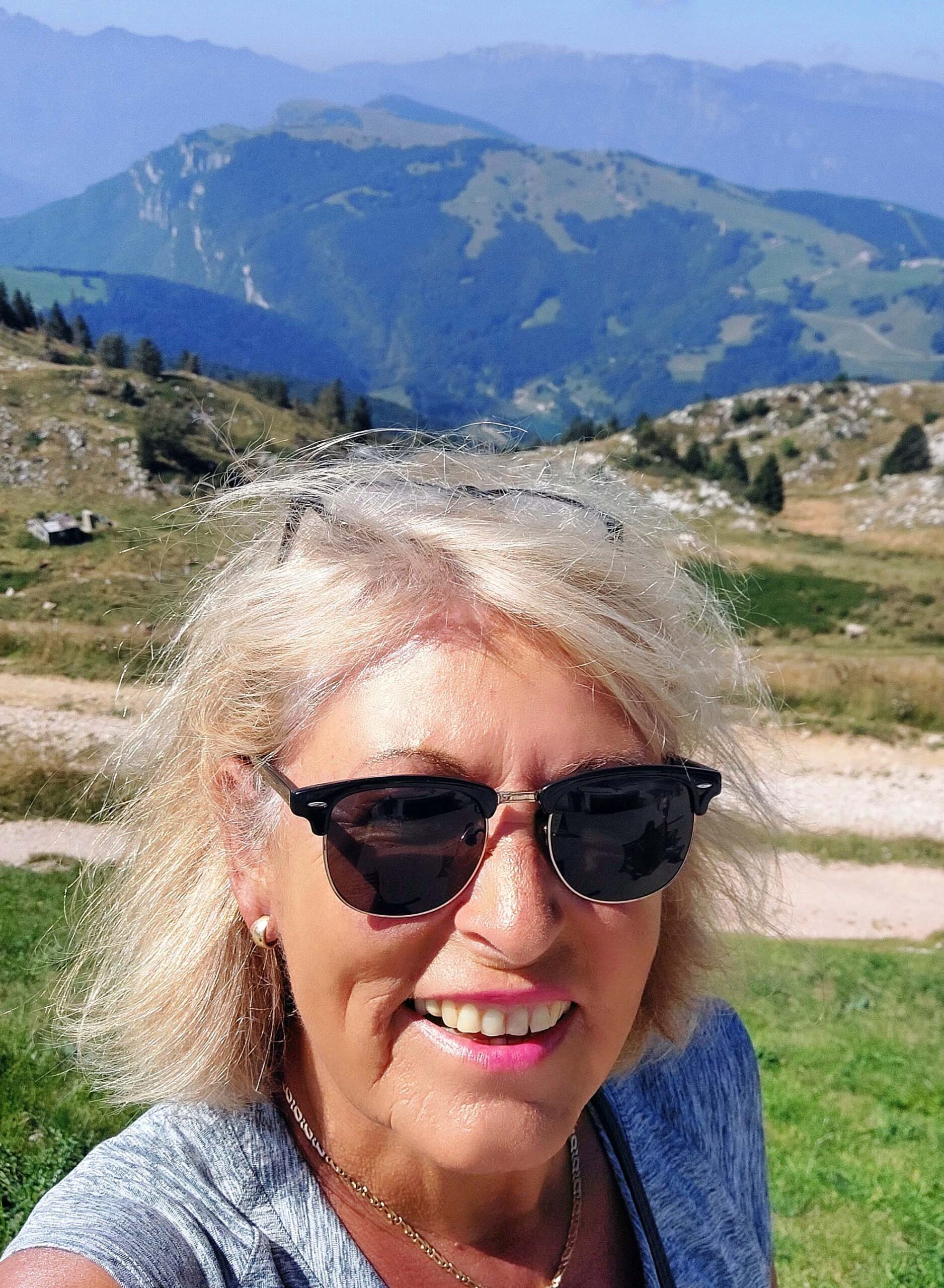 11:30 Uhr“, denke ich positiv. Träum‘ weiter, Ingrid! Erst nach einer geschlagenen Stunde bin ich endlich in der ersten Seilbahnkabine. In San Michele auf 580 Metern muss ich umsteigen. Wieder Wartezeit. Die Kabinen zur Bergstation „Tratto Spino“ auf 1760 Meter Höhe, rotieren um 360° und bieten einen sagenhaften Ausblick über See und Berge! Das lässt die langen Wartezeiten vergessen.
