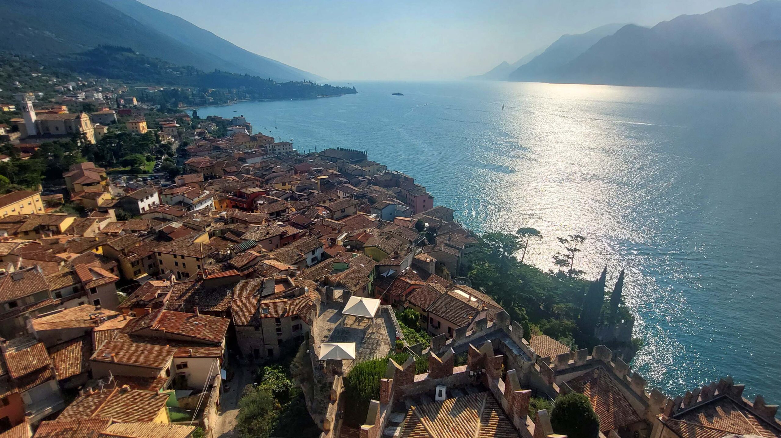 Deshalb nehme ich die nächste Funivia 🚡 und gleite ins zurück ins Tal. Der Ort ist DAS Prunkstück des Gardasees – vor allem wegen des Castello Scaligero 🏰 mit seinem 33 Meter hohen Bergfried und der grandiosen Ausblicke!