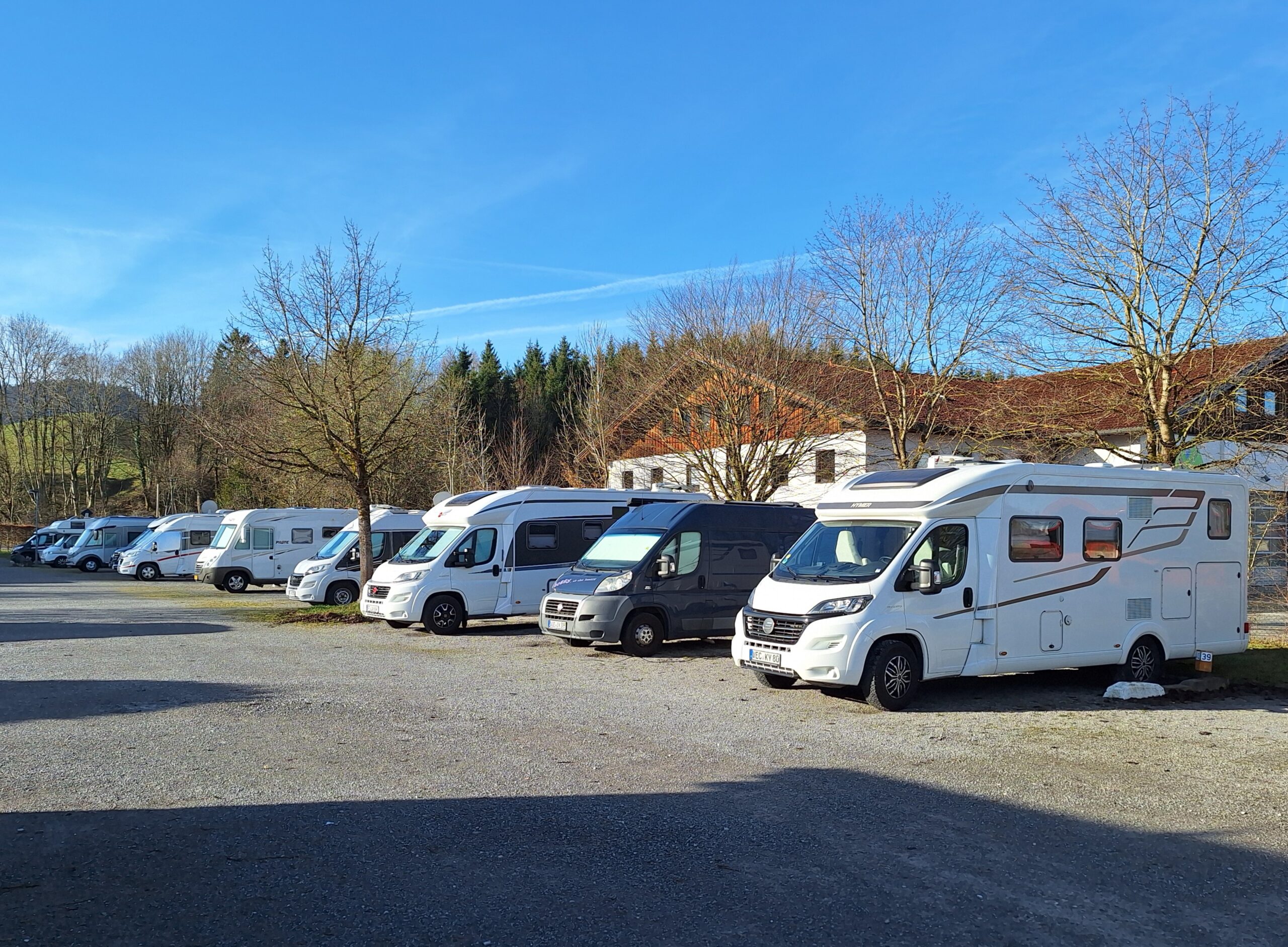 Dann ab auf die Autobahn : Würzburg, über die A7 vorbei an Ulm und Kempten direkt nach Füssen. Unterwegs ist es heiter bis wolkig, kein Stau und damit ein sehr gutes Durchkommen. Ohne Pause erreiche ich mein Ziel und bin überrascht über die noch zahlreich vorhandenen freien Stellplätze, und das um 17 Uhr!! Es nieselt leicht und ist ziemlich kühl. Kaufe schnell etwas ein, fülle Frischwasser in den Tank und richte die Antenne aus. Gemütliches Abendessen bei chilligem fernsehen. Gut geht’s los!