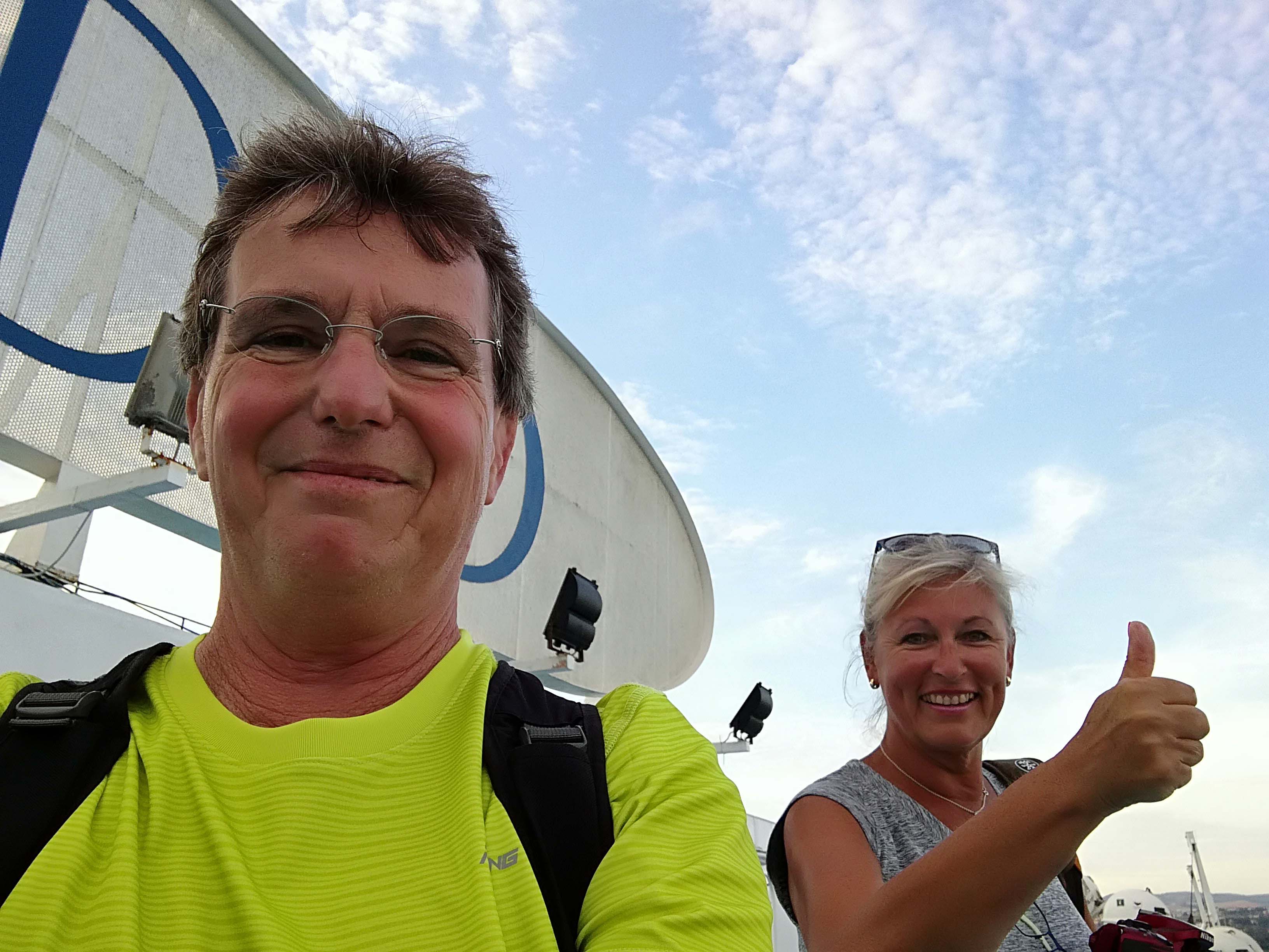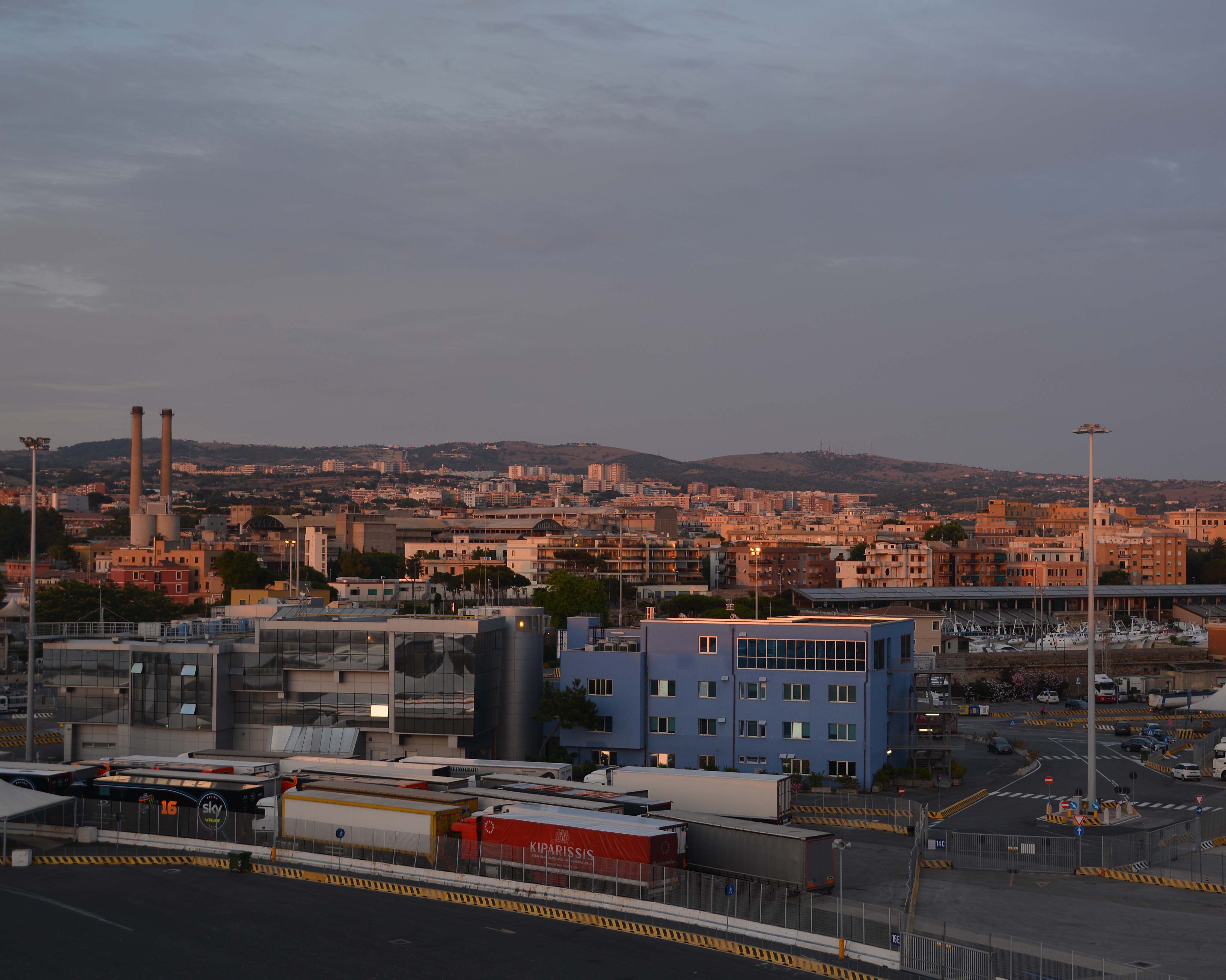 Jetzt beginnt der Endspurt für heute. Nach 11 Kilometern auf der SP45 kommen wir ohne Umwege im Hafen und unserem ‚Imbarchi Termini Imerese‘ an. Es ist 18:30 Uhr und wir haben noch massig Zeit (ca. zwei Stunden) bis die Fähre ablegt. Pustekuchen! Keine 10 Minuten später heißt es los auf die Fähre fahren. Plötzlich wilde Gesten und ein ‚Ihr müsst das Ticket gegen ein anderes im Terminal 1 tauschen‘. Ganz großes Fähr-Kino! Klaus rennt zum Schalter – keine Ausweise dabei. Ich renne mit den Ausweisen zum Schalter. Jetzt passt‘s. Alles wird gut. Zurückkommen zum Imbarchi ist eine mittlere Katastrophe. Wir missachten kurzerhand ein Einbahnstraßenschild und wurschteln uns wieder in die richtige Fahrspur. Geschafft. Noch einen Sicherheitscheck, nochmal die Ausweise vorlegen, die Biglietti bereithalten und rein in die Fähre.