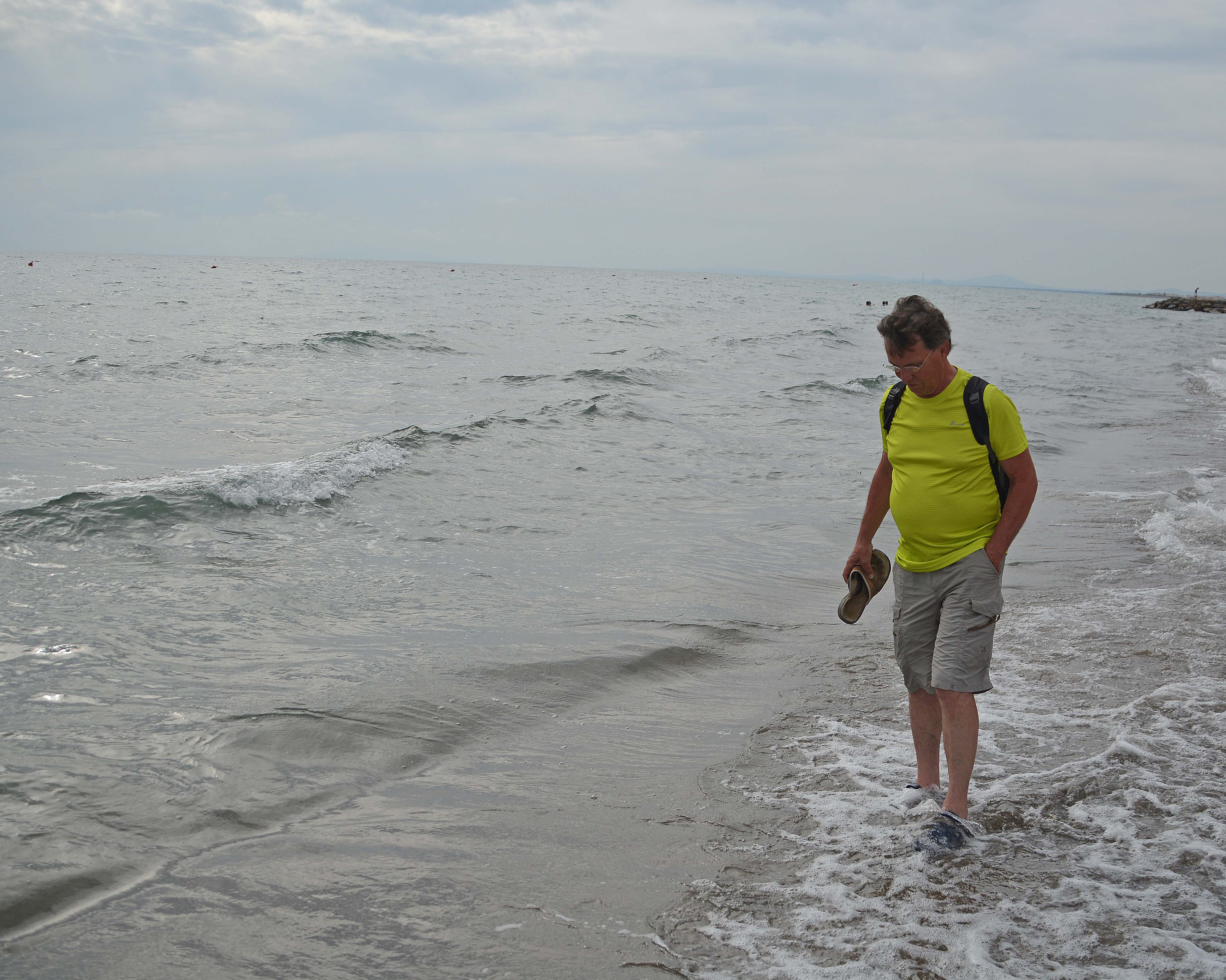 Magen an Großhirn ‚Ich-habe-Hungi‘. Also beschließen wir, in Fonteblanda ans Meer zu fahren und dort gemütlich zu essen. Wir finden Fonteblanda, aber nicht das Meer. Wenige Kilometer weiter aber ein schattiges Plätzen unter riesigen Pinien. Nach einer Stunde setzen wir die entspannte Fahr fort und gucken uns Tarquinina Lido in der Region Lazio aus. Ich will jetzt einfach mal die Meertemperatur testen. Diesmal klappt es. Und ja, es hat Badetemperatur.