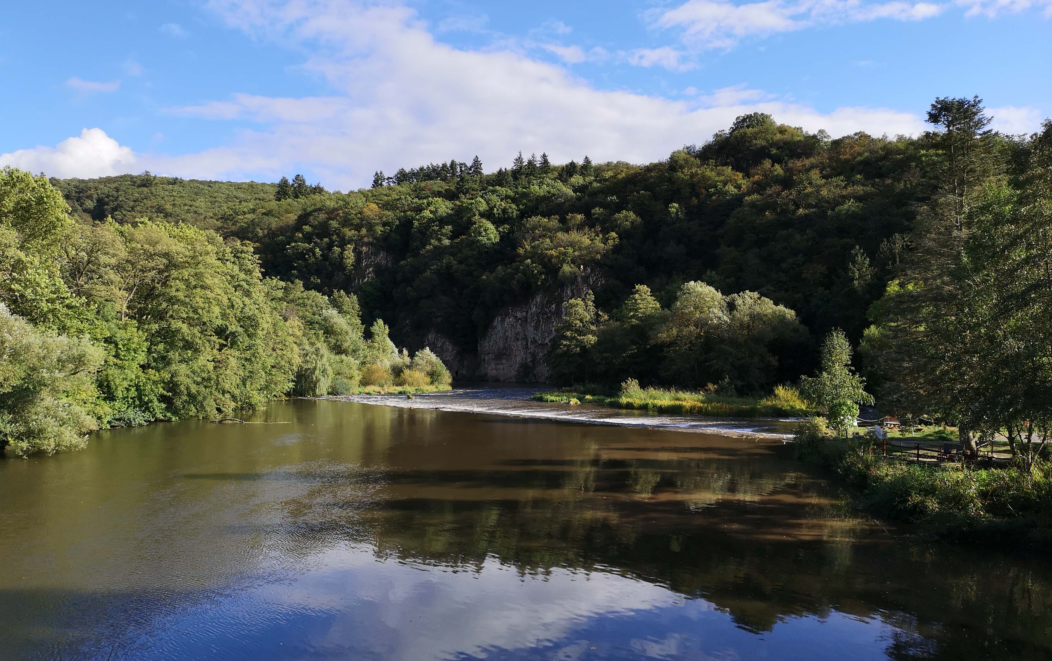 Der Naturcampingplatz ‚Nahe-Alsenz-Eck‘ liegt unmittelbar am Fluss. Wir haben Glück und bekommen den letzten Platz direkt am Naheufer, den wir gemeinsam nutzen können. Die Besitzer sind außerordentlich freundlich und kompetent. Wir genießen bei Kaffee und Kuchen die Sonne und fahren danach in den Ort, um Federweißen zu kaufen. Das Abendessen haben wir ins Womo’s verlegt, denn es regnet und ist kühl. Und das, obwohl wir in einer der regenärmsten und sonnenreichsten Region sind. Ganz großes Wetterkino!