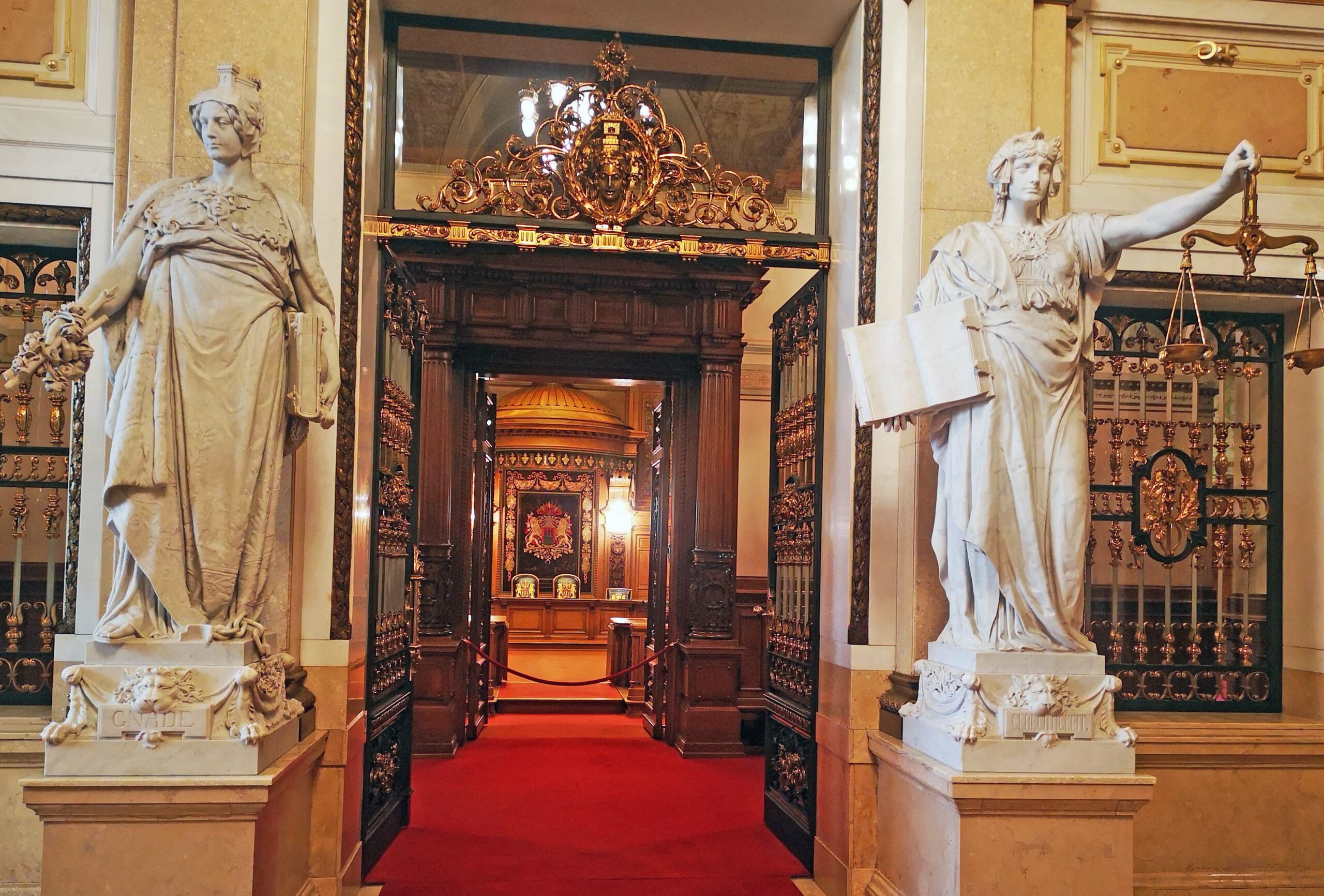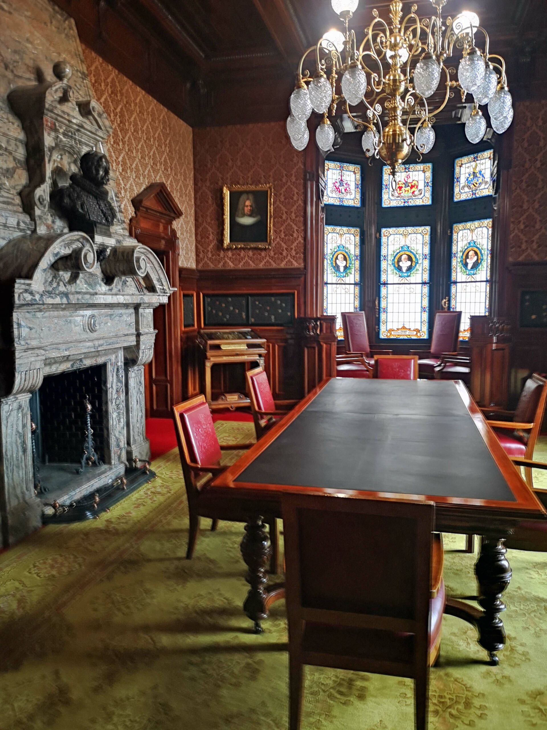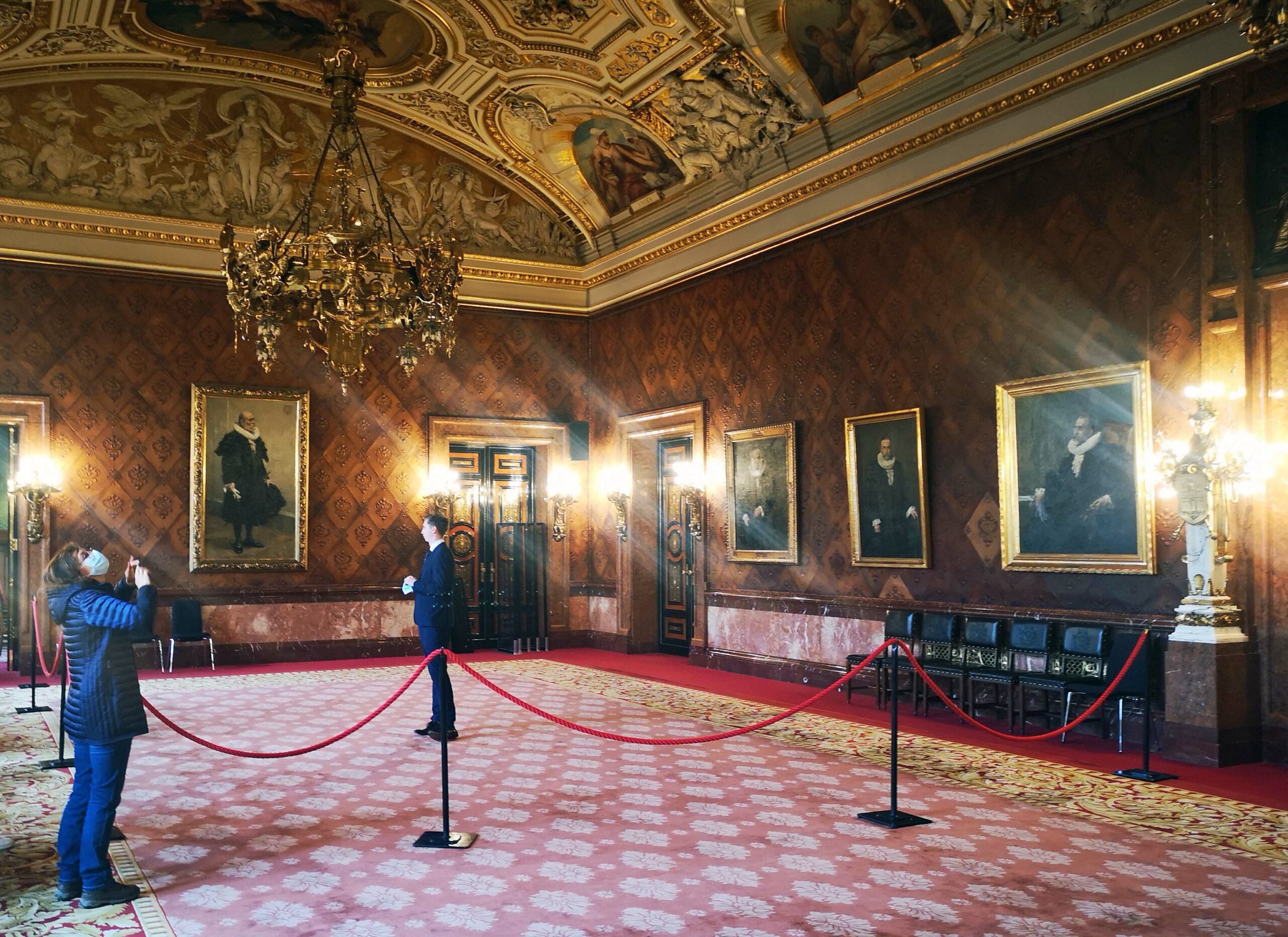 Mitten in der Rathausdiele treffe ich auf meine Gruppe. Über eine breite Treppe aus sardischen Marmor gelangen wir in einige der 647 Zimmer des Rathauses! Übrigens, es gibt hier mehr Zimmer als im Buckingham Palace!!!