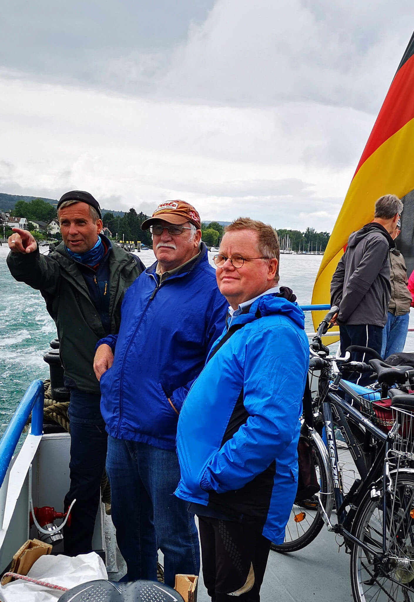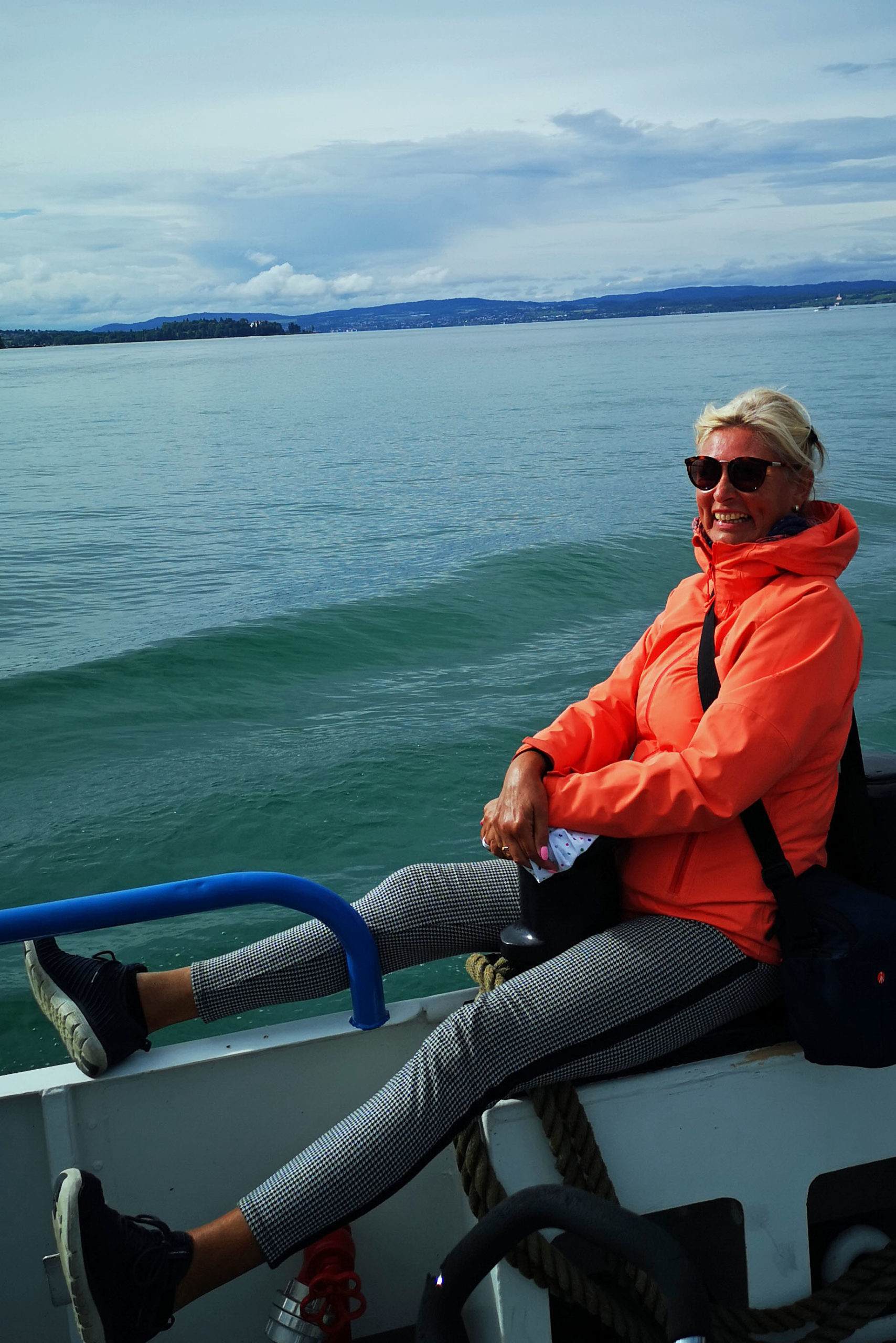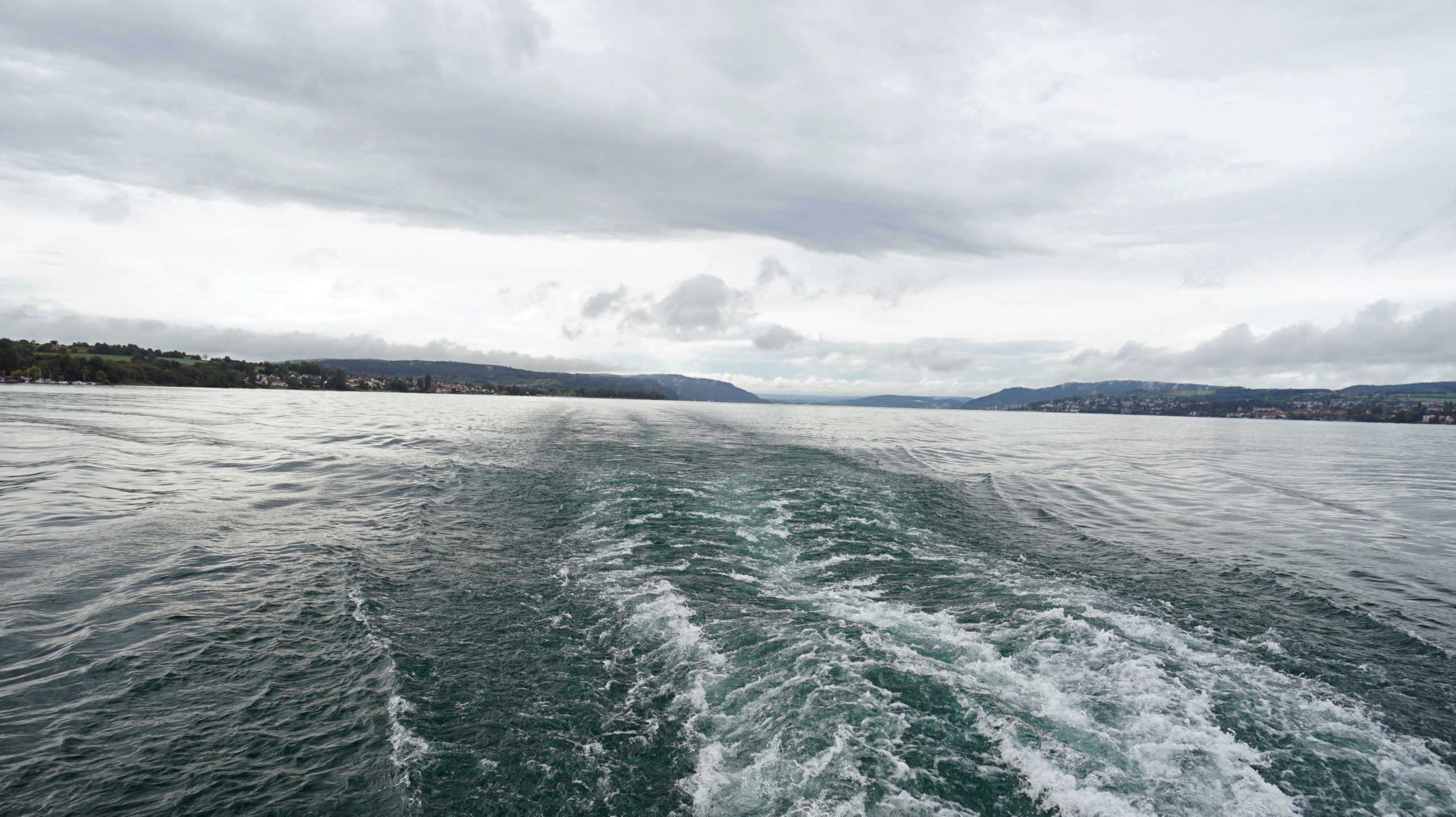 Jetzt heißt es improvisieren. Statt bis Ludwigshafen weiterzubiken, schippern wir mit der Personenfähre direkt nach Konstanz. ‚Auf See‘ wird’s langsam wieder heller. Die Wolkendecke reißt auf und ich entdecke blaue Flecken zwischen dem dunklen Wolkenmatsch.