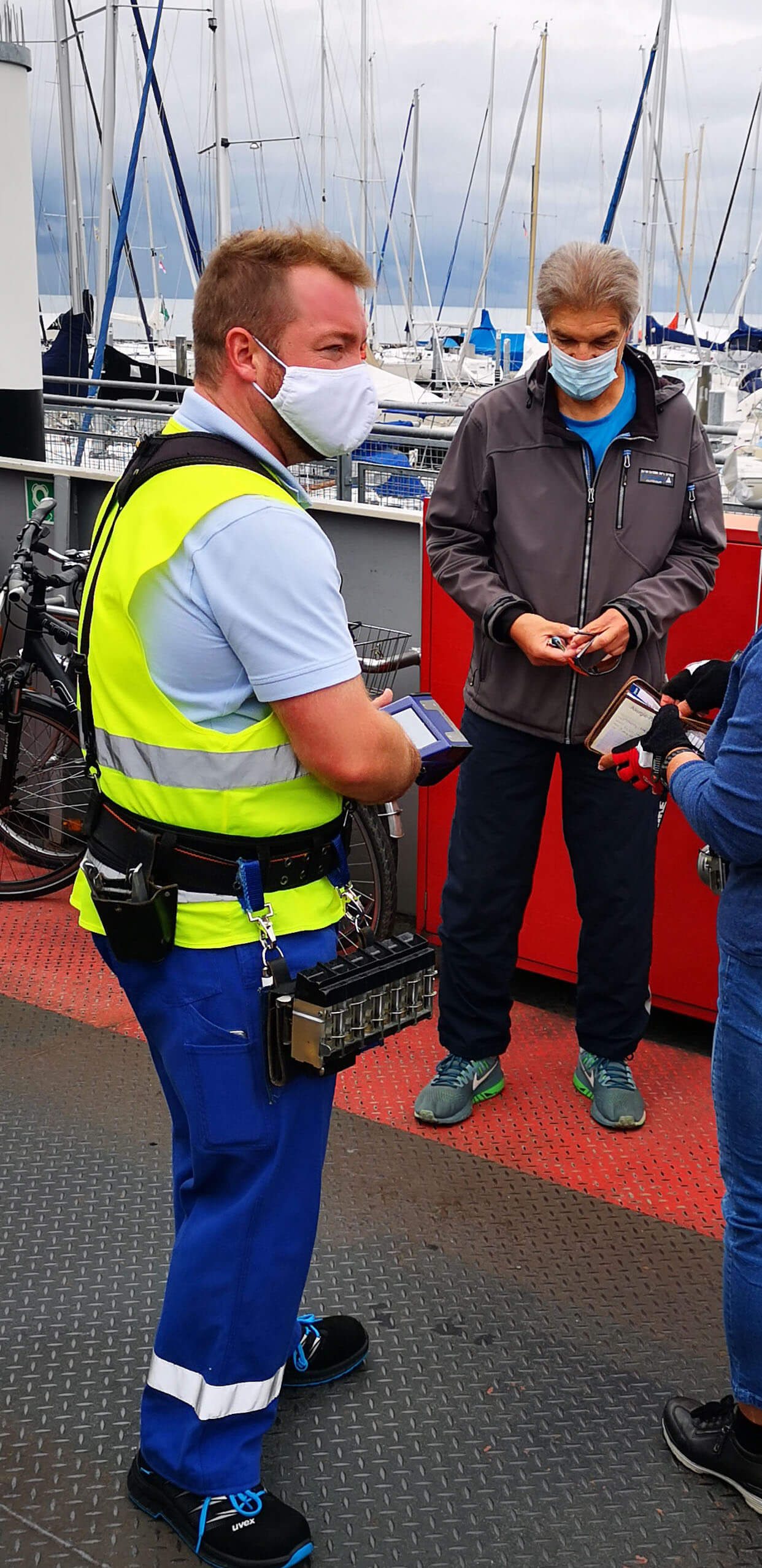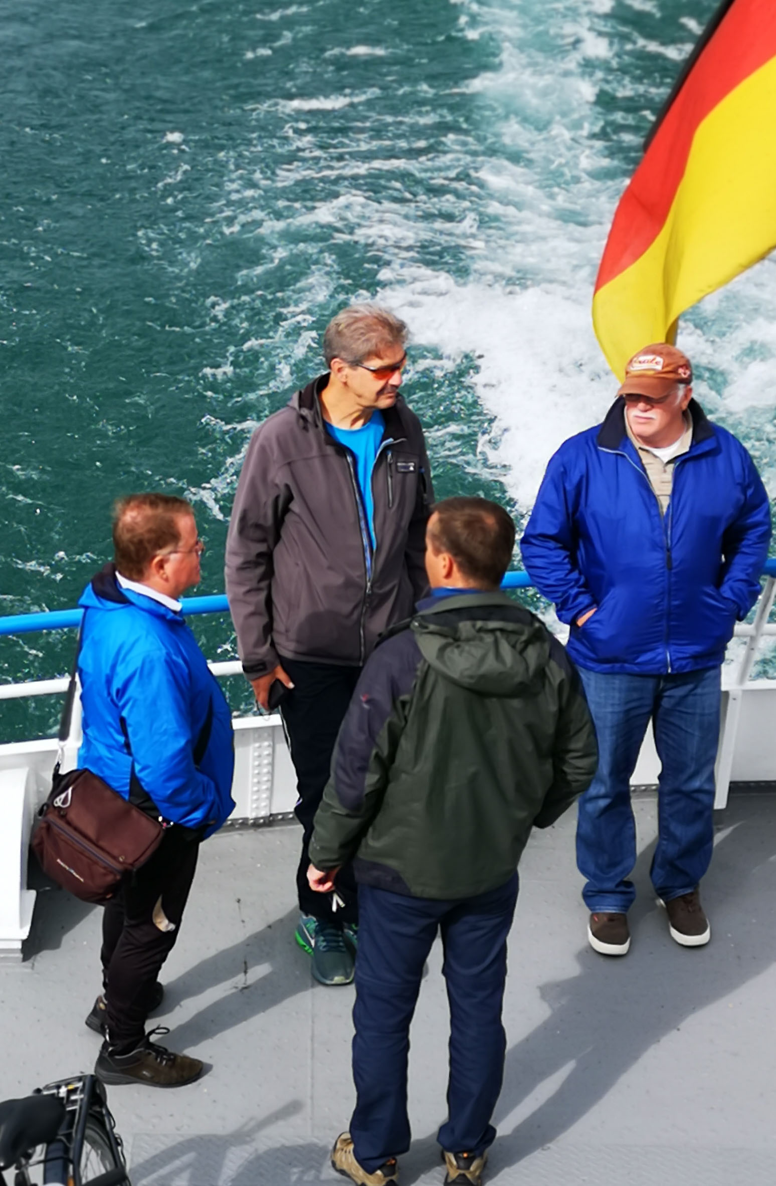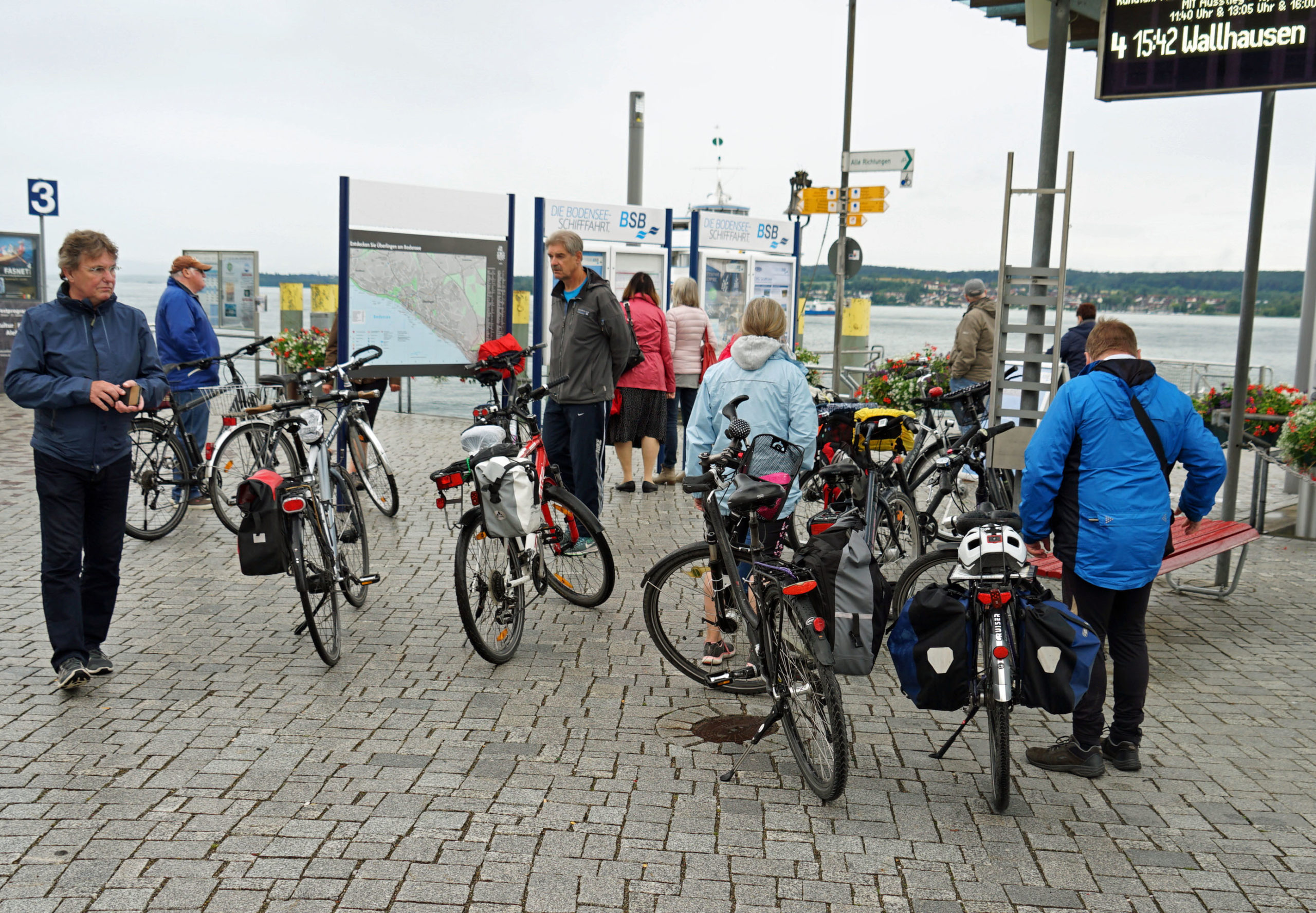Jetzt heißt es improvisieren. Statt bis Ludwigshafen weiterzubiken, schippern wir mit der Personenfähre direkt nach Konstanz. ‚Auf See‘ wird’s langsam wieder heller. Die Wolkendecke reißt auf und ich entdecke blaue Flecken zwischen dem dunklen Wolkenmatsch.