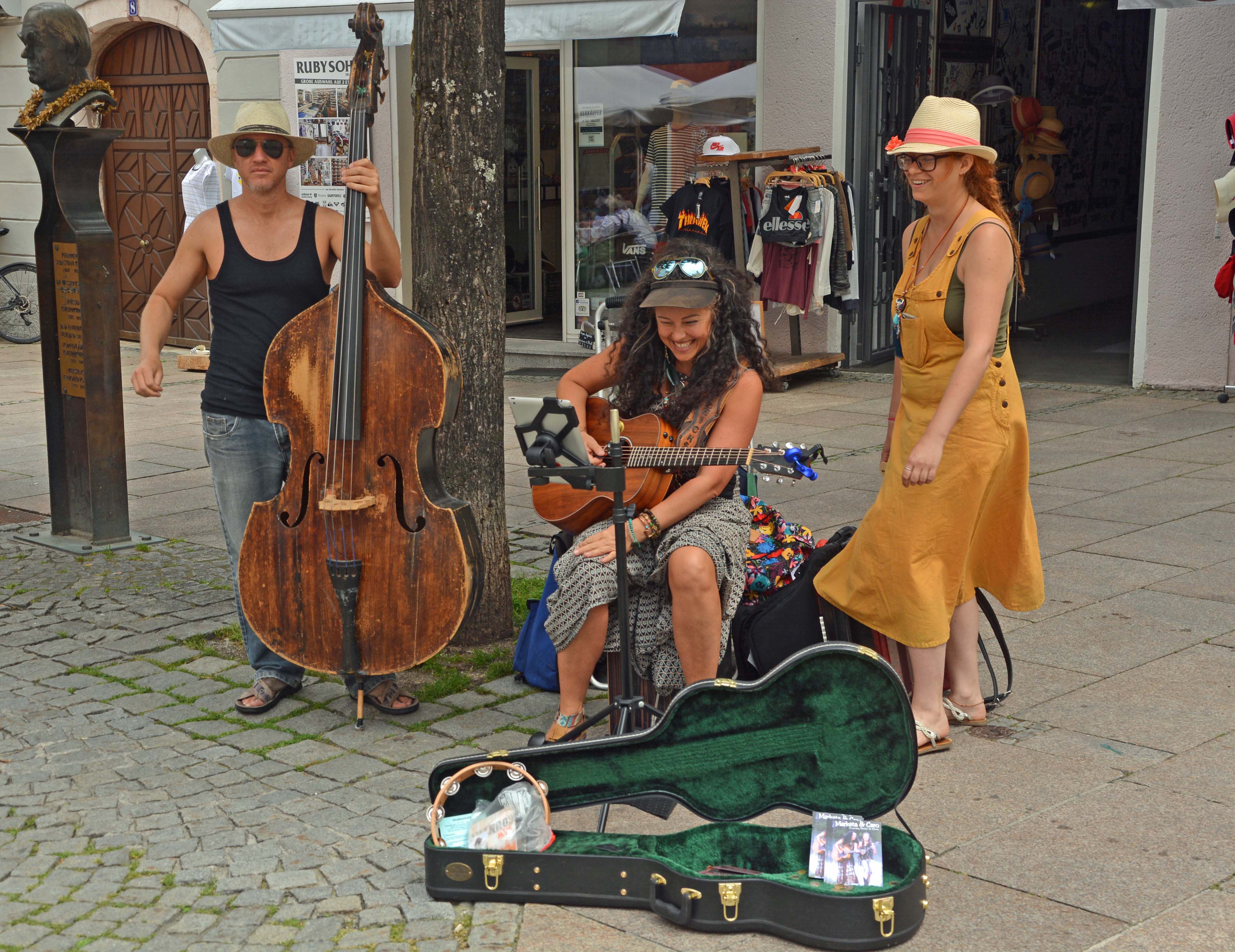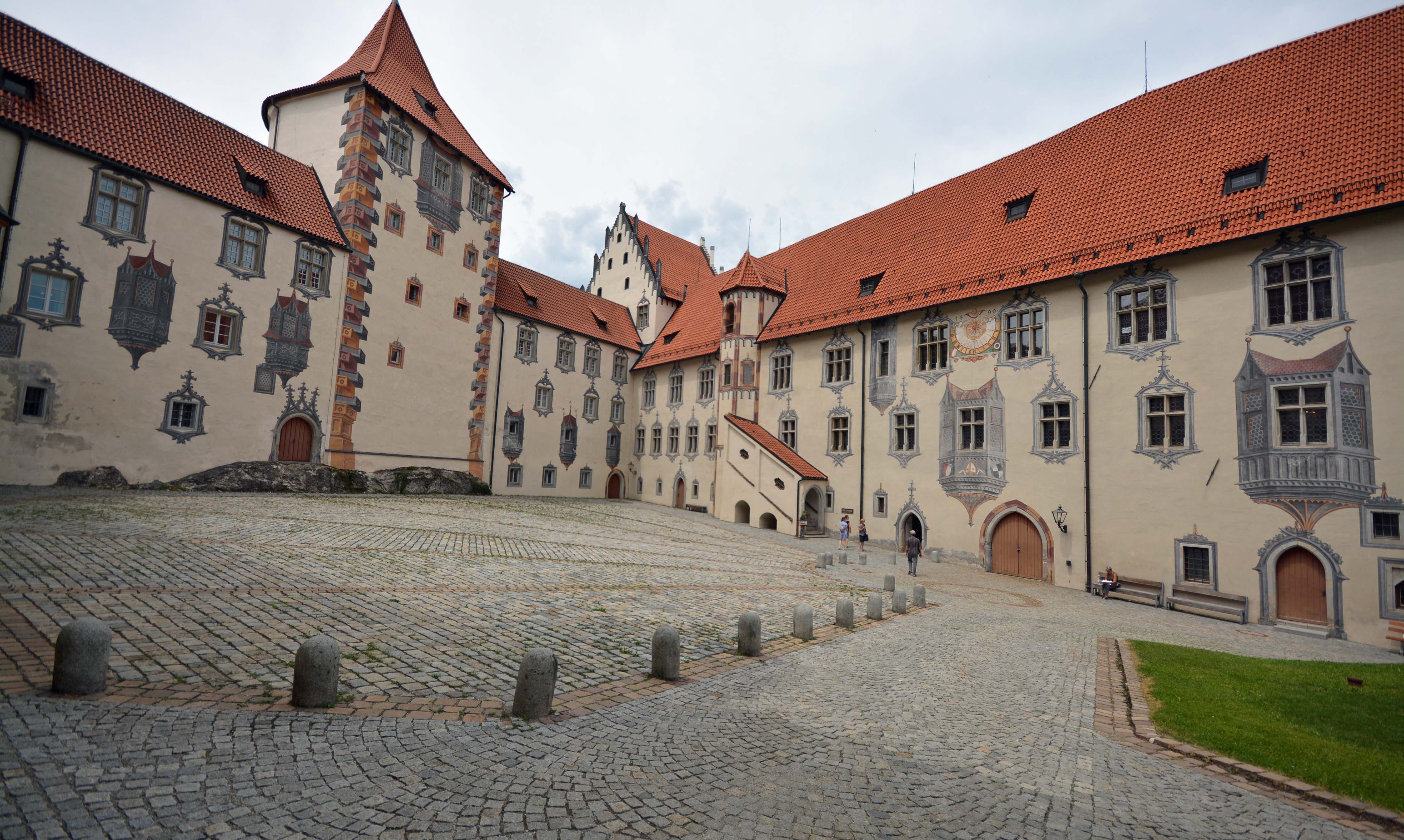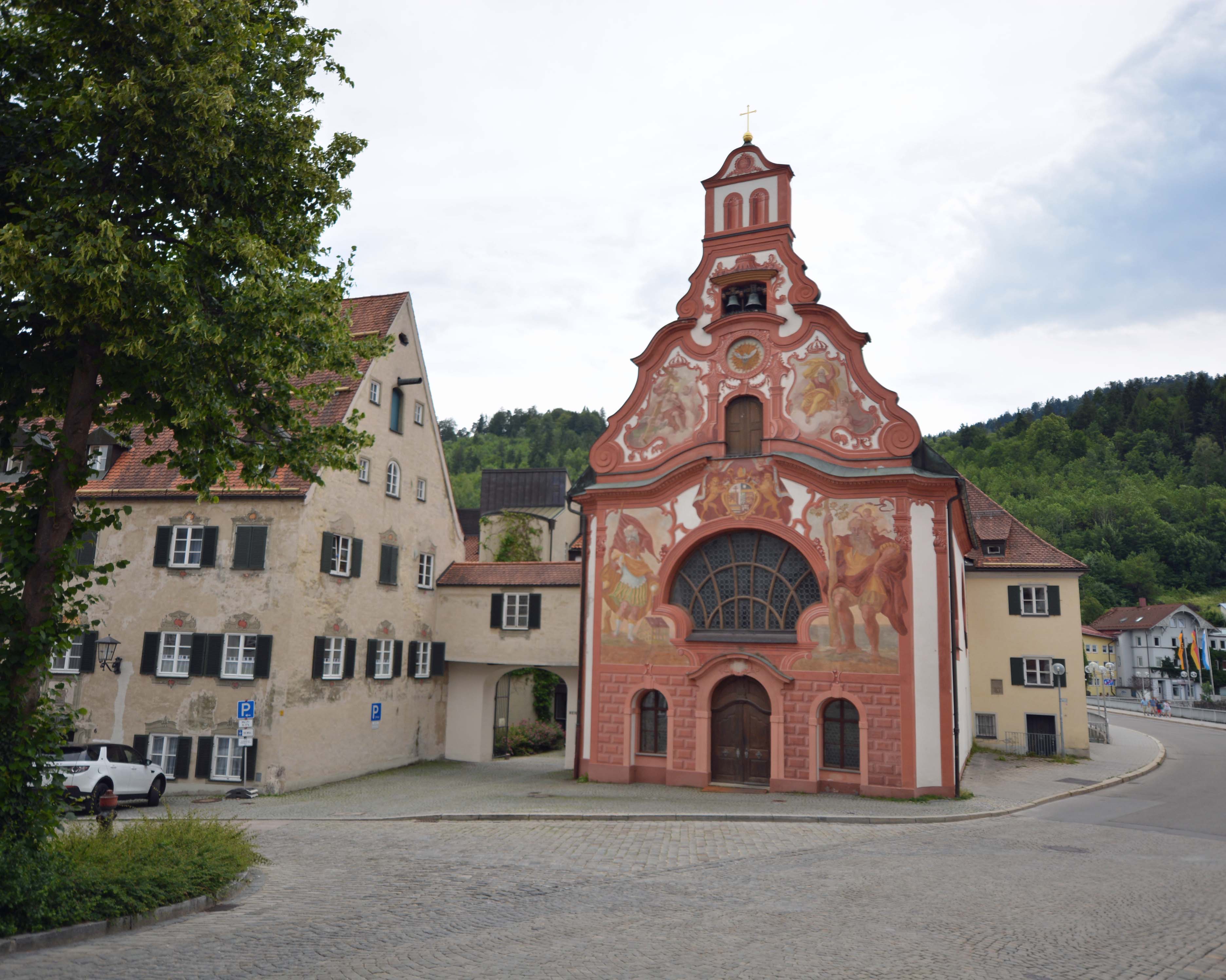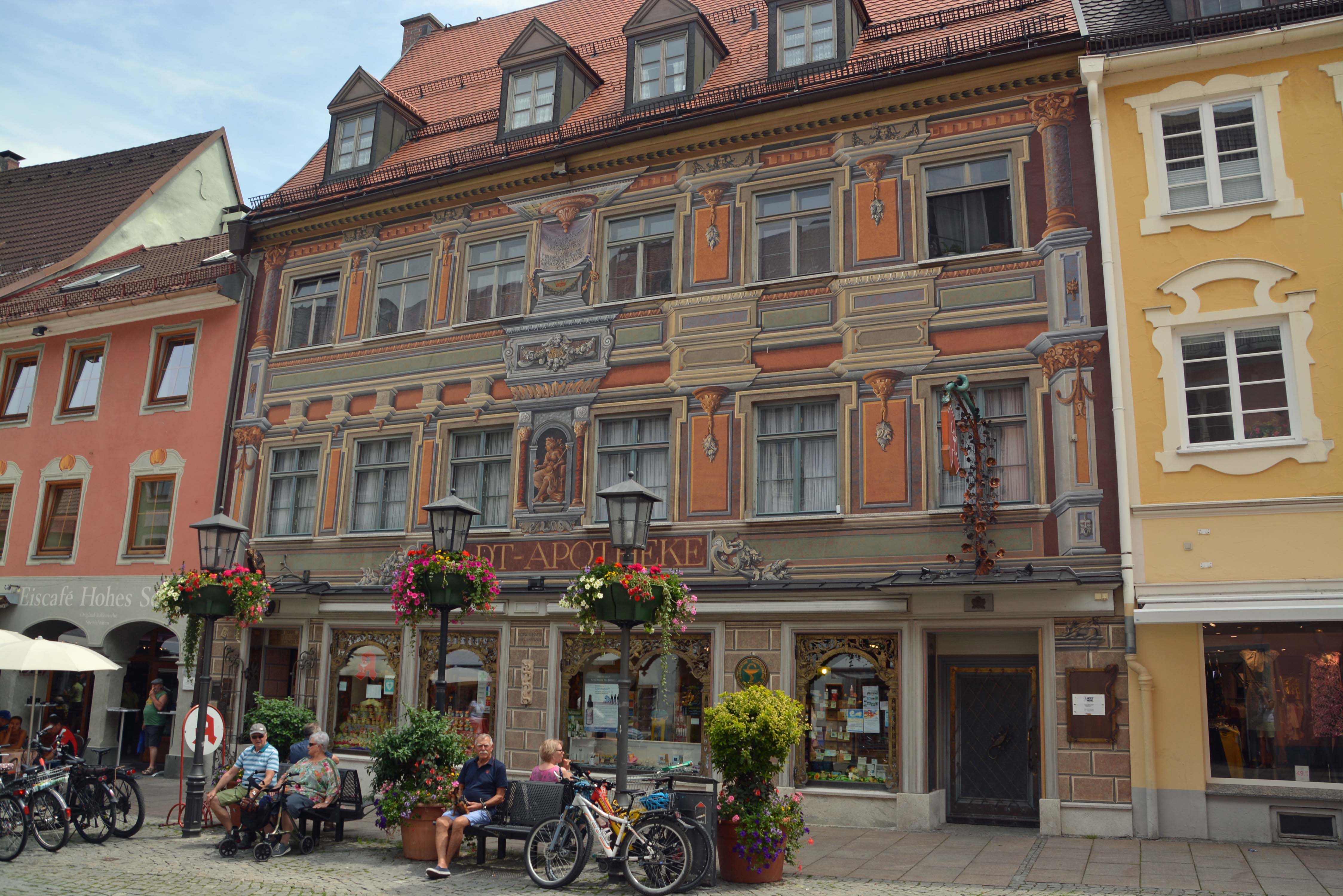 Es ist voll in der Stadt, die meisten Urlauber halten sich in den Gaststätten, Cafe´s und Eisdielen auf. Ich bin auf dem Kulturtripp und entdecke u.a. in den mittelalterlichen Gassen die Heiliggeist-Spitalkirche, den Brotmarkt mit dem Lautenmacher-Brunnen und den Stadtbrunnen, den Füssens Stadtatron, der heilige Magnus, ziert. Hier verlief früher die römische Via Claudia Augusta.