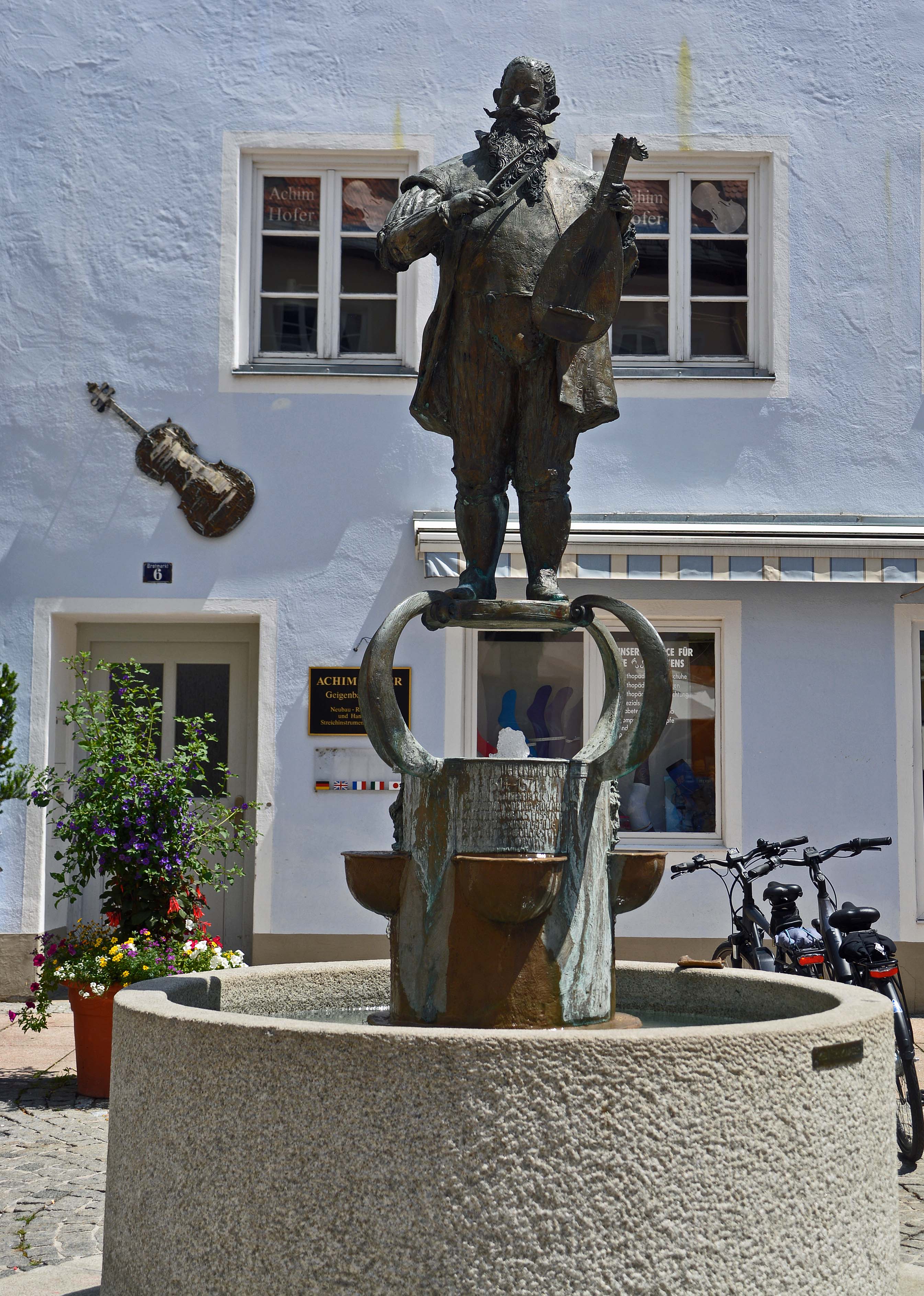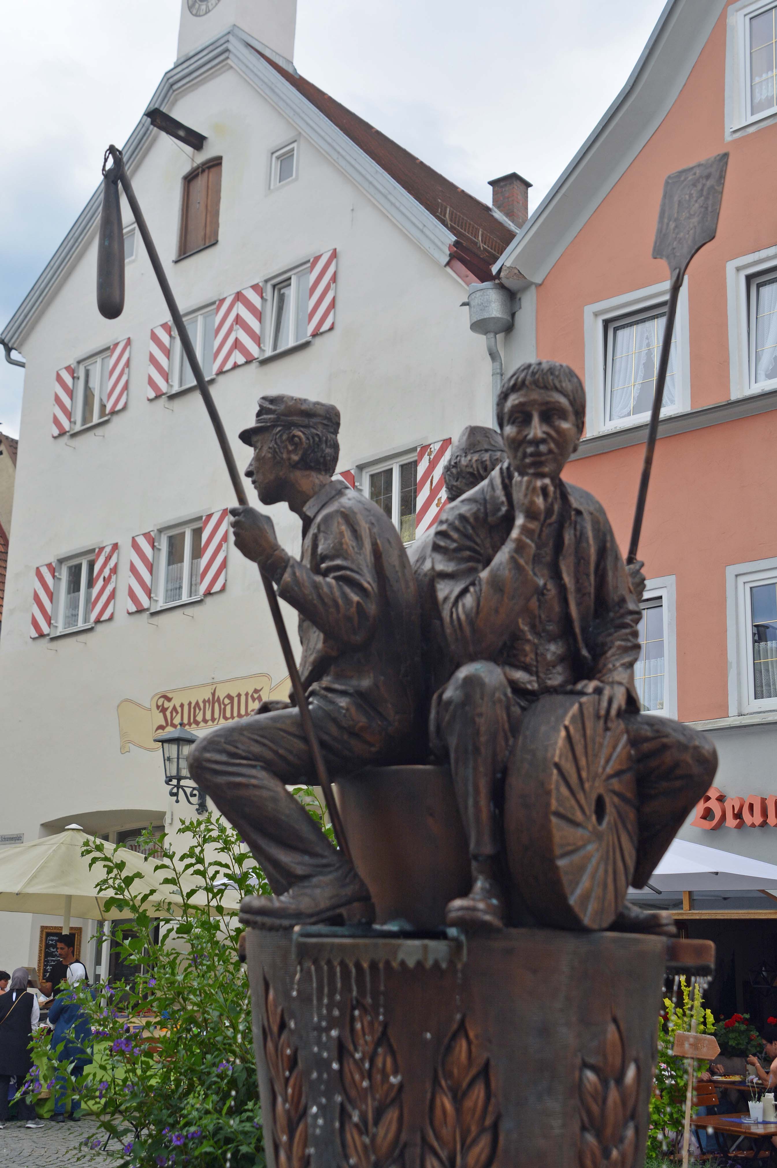 Füssen’s Geschichte reicht bis in die Römerzeit zurück. Der schmucke Kurort liegt am Lech, zählt heute ca. 1,3 Millionen Übernachtungen und ist Ausgangspunkt für die nahen Touristenschlösser Neuschwanstein und Hohenschwangau. Eines dieser Touriziele habe ich zusammen mit Peter, Lena und Klaus schon besichtigt. Ich steuere die Touri-Info am ‚Sieben-Steine-Brunnen‘ an und versorge mich mit Infomaterial.