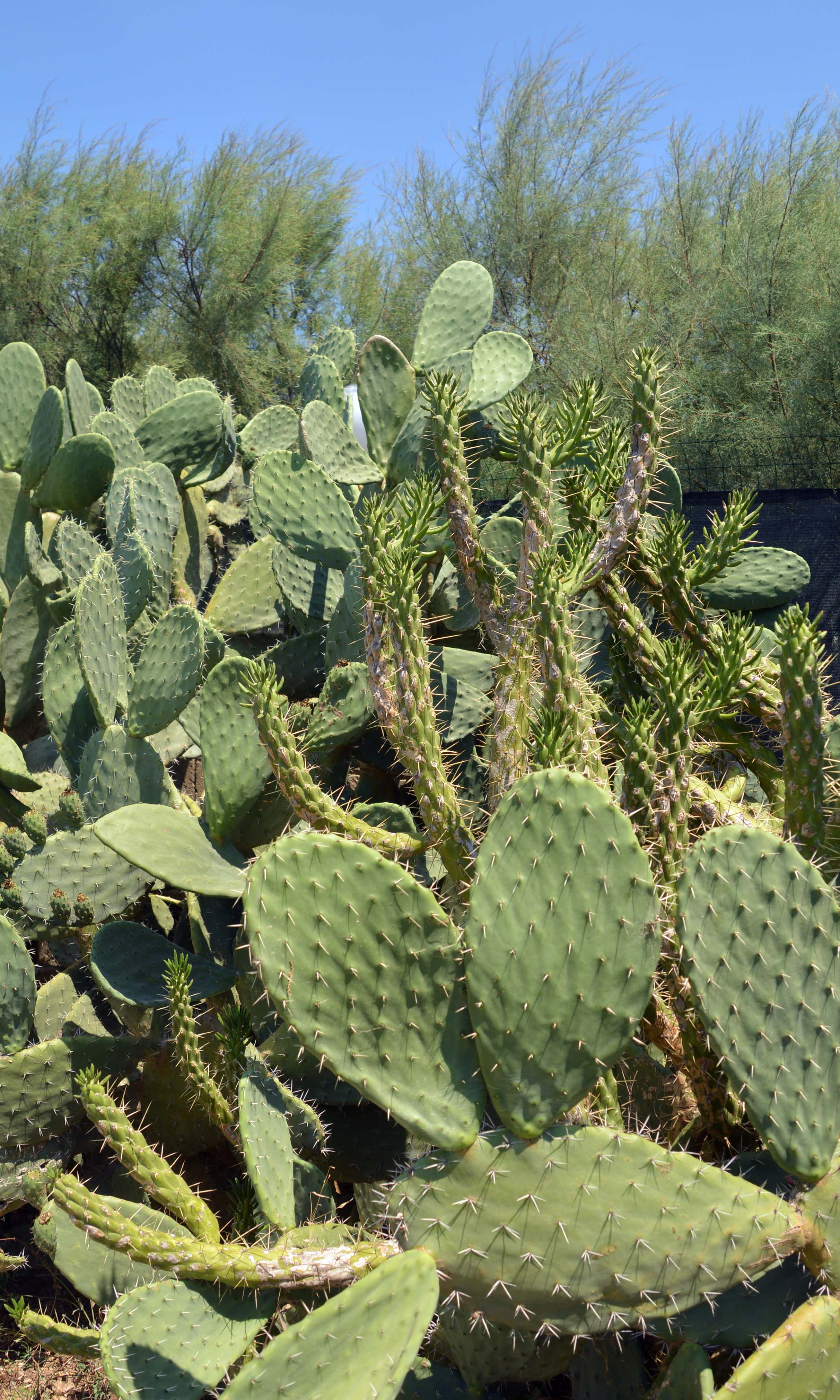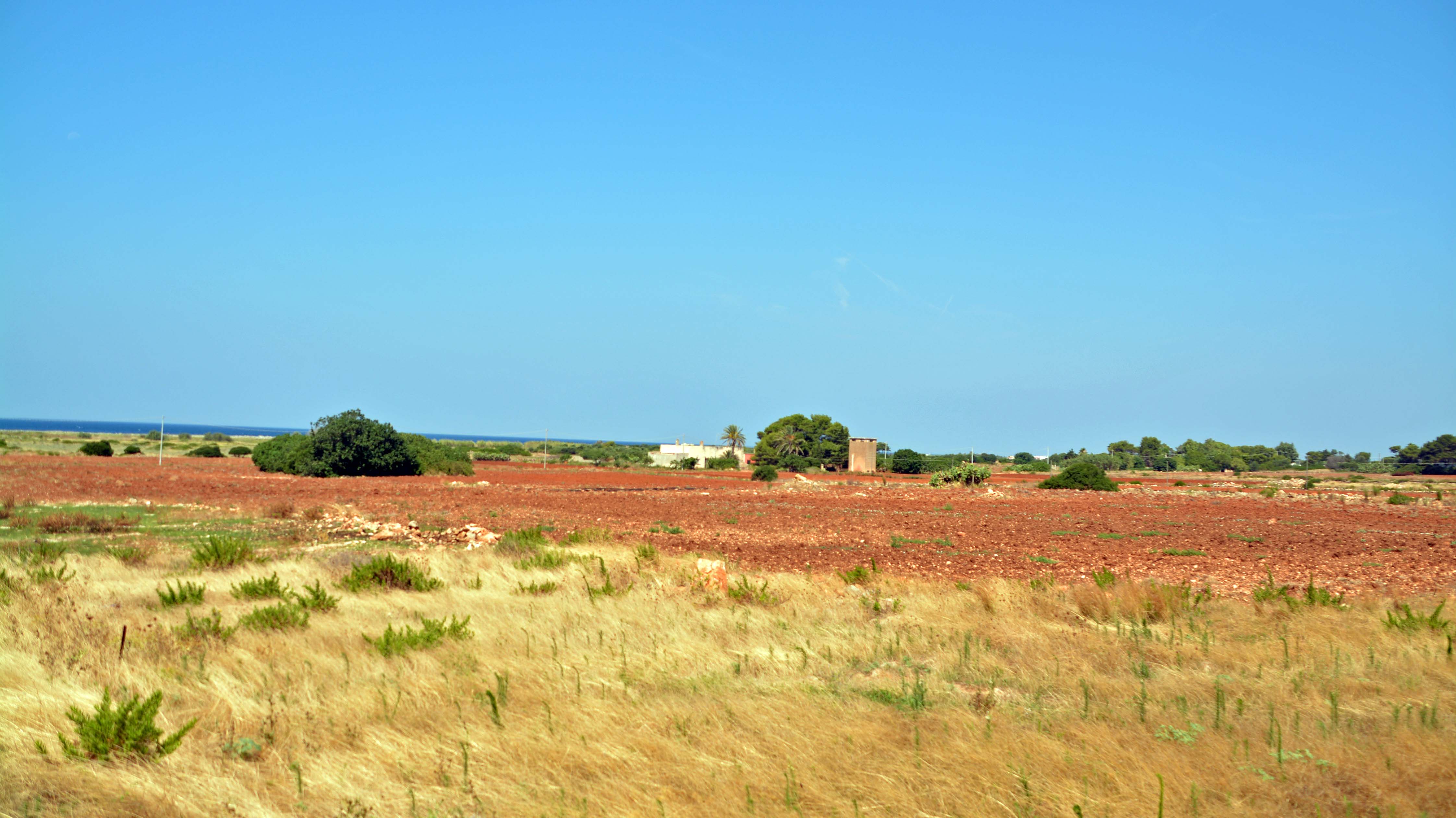 Ich nehme die Küstenstraße, die durch unberührte Natur führen soll. Allerdings glaube ich dem Autor des Reiseführers nicht mehr alles. Und so ist es dann auch. Ja, ich fahre durch ein Waldgebiet, durch Felder mit roter Erde, vertrocknete Wiesen, Palmen, Pinien und Opuntien ohne Ende und einige Olivenbäume. Aber unter unberührter Natur verstehe ich etwas anderes.