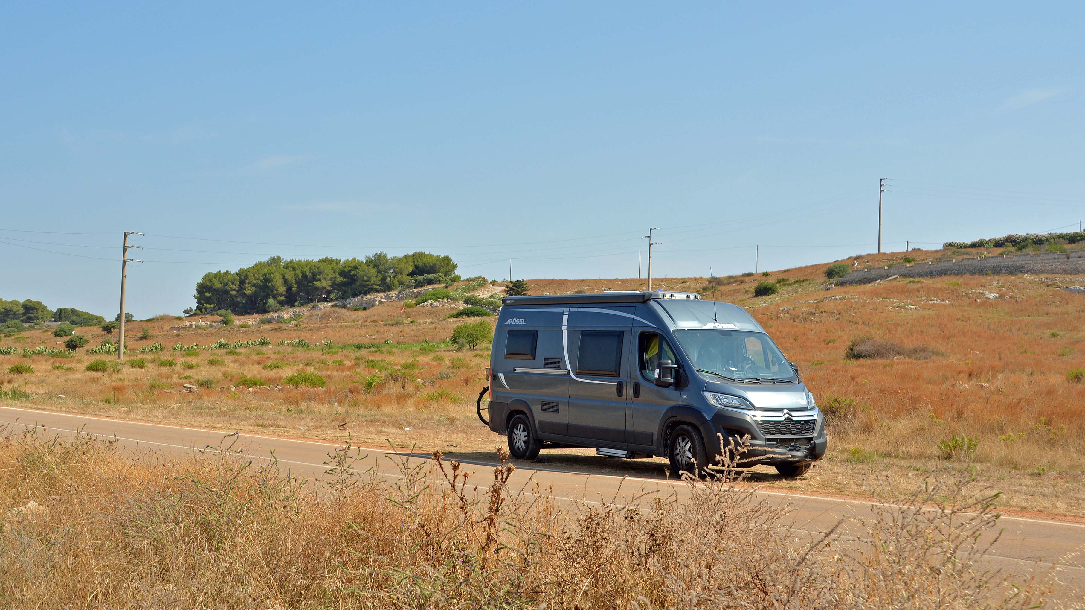 Ich lege einen Stopp in Sant’Isidoro ein und kaufe in Santa Caterina am Straßenrand Tomaten und Susinen. Wie es der Zufall will, treffe ich auf einen Verkäufer, der mir in sehr gebrochenem Deutsch erklärt, dass er vor 15 Jahren 18 Jahre in Dortmund gearbeitet hat. Ich stelle immer wieder fest, wie klein die Welt doch ist.