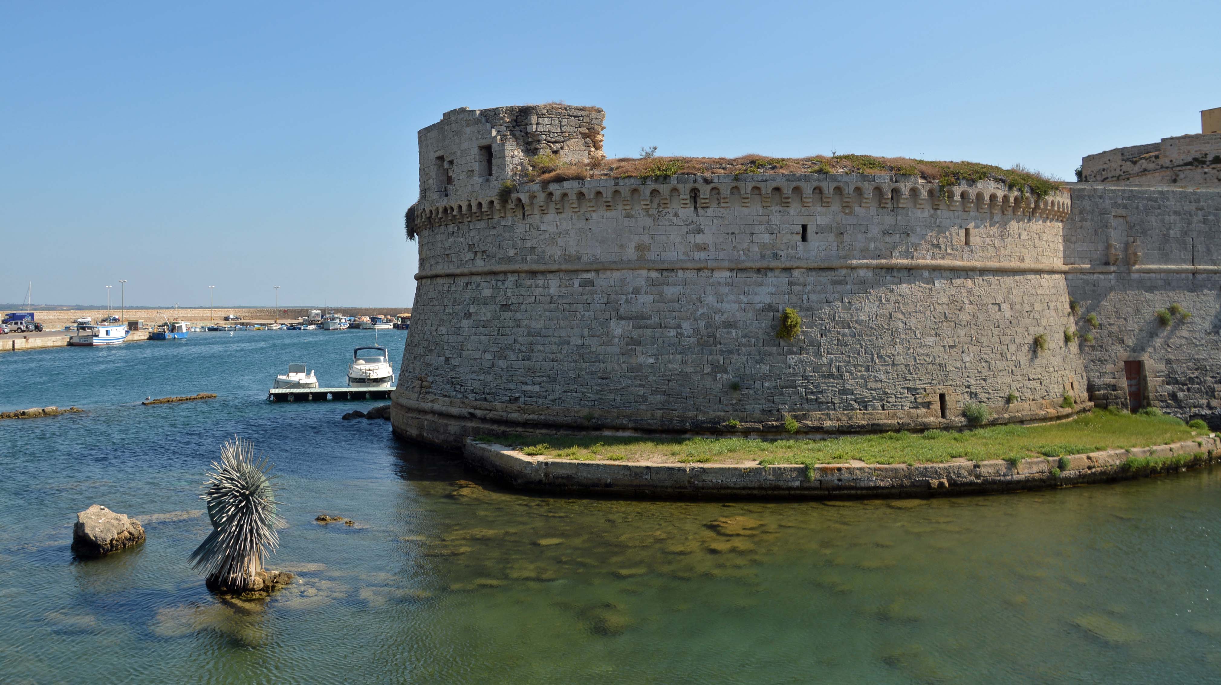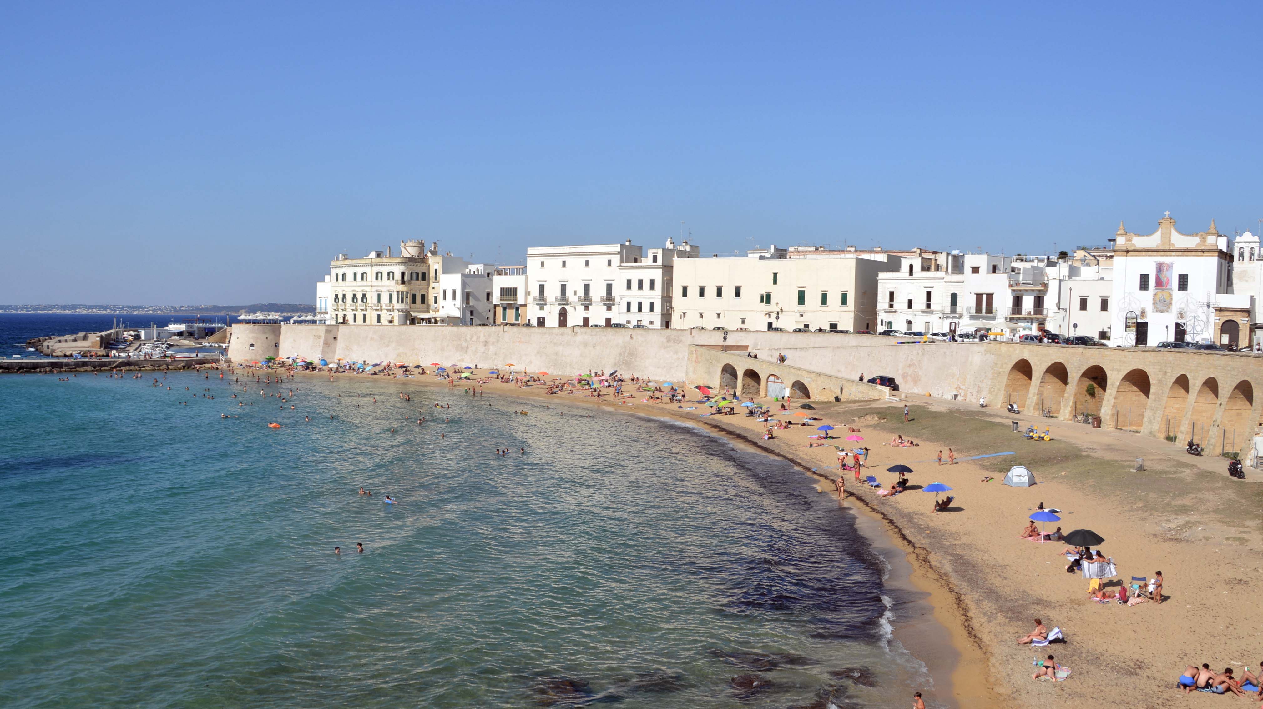 Die Küstenstadt Gallipolli – una città bella – liegt auf einer Insel und ist komplett von Festungsmauern umgeben. Das Historische Zentrum ist streng von der Neustadt getrennt. Gleich zu Beginn des Rundgangs stehe ich am Castello aus dem 13.-17-Jh. Ich entschließe mich – entgegen dem Touristrom – die Altstadt an der Stadtmauer zu umrunden. Ich genieße wunderbare Blicke auf’s Meer, staune über die zahlreichen Bars, Cafès und Restaurants. Am Hausstrand La Spiaggia della Purità ist noch Einiges los, in den kristallklaren Buchten dümpeln Schiffchen.