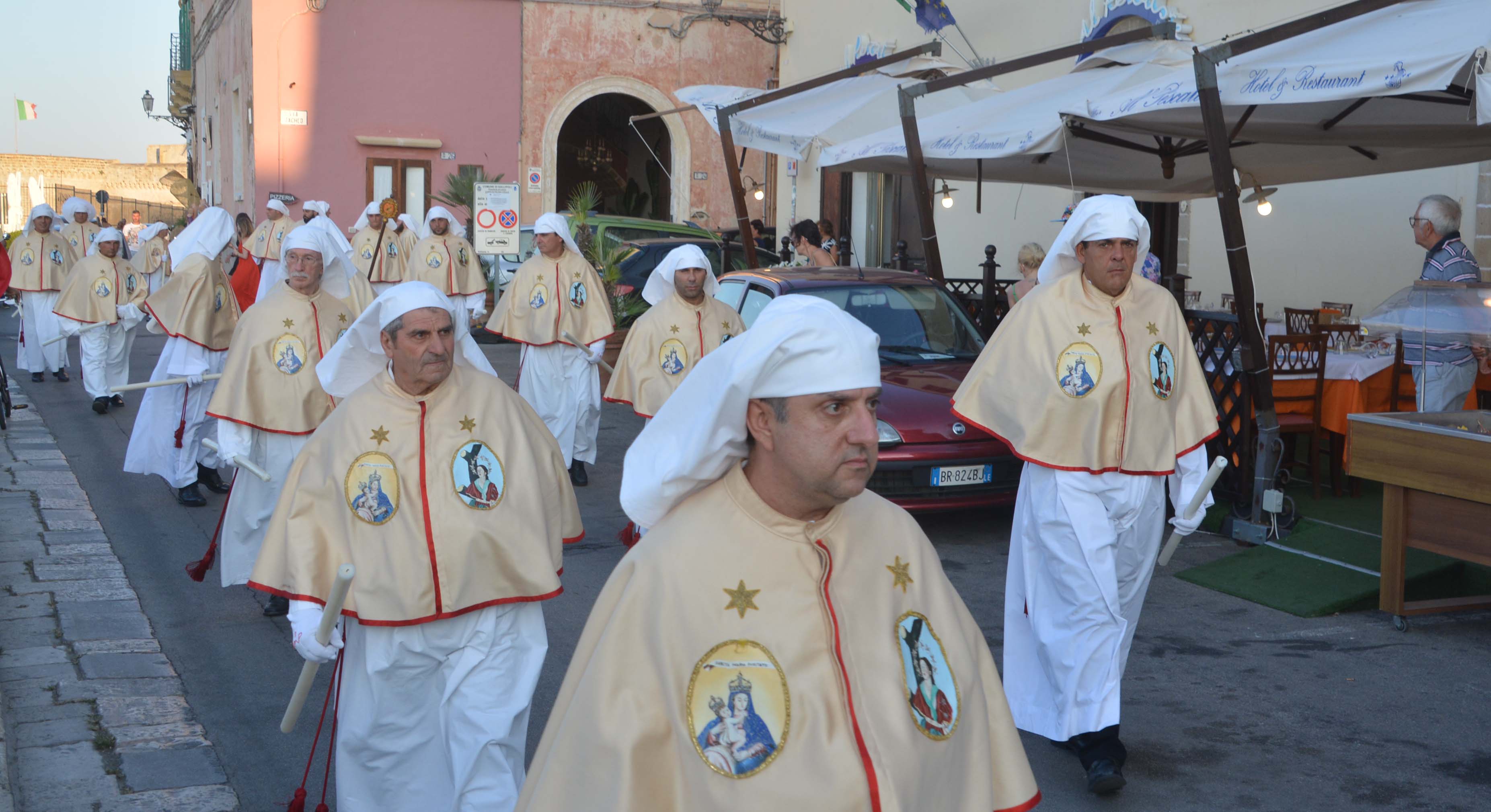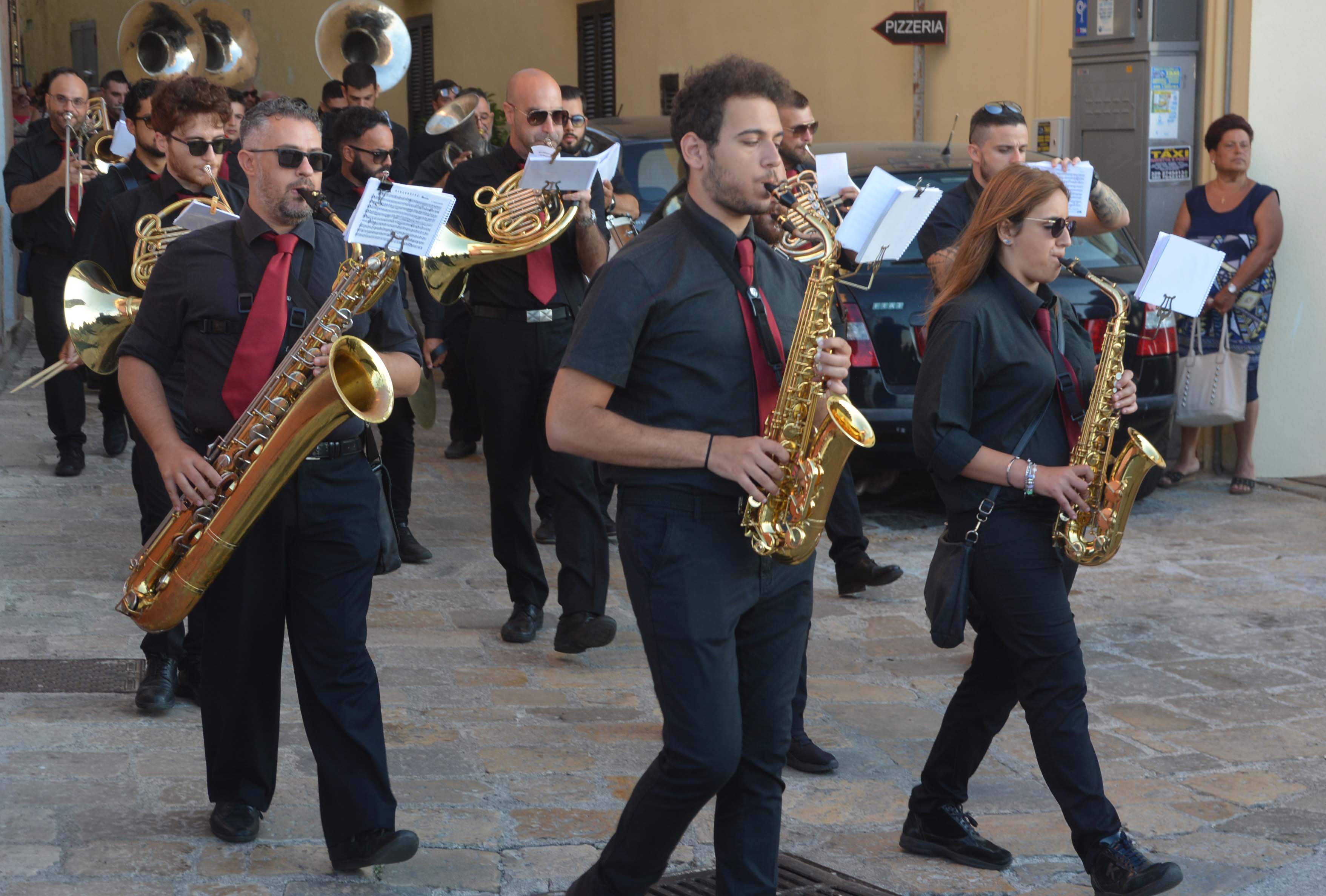Ich mache ein Päuschen in einer netten Bar, schlabbere ein kaltes Bier und esse Tintenfisch, Scampis und Krabben, sehr lecker. Dann muss ich los, sonst verpasse ich den Shuttlebus zum Campingplatz. Und jetzt ist mächtig was los am Lungomare. Die italienische passeggiata (Spaziergang) mit der ganzen Familie ist angesagt. Dann höre ich Musik und Gesang und bekomme doch tatsächlich noch einen Teil des Prozessions-Umzugs mit.