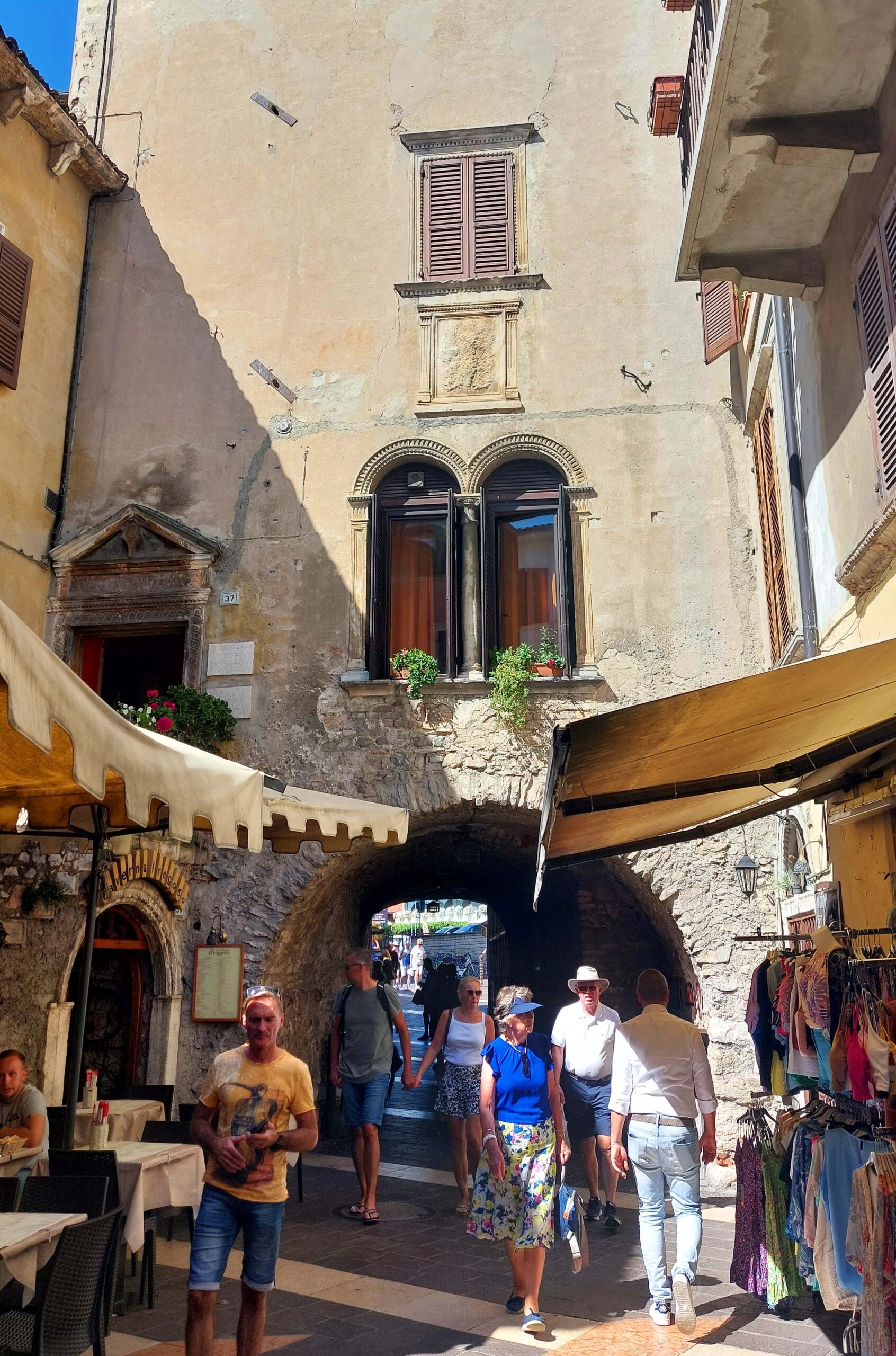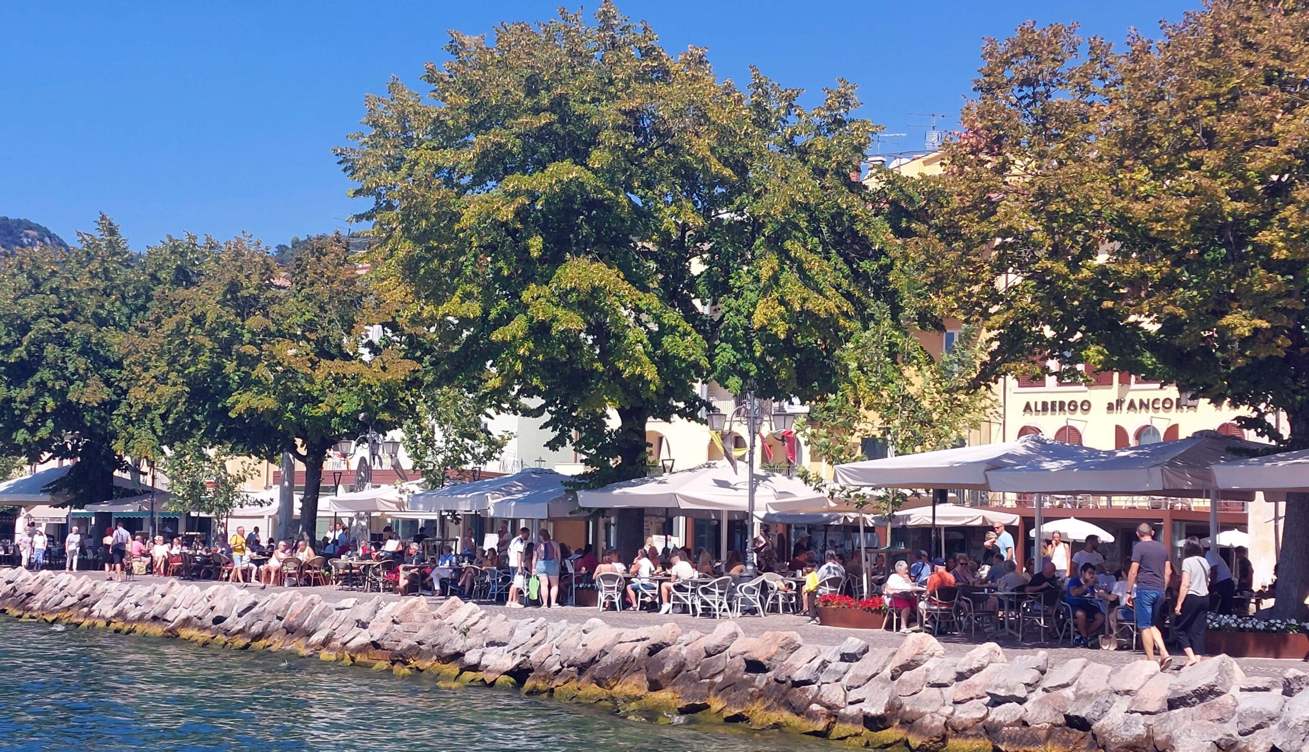 Endlich mal weniger Touris und eine angenehme Atmosphäre. Ich laufe an der Seepromenade entlang, streife durch die engen Gassen, treffe auf einige Palazzi und schaue mir den „Monte Brione“ von Weitem an. Der weiße Palazzo Carlotta mit den Rundbögen war früher ein Zollamt, und ist heute ein Restaurant 🍴 mit Aussicht. Ich trinke noch einen Aperol Spriz am See und starte mit dem Rad nach Torri del Benaco.