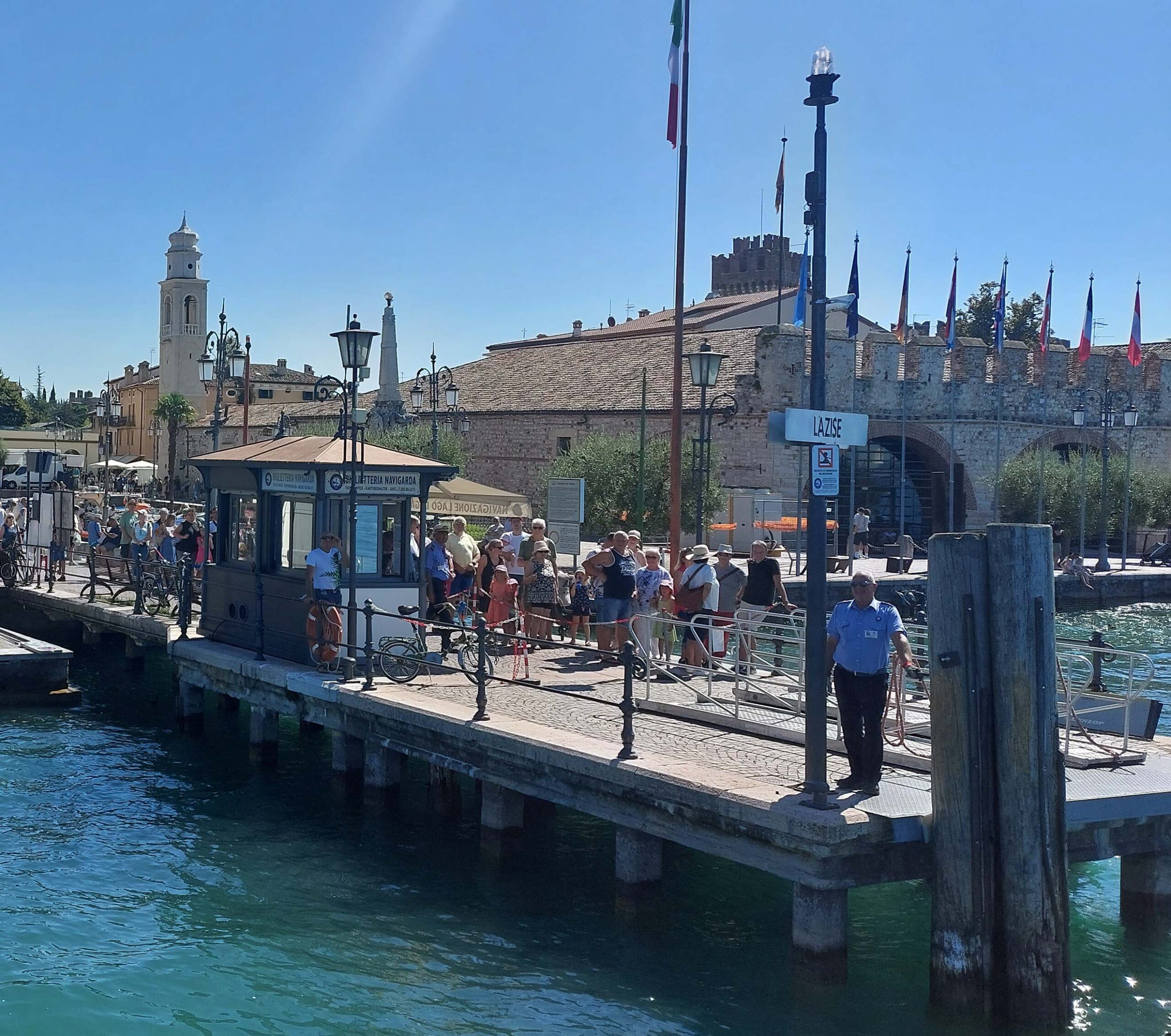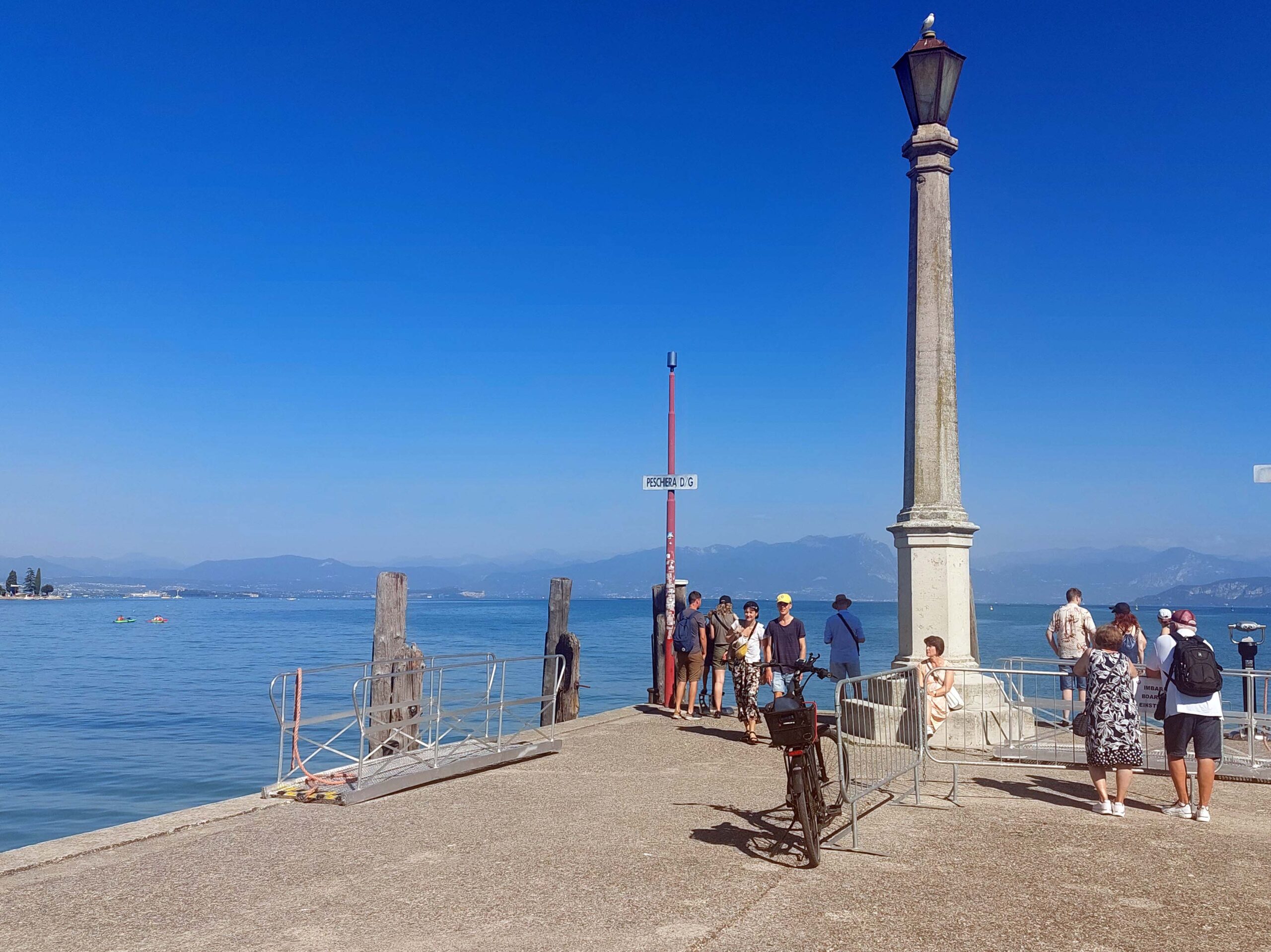 Ich checke die Fahrzeiten für das Schiff, packe mein Rad 🚴 und düse gen Anlegestelle in Peschiera. Das Schiff 🚢 ist schon da, hat aber leider einen Motorschaden. Das bedeutet, mindestens eine halbe Stunde Wartezeit. Na toll! 🙈