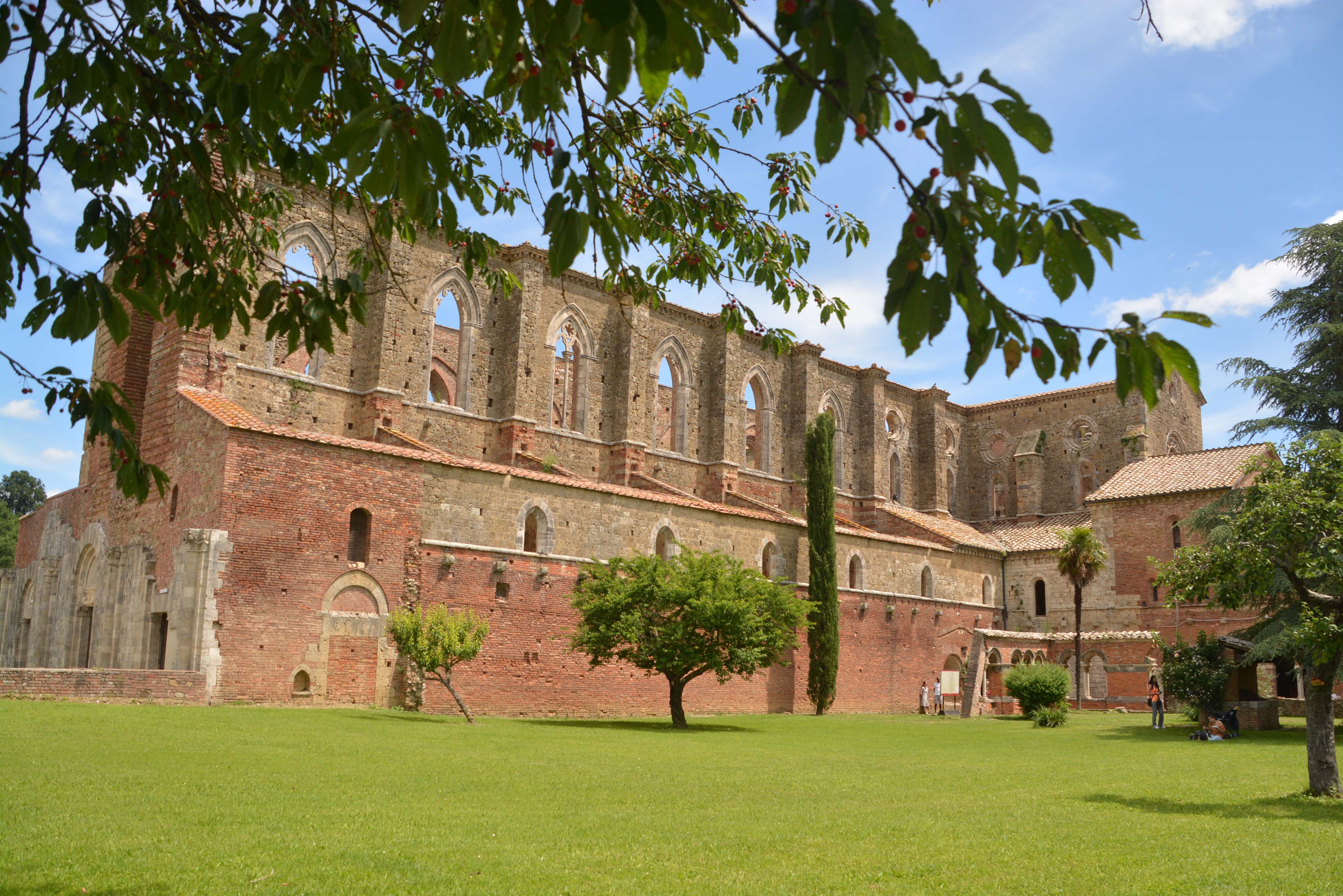 Abbazia San Galgano wurde im 12. JH von Zisterziensern erbaut. 1783 stürzte ihr Glockenturm aufgrund eines Blitzeinschlages auf das Dach des Kirchenschiffes. Heute ist der toskanische Himmel das Dach des grasbewachsenen Innenraums. Die Abtei ist gigantisch und trotz zahlreicher Menschen ruhig und erhaben.