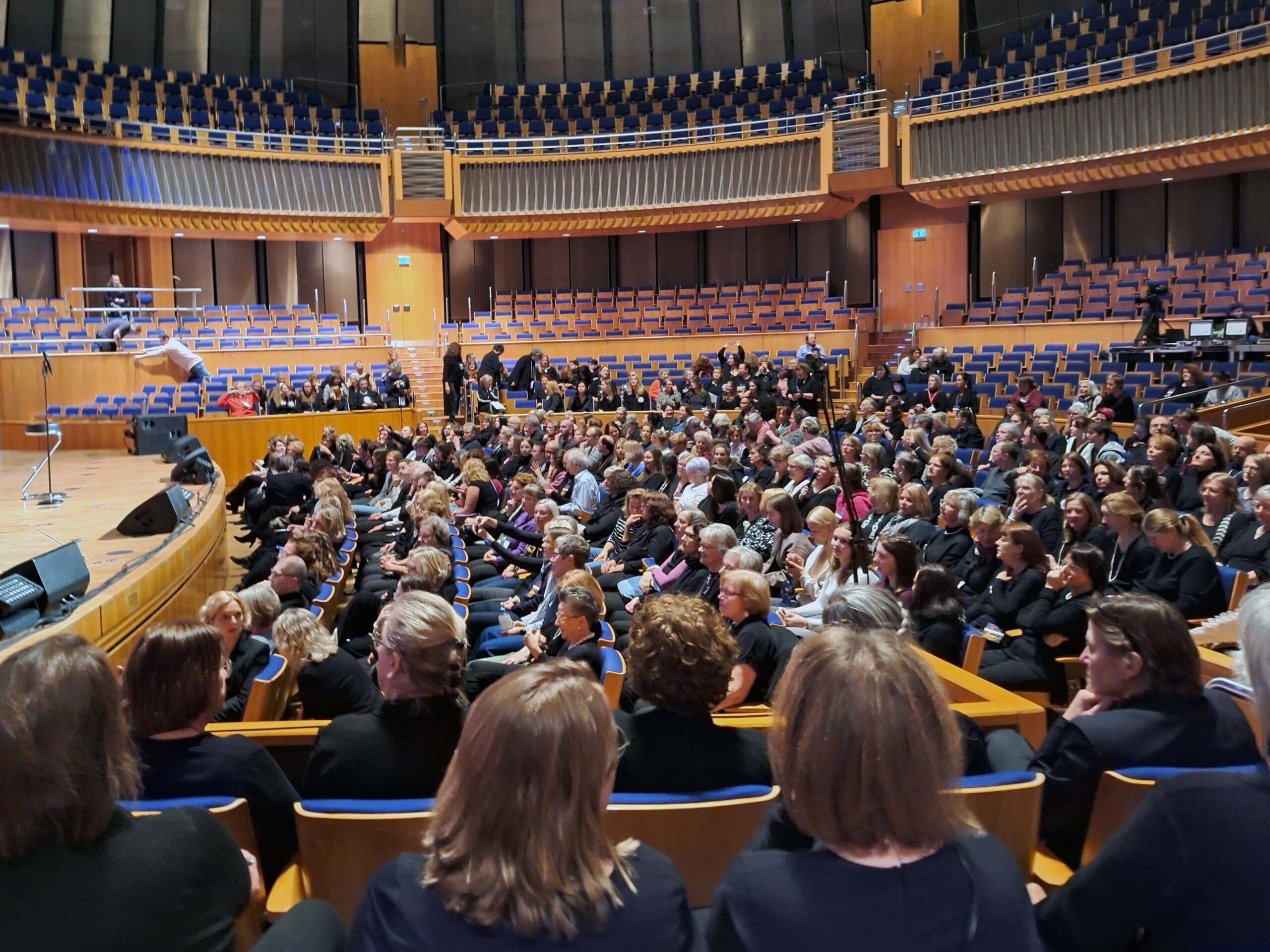 Dirk fĂ€hrt mich am Samstag-Nachmittag zur Ubahn. Sie fĂ€hrt unmittelbar zur Haltestelle „Tonhalle“. Wir haben mehrere Stunden Soundcheck đïžđ€đ¶đŒ mit den ProfisĂ€ngern und der Band sowie Stellprobe fĂŒr den Chor auf der BĂŒhne. Das Konzert ist sehr gut gelaufen und wir hatten ein mitreiĂendes Publikum.