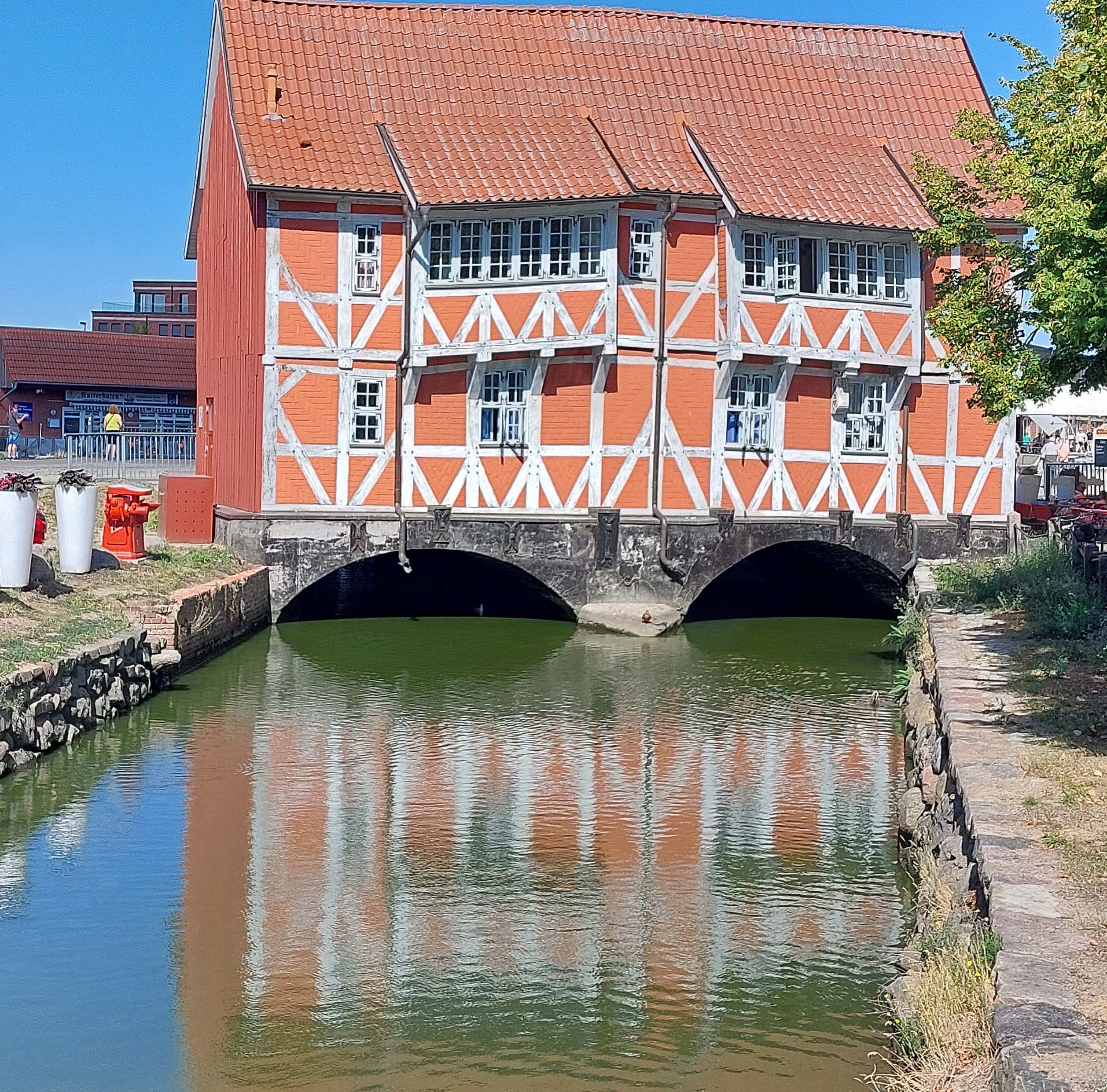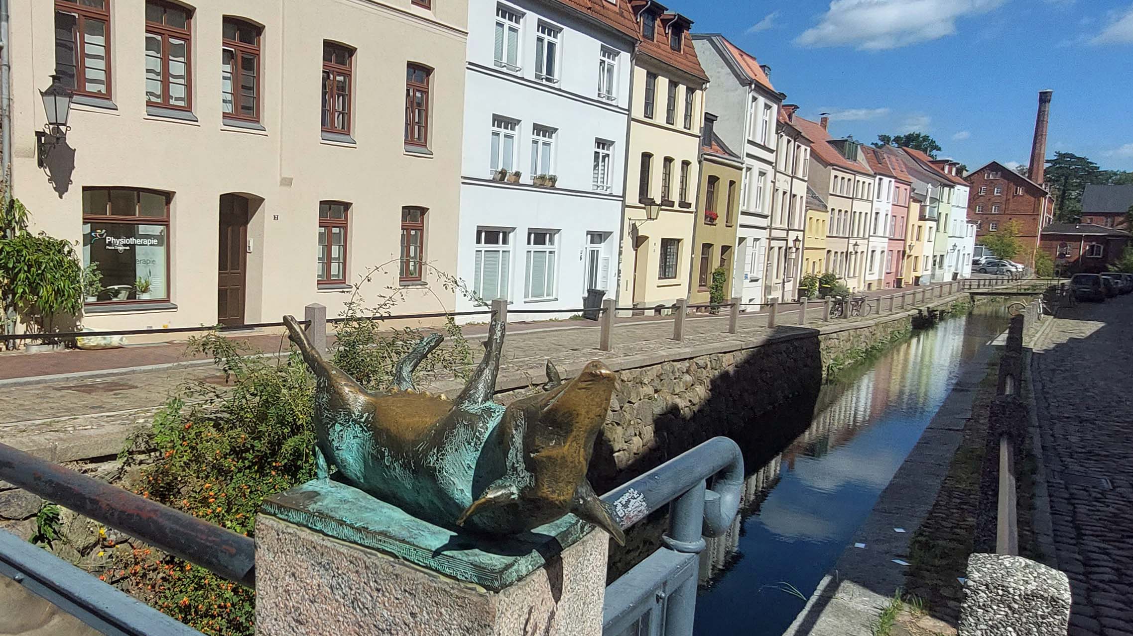 Weiter geht es entlang der „Grube“, einem teils schnurgeraden Wasserweg, der durch die Innenstadt Wismars fließt. Hier treffe ich auf die Schweinsbrücke und das Schabbellhaus. Lustig diese Namen!