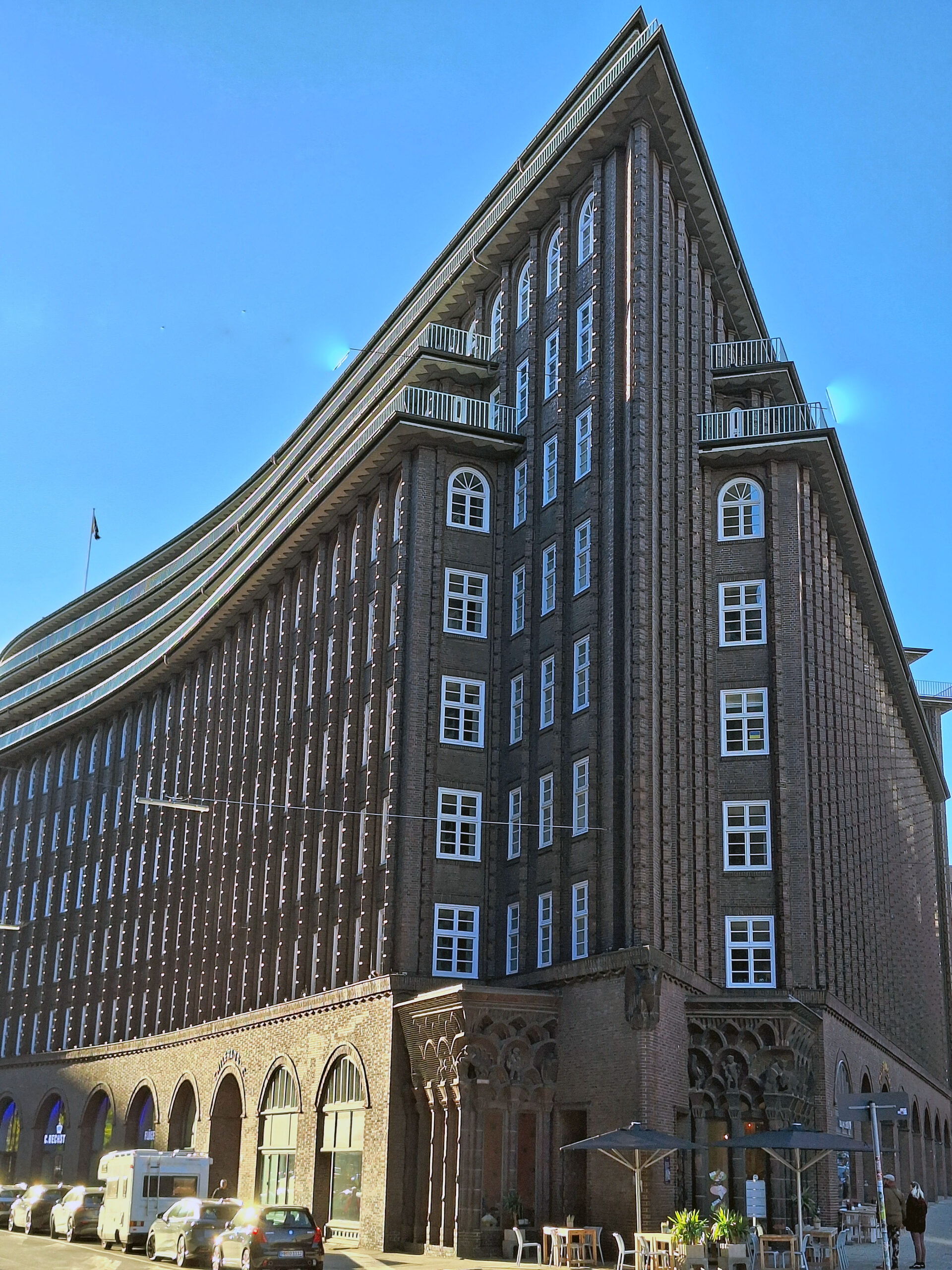 Das Viertel liegt südlich der Mönckebergstraße. Hier stehen bis zu zehngeschossige Kontorhäuser. Aber was ist eigentlich ein Kontorhaus?? Ganz einfach: ein spezieller Gebäudetyp mit Arbeitsräumen für Kaufleute. Ursprünglich gab es 150 dieser prunkvollen Businesstempel, die zwischen den beiden Weltkriegen 💣entstanden sind. Seit zehn Jahren sind vier der im Backsteinexpressionismus gebauten Kolosse Weltkulturerbe. Das wohl berühmteste ist das vor ca. 100 Jahren errichtete Chilehaus, was an einen Schiffsbug erinnert.