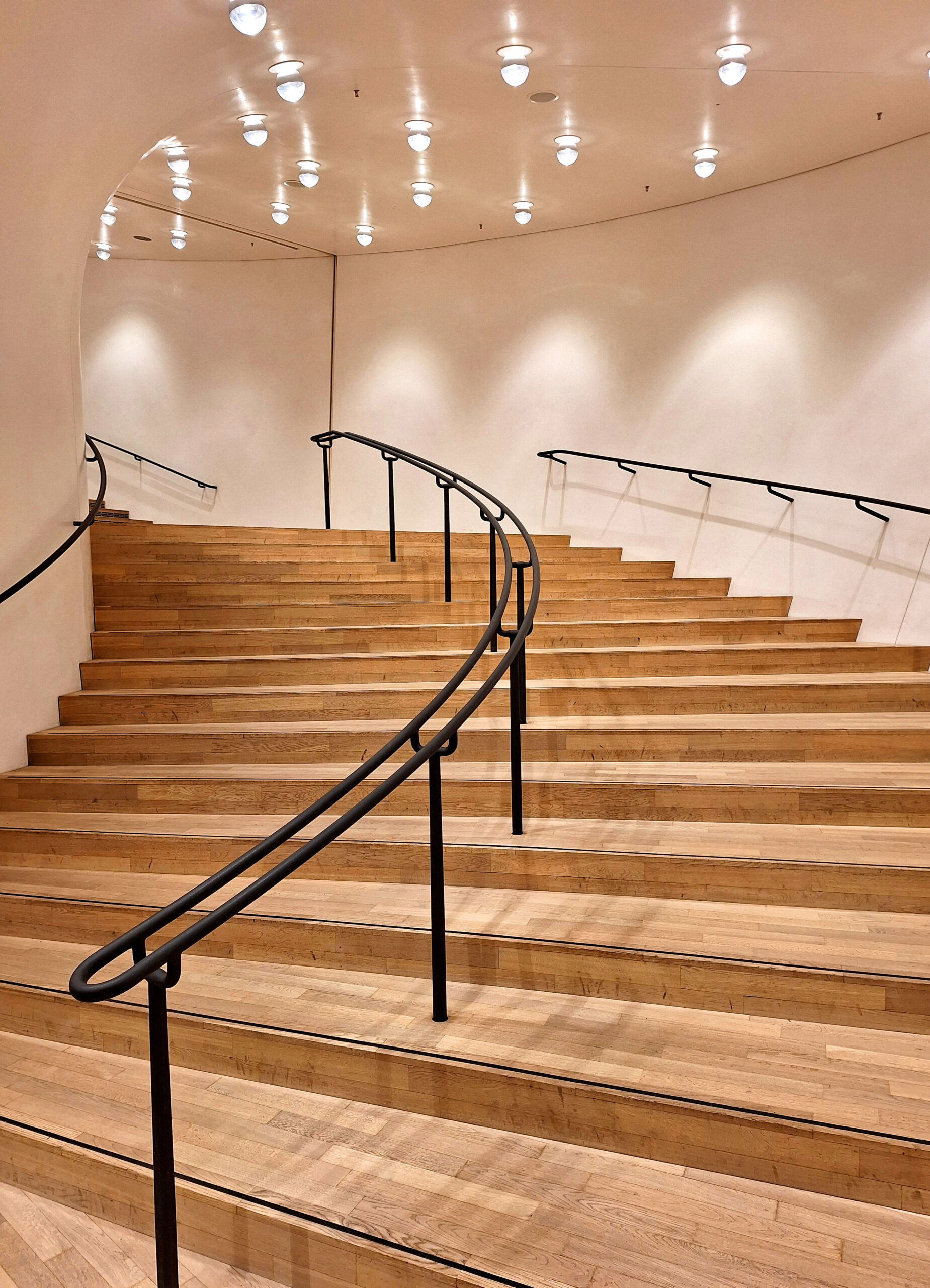 Jetzt ist es Zeit für das letzte Highlight, einem Konzert im Großen Saal 🎼🎻🎶🎹 der Elbphilharmonie. Auf die hochmoderne Akustik und das Konzertfeeling bin ich sehr gespannt. Jeder Besucher sitzt höchstens 30 Meter vom Dirigenten entfernt und hat von überall einen ungehinderten Blick auf die Bühne. Ich wandle noch eine Weile über die Plaza und genieße Hamburgs Hafen bei Dunkelheit.
