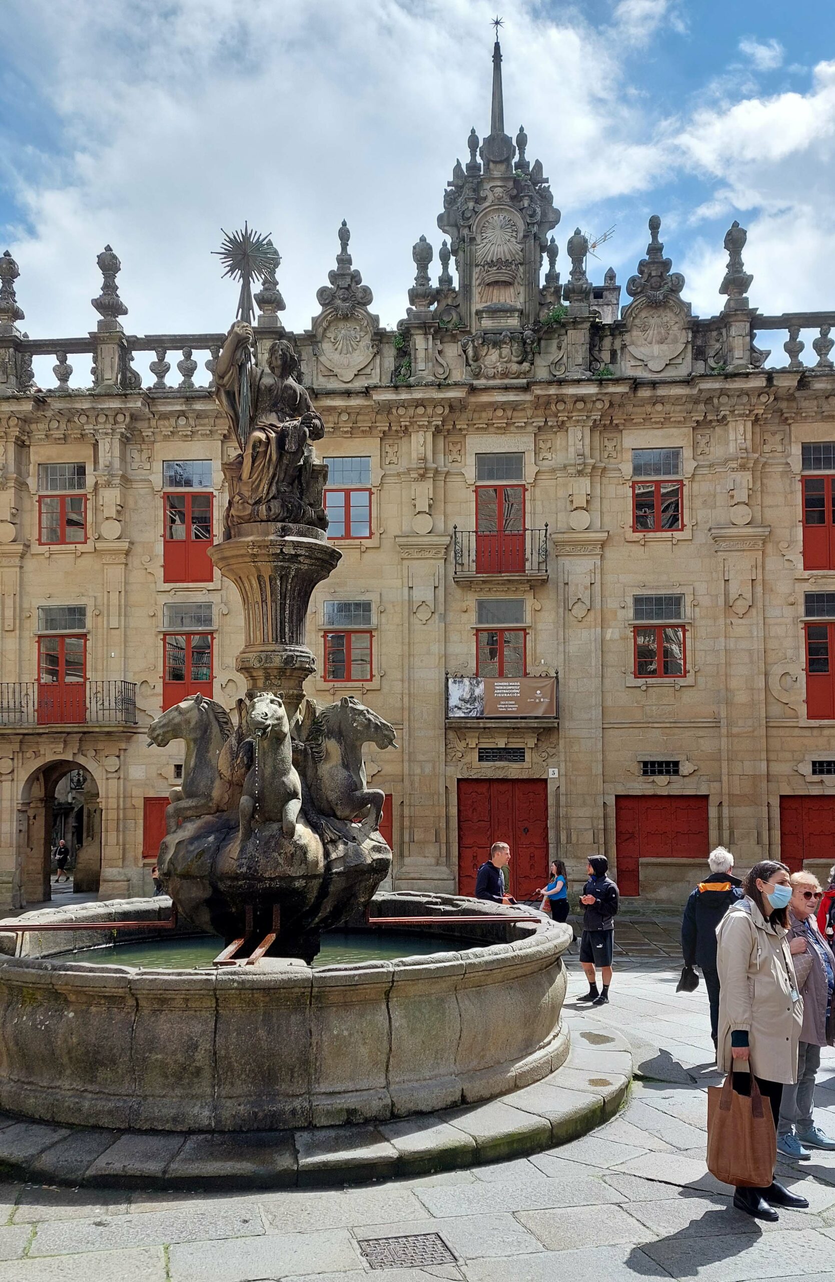 Der Bus braucht knappe 20 Minuten und einen kurzen Fußweg und ich stehe mitten auf dem „Plaza del Obradoiro“, DEM Ziel eines jeden Pilgers. Die Kathedrale ist eines der beteutendsten Kirchenhäuser der Welt und der Beginn oder das Ende des Jakobsweges Außerdem ist sie die Grabkirche des Apostels Jacobus.