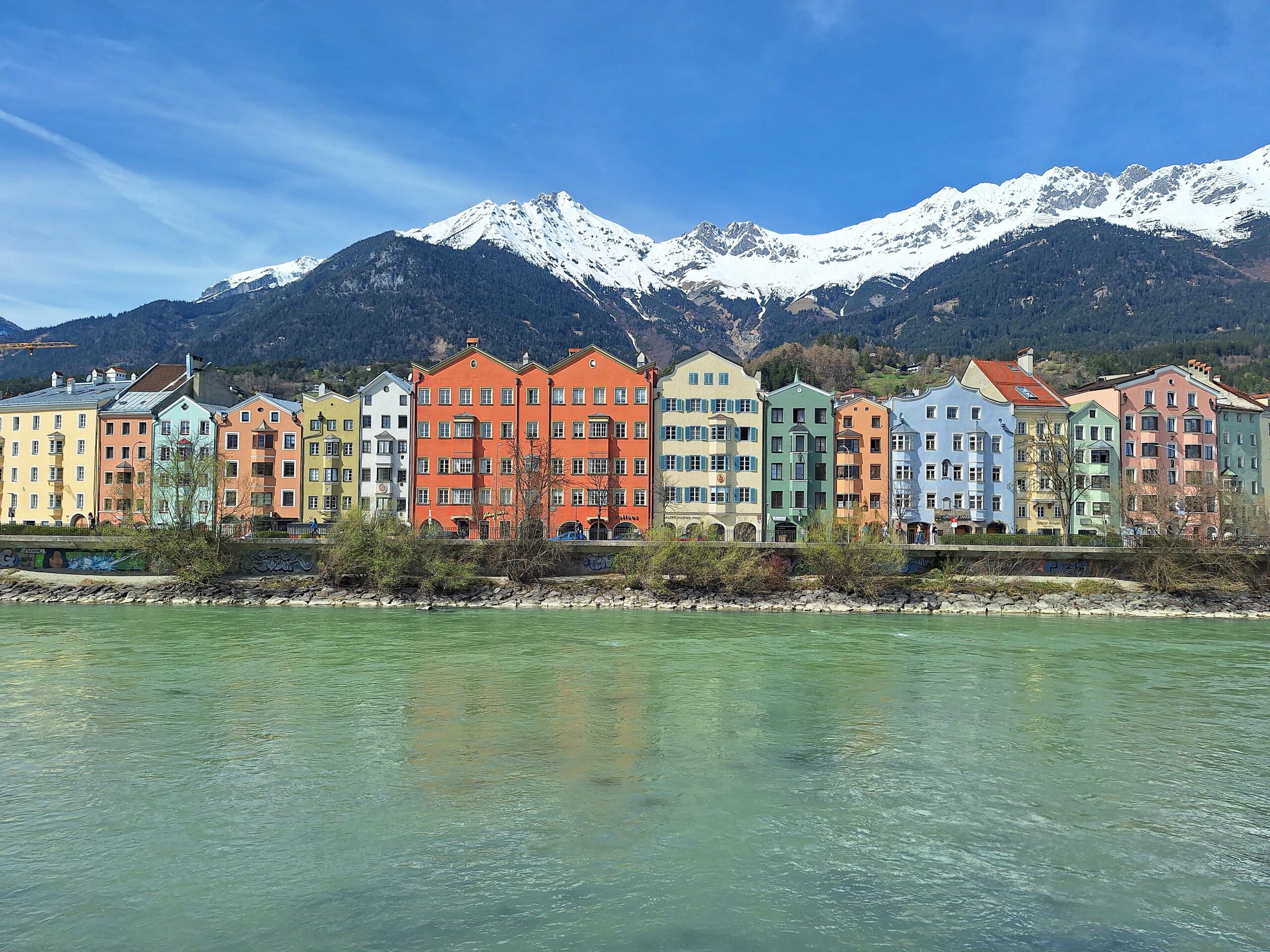 Ich erreiche die Innbrücke. Sie verbindet die Altstadt mit dem ältesten Stadtteil Mariahilf auf der anderen Flussseite und ist Namensgeber für die Tiroler Haupstadt. Dort befindet sich eines der beliebtesten Fotomotive eines jeden Touris: die farbige Häuserzeile! Wunderschön!