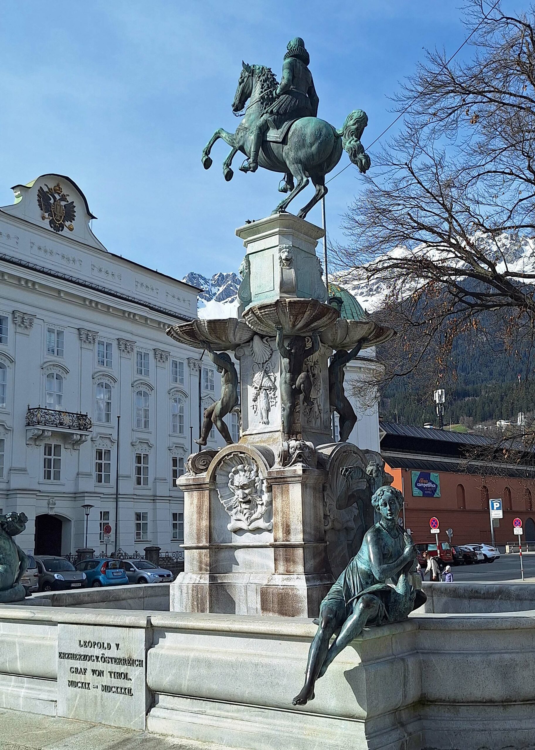 Mein weiterer Weg führt mich jetzt zur Triumphpforte und dem Landhausplatz. Die Triumphpforte wurde von Kaiserin Maria-Theresia zu ehren der Hochzeit ihres Sohnes Erzherzog Leopold erbaut. Der Landhausplatz steht für das modernere Innsbruck. Hier befindet sich das Befreiungsdenkmal für die Gegner des Nationalsozialismus. Irgendwie kommt plötzlich auch ein Kratzen im Hals auf. Ganz klar Heuschnupfen, interpretiere ich die Symptome und schlendere weiter in Richtung Kaiserliche Hofburg. Hier spüre ich Schlappheit und Kopfschmerzen.