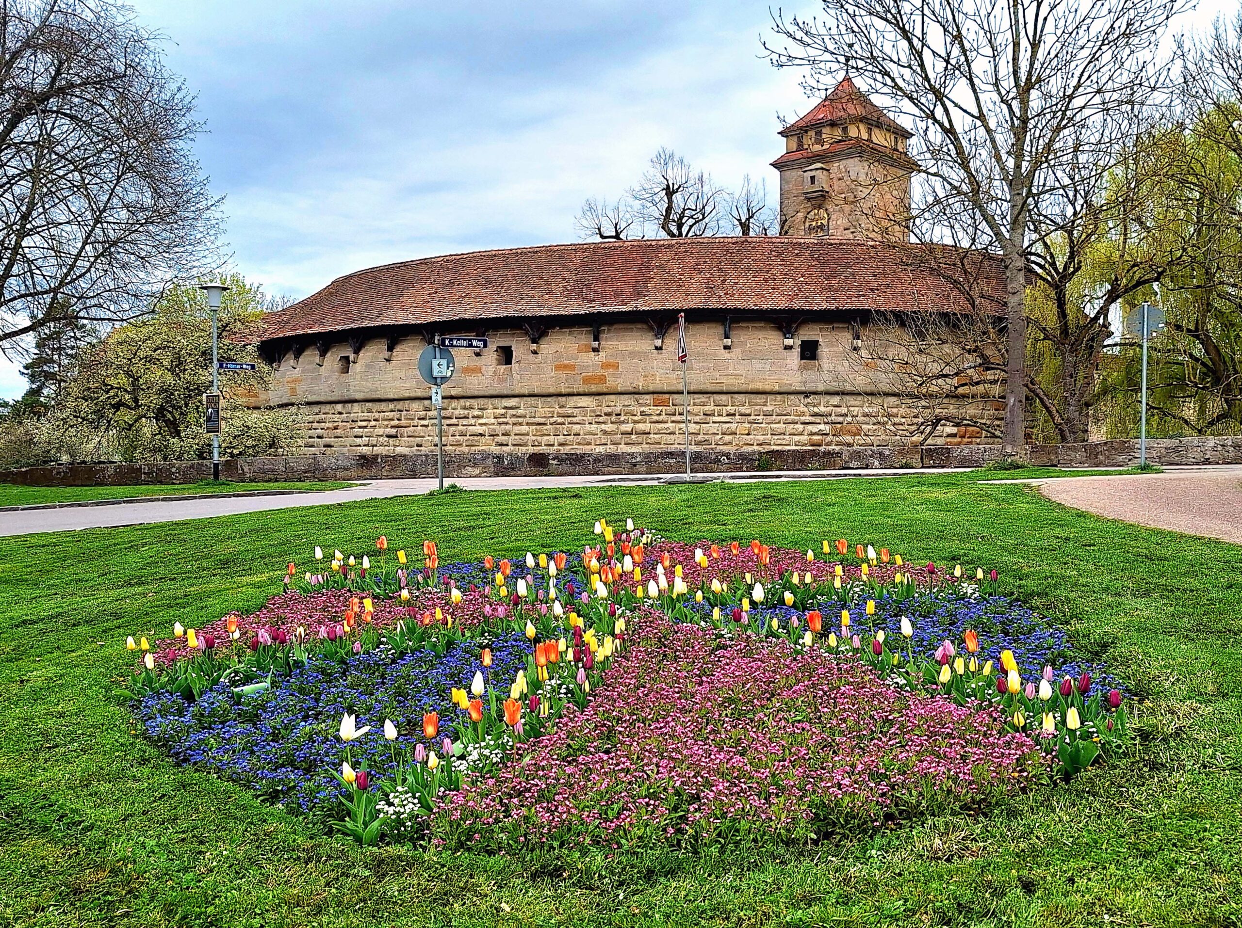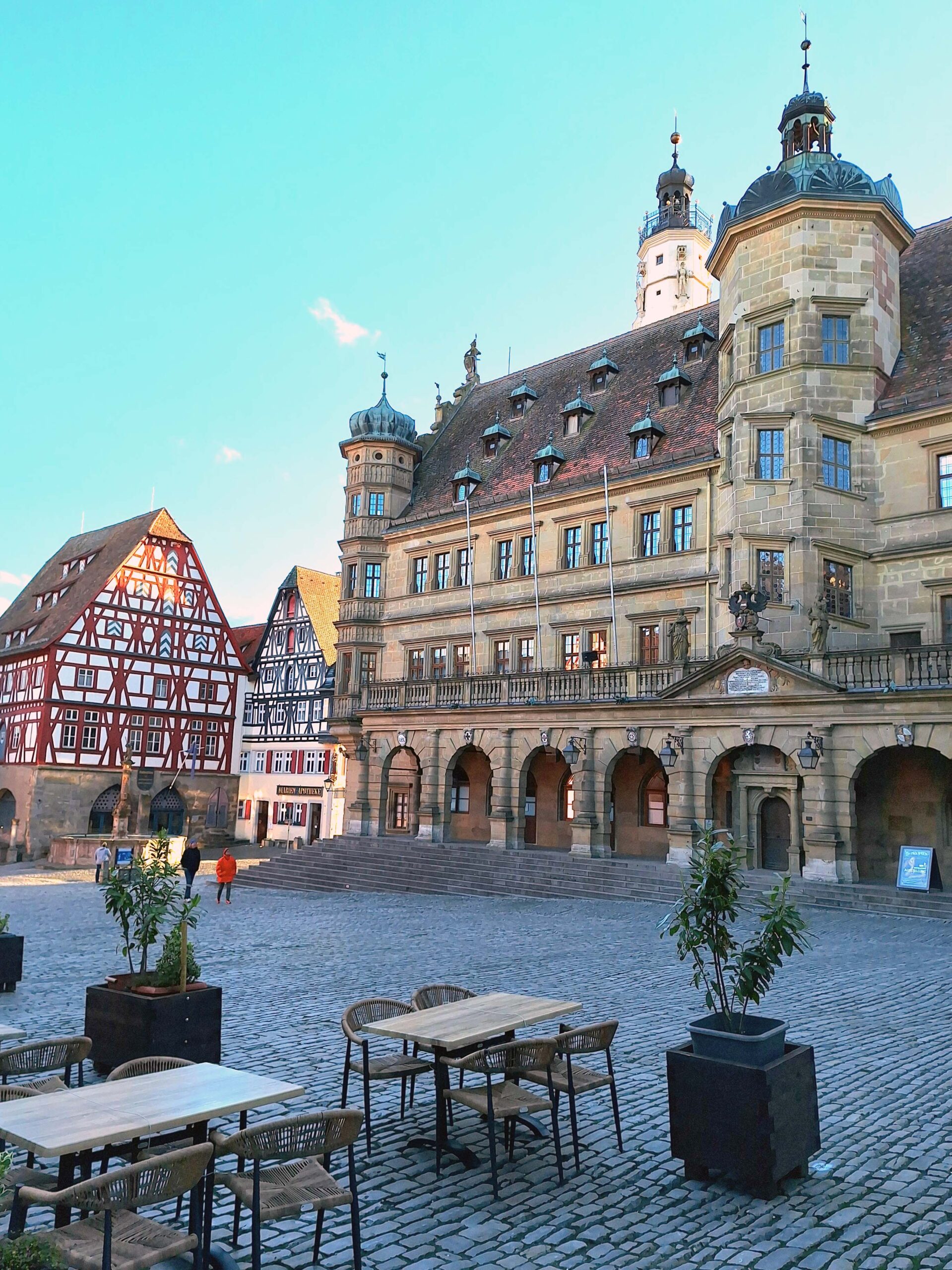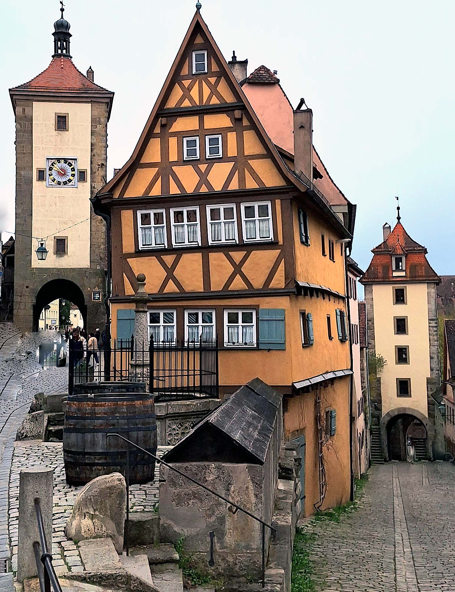 Es ist bedeckt, regnet aber nicht. ☁️ Es geht nochmal kurz ins mittelalterliche Rothenburg. Ich bin eine von 2 Mio. Touristen, die das Städtchen jährlich überrennen. 🙈